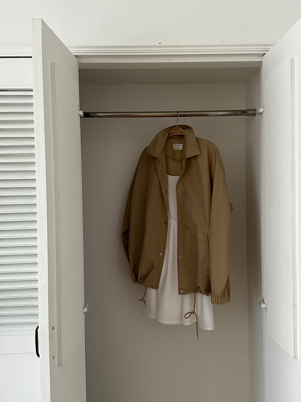 밑단 뒷면 밴딩과 앞면 스트링으로 다양한 핏을 연출할 수 있는 오버핏 윈드브레이커 점퍼에요!