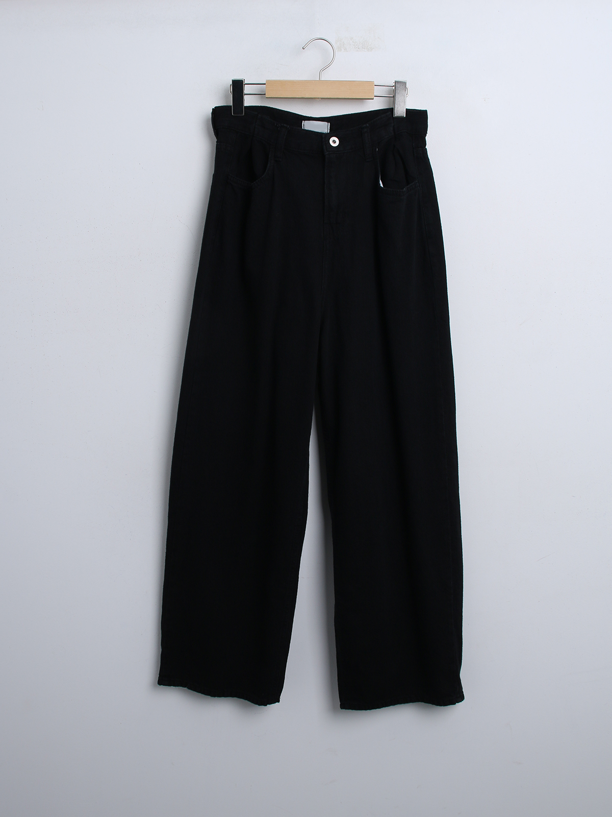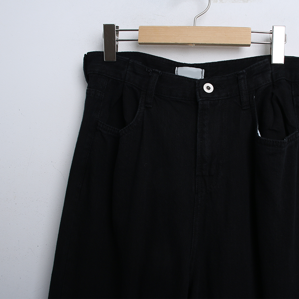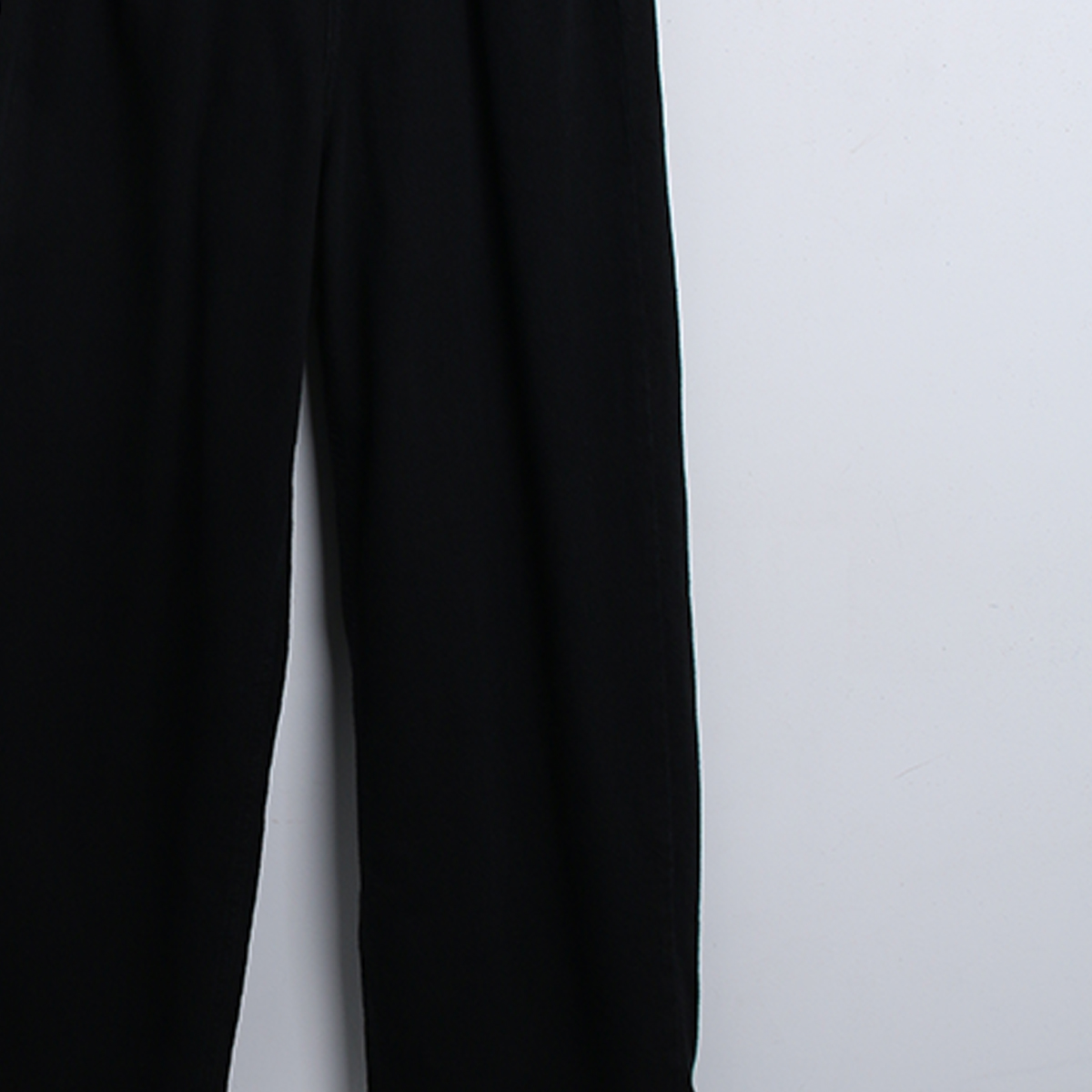 깔끔한 블랙 컬러에 밋밋하지 않게 핀턱 디자인으로 포인트를 더한 와이드핏 코튼 팬츠