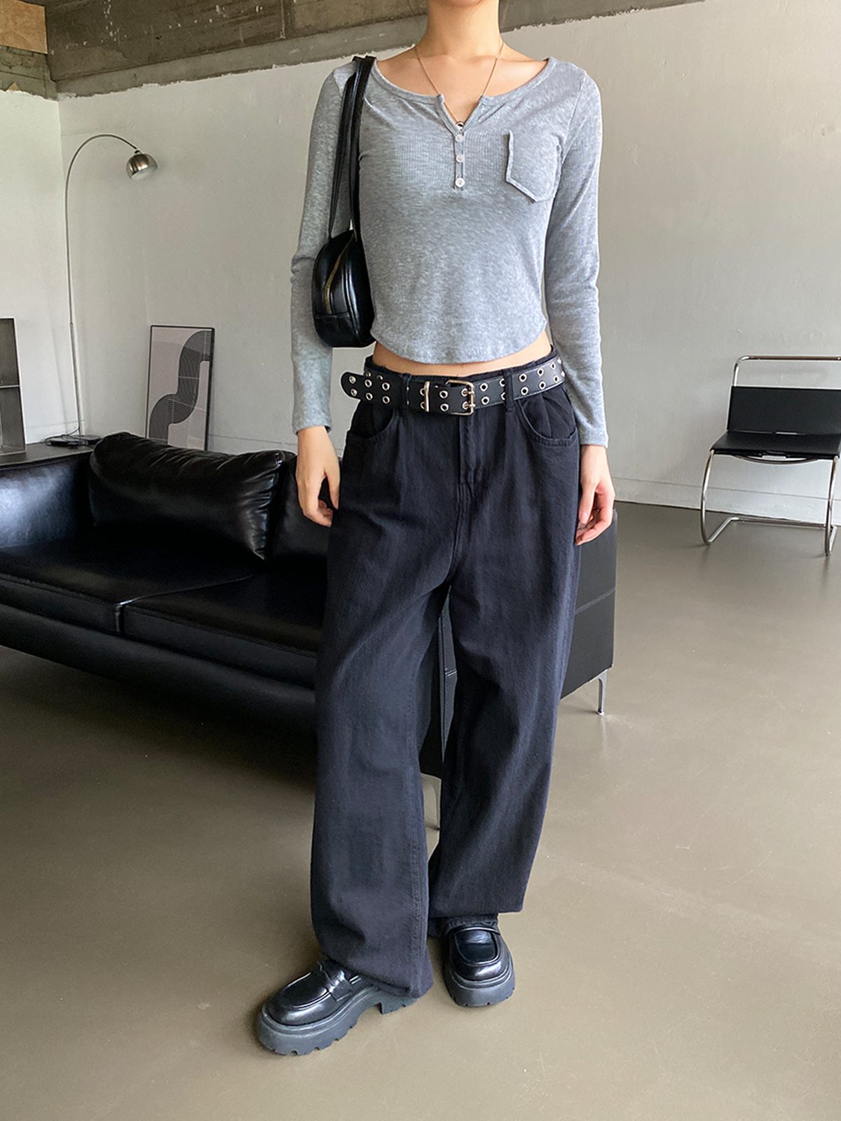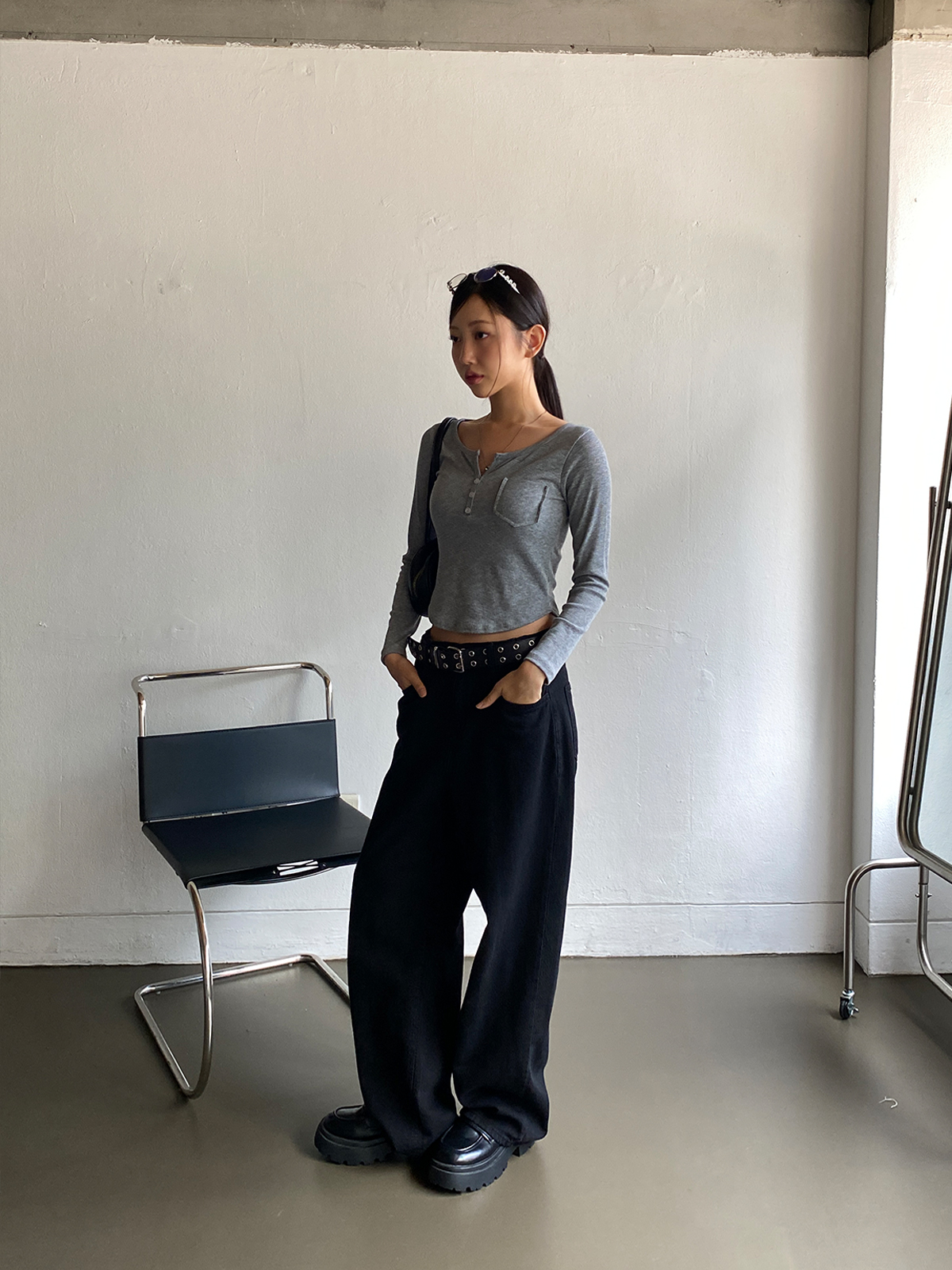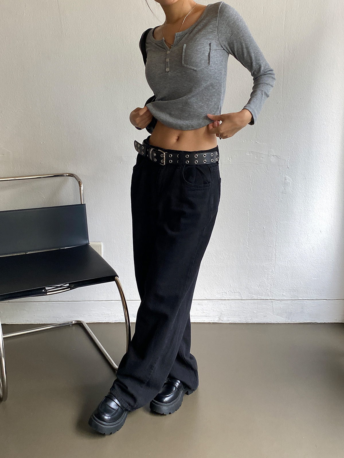 깔끔한 블랙 컬러에 밋밋하지 않게 핀턱 디자인으로 포인트를 더한 와이드핏 코튼 팬츠에요!
