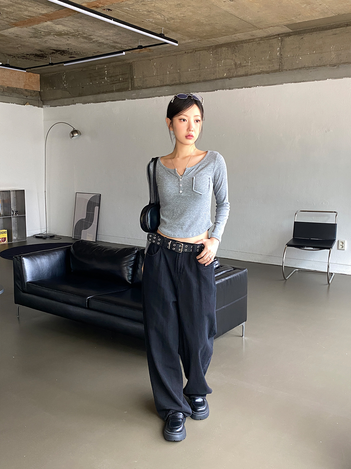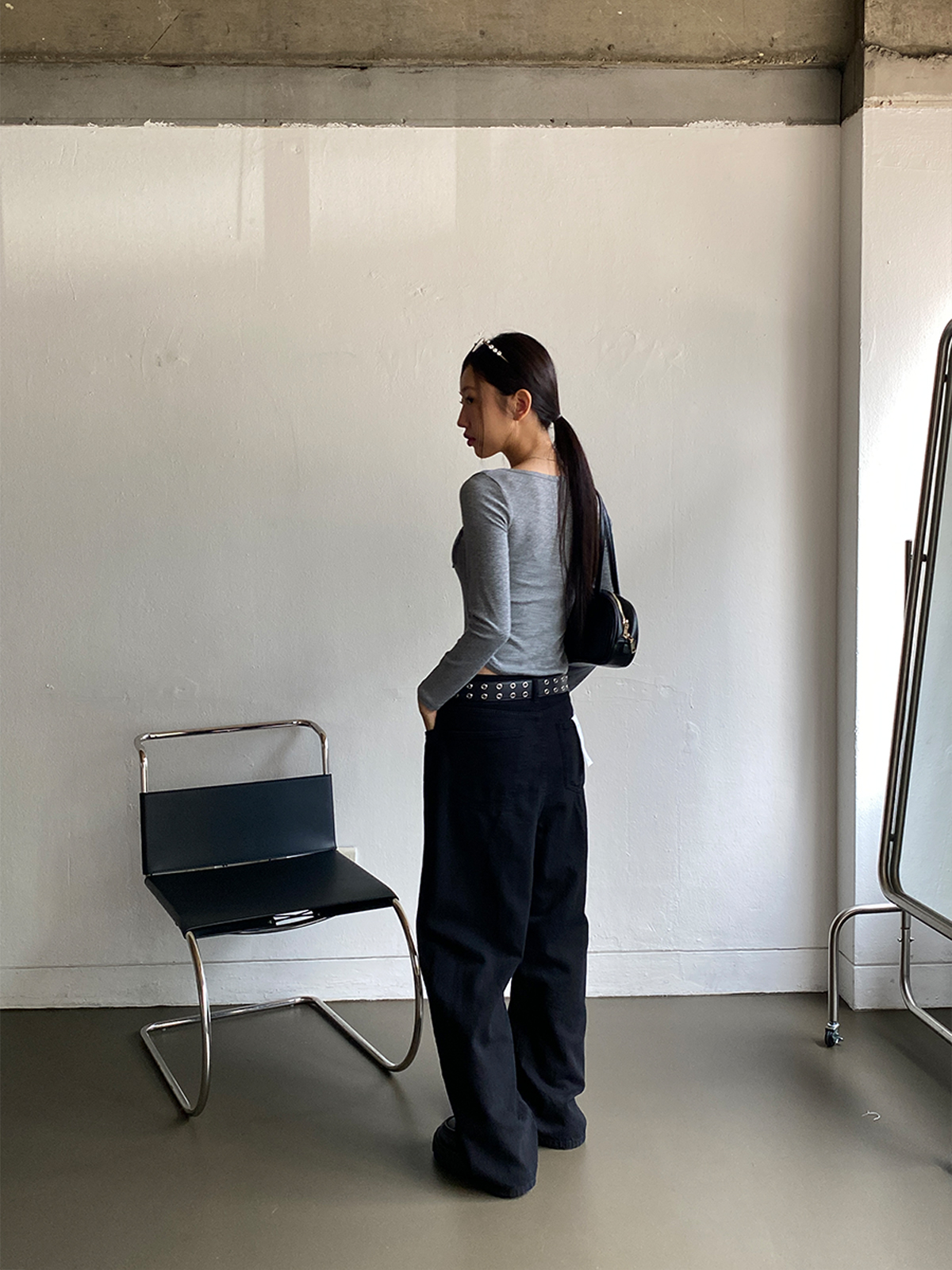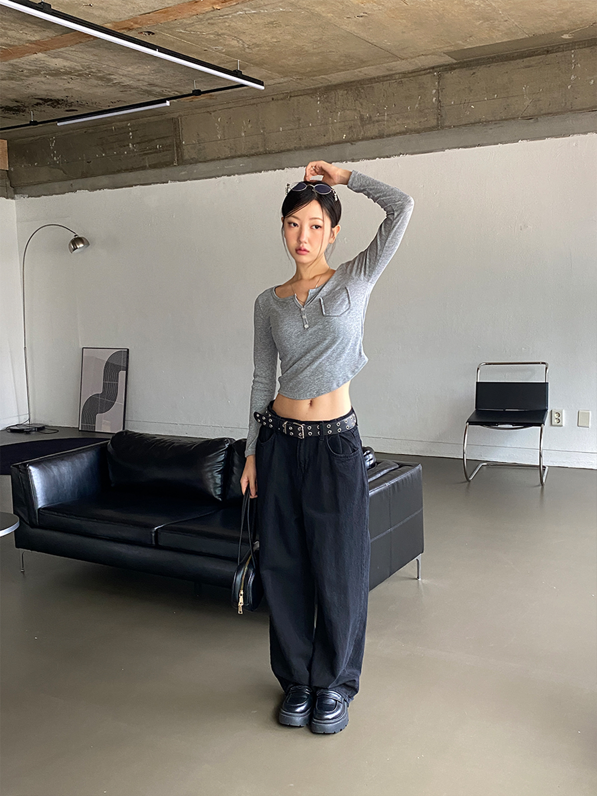 깔끔한 블랙 컬러에 밋밋하지 않게 핀턱 디자인으로 포인트를 더한 와이드핏 코튼 팬츠에요!