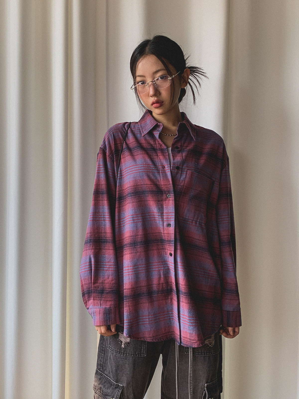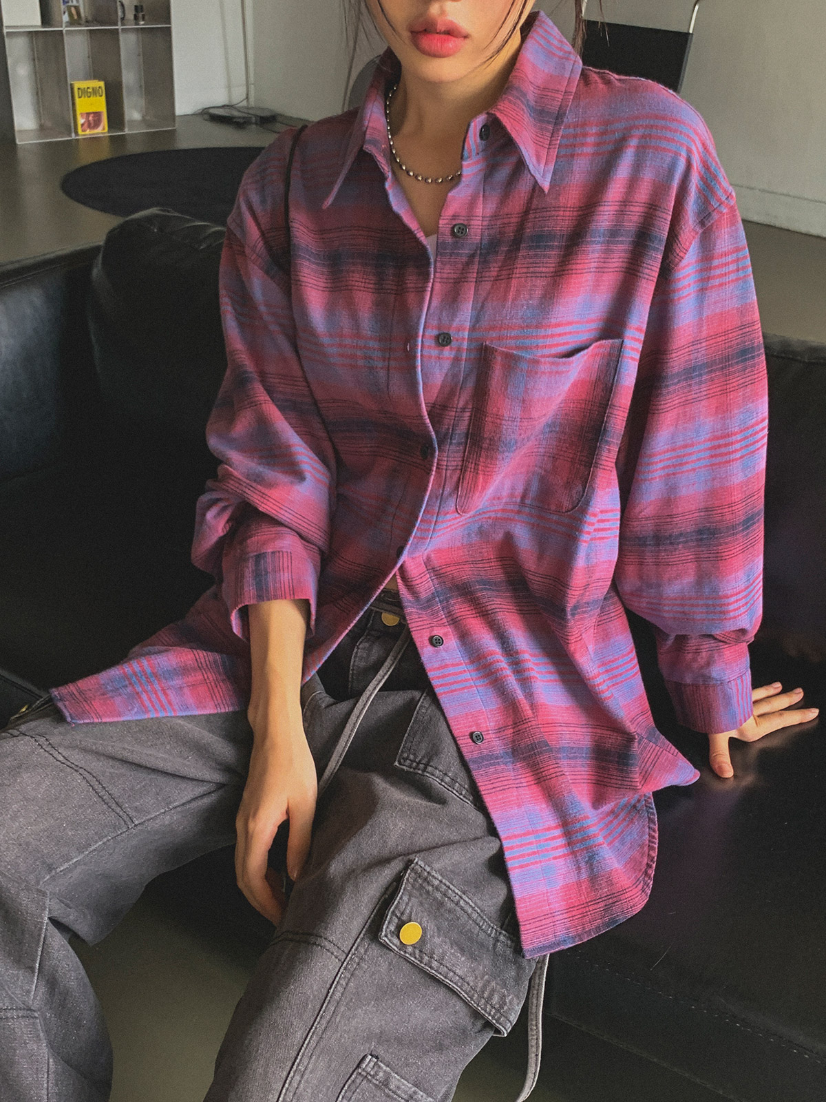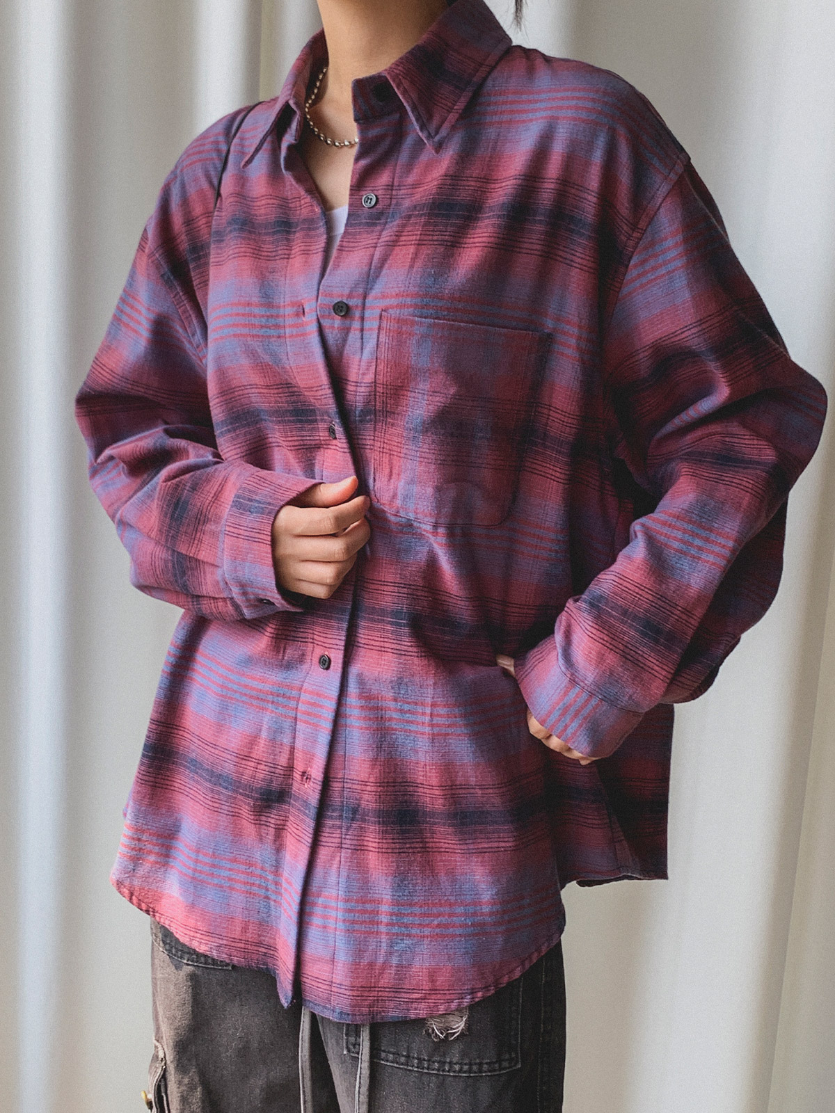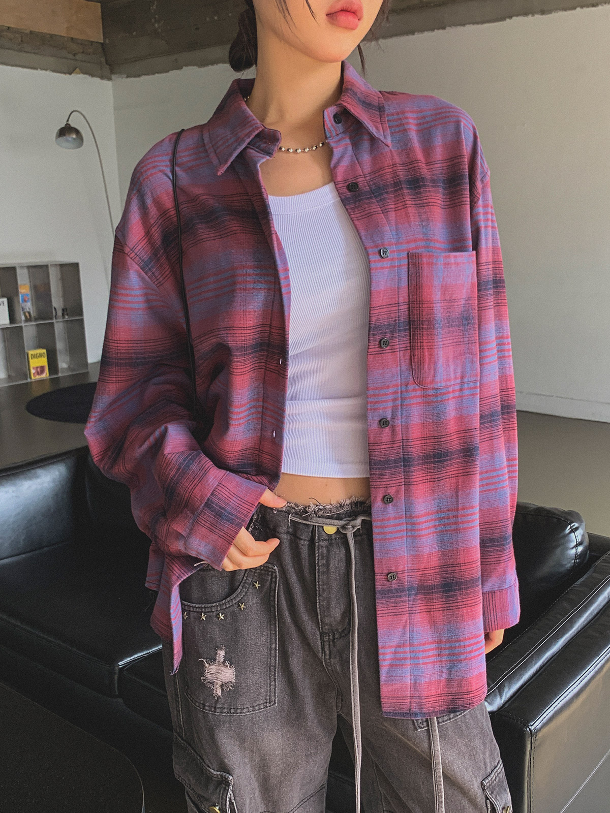 빈티지하고 올드한 무드의 체크 패턴이 매력적인 오버핏 남방