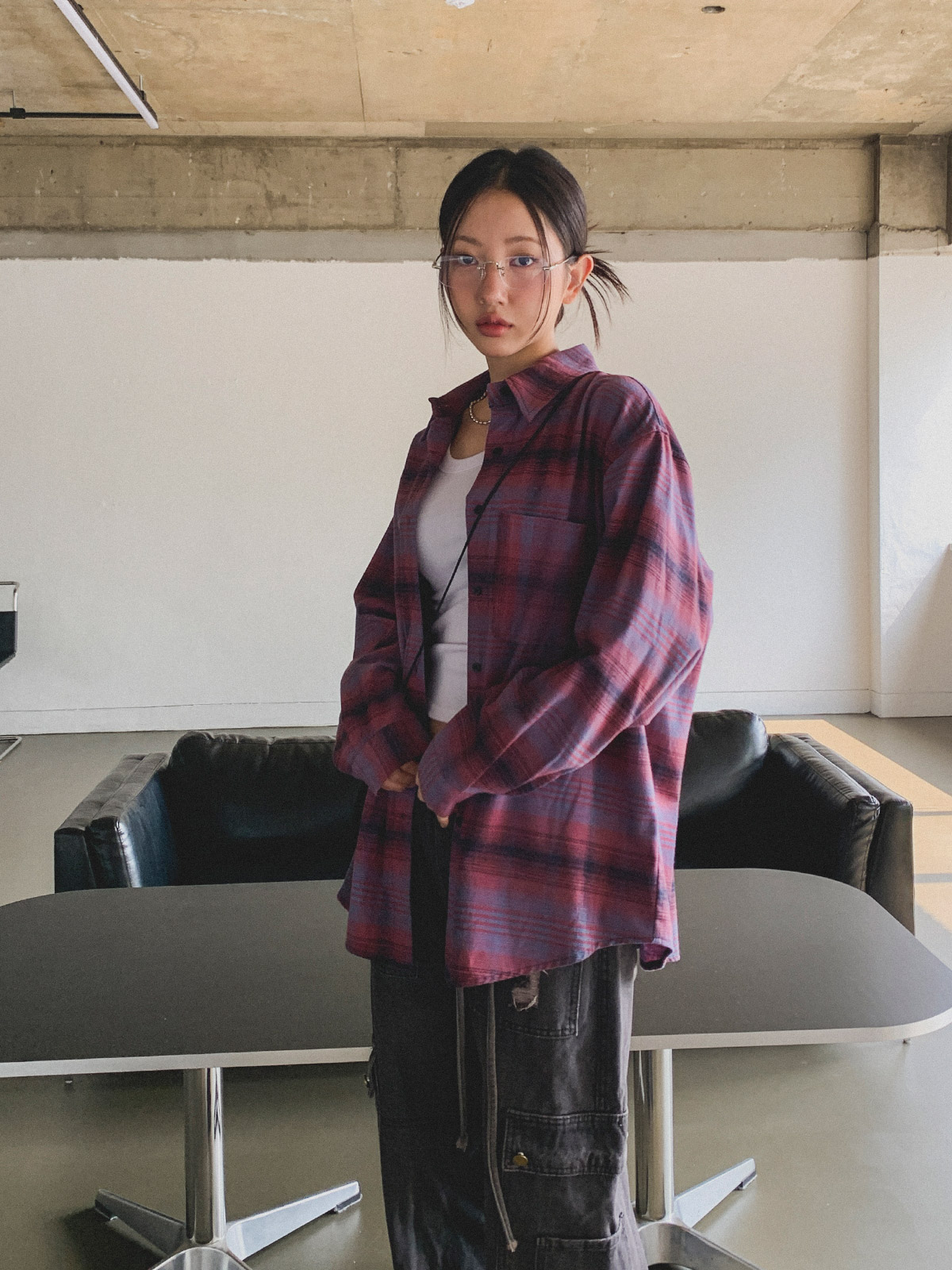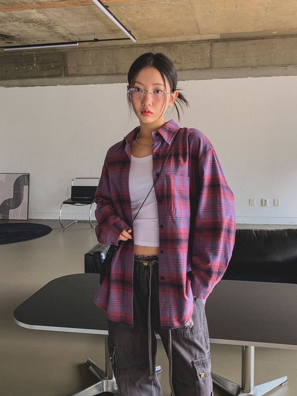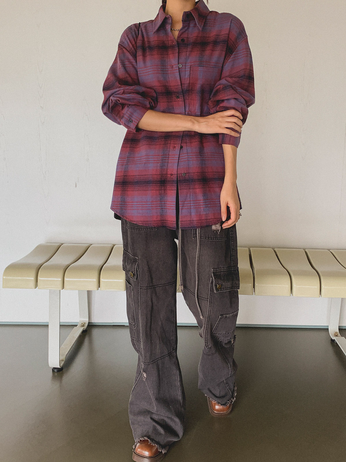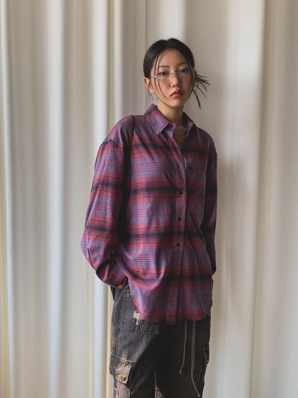빈티지하고 올드한 무드의 체크 패턴이 매력적인 오버핏 남방