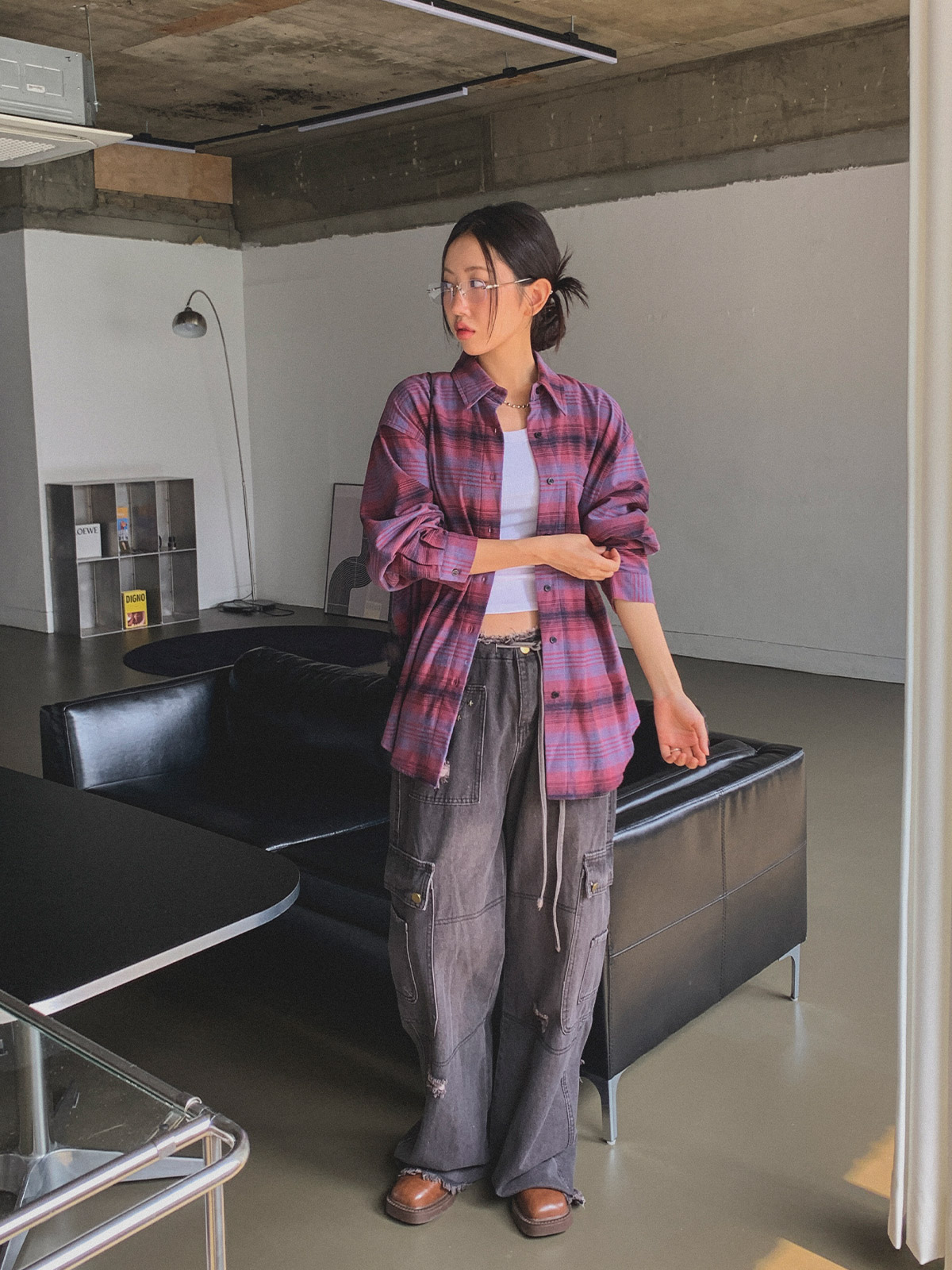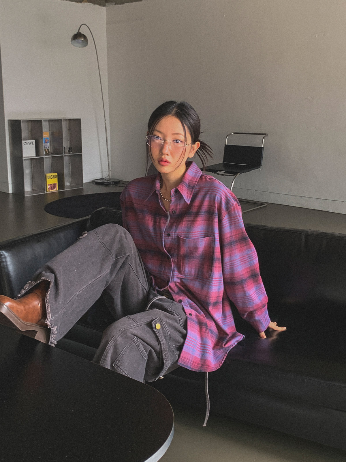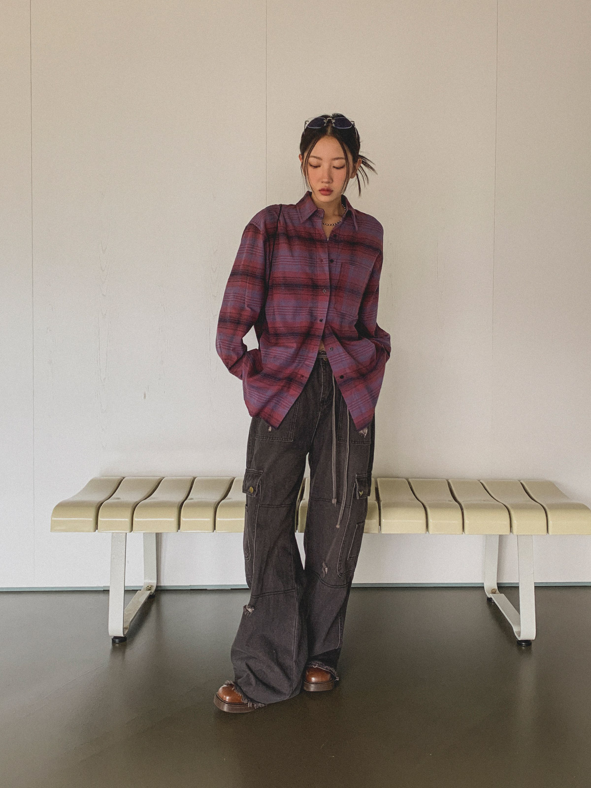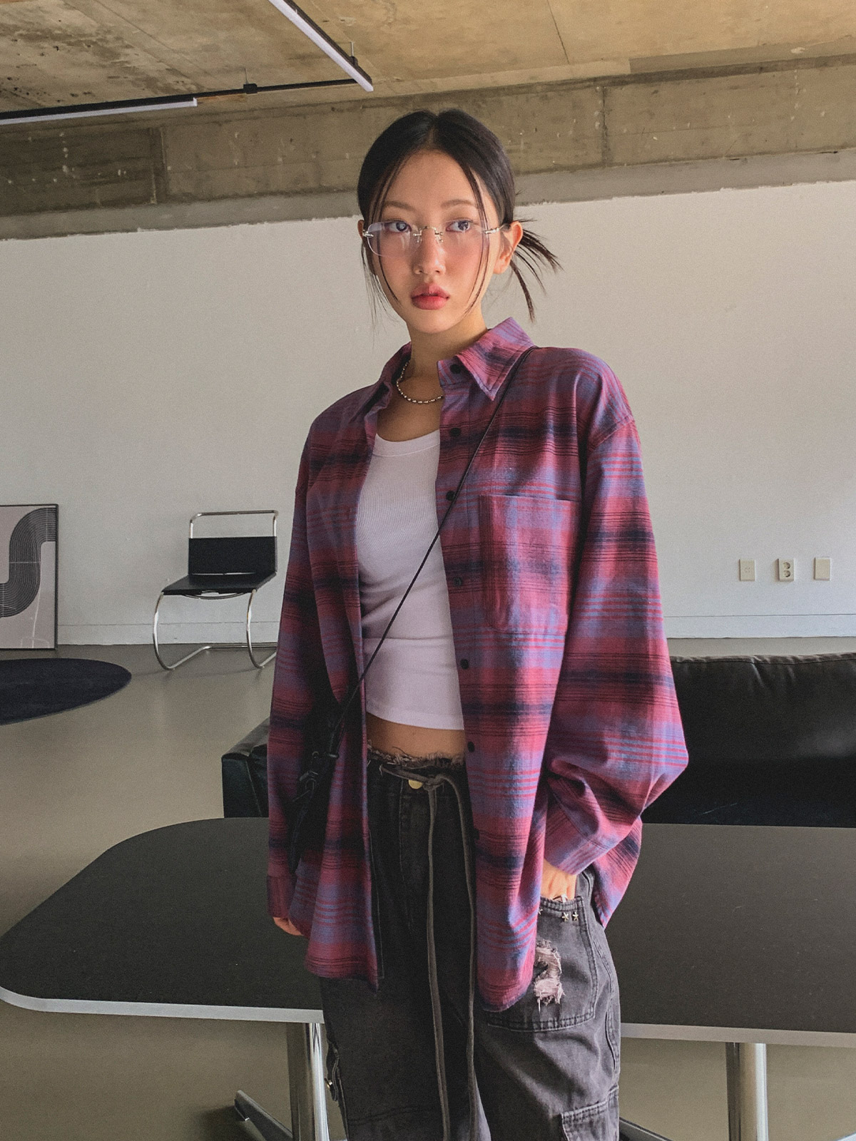 빈티지하고 올드한 무드의 체크 패턴이 매력적인 오버핏 남방
