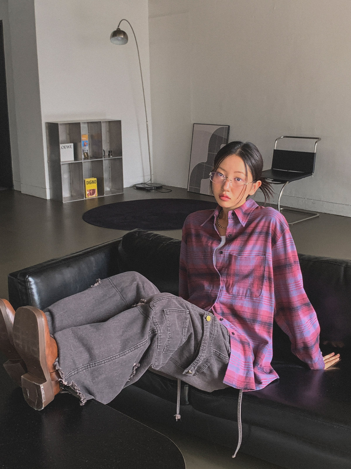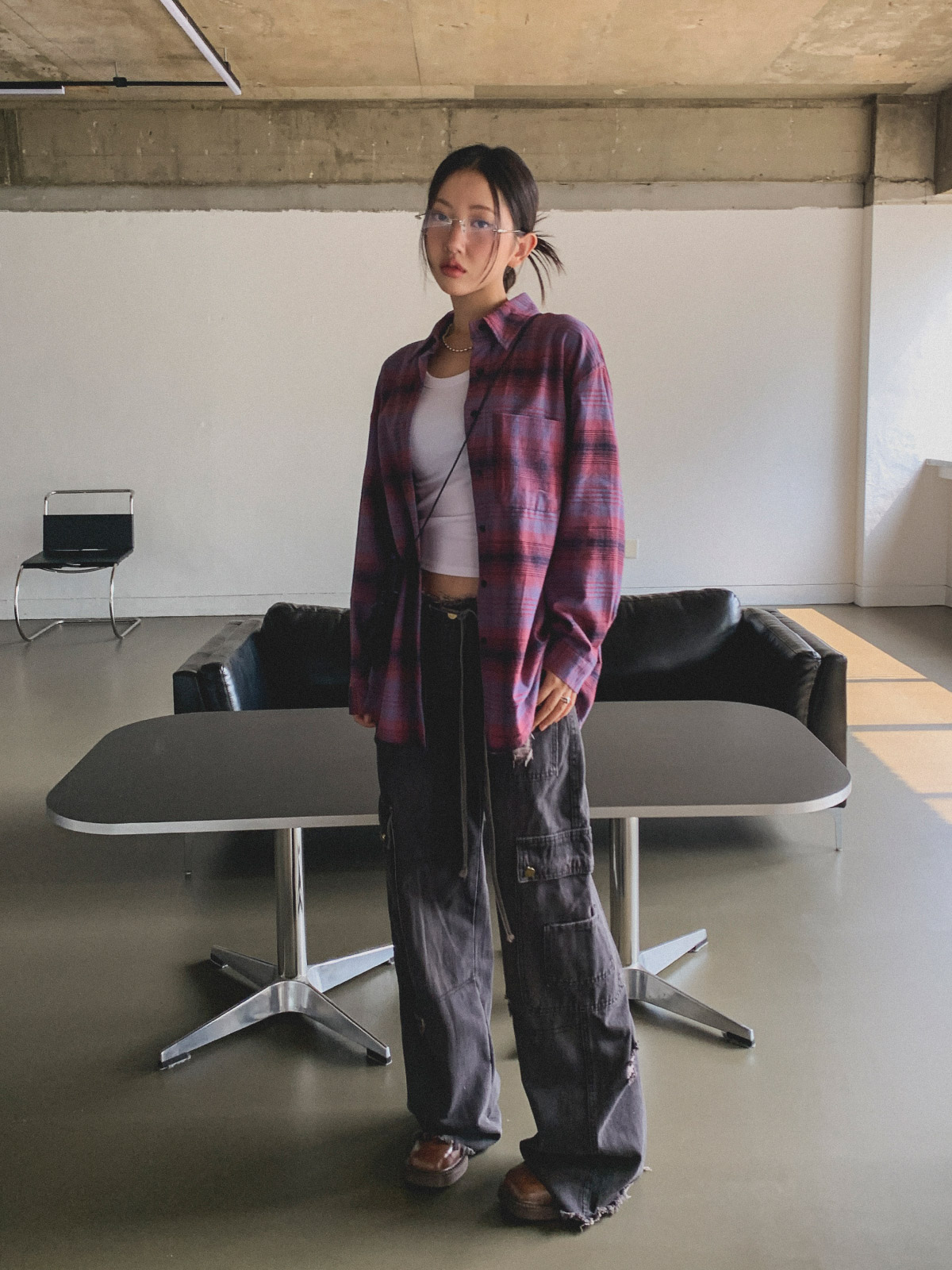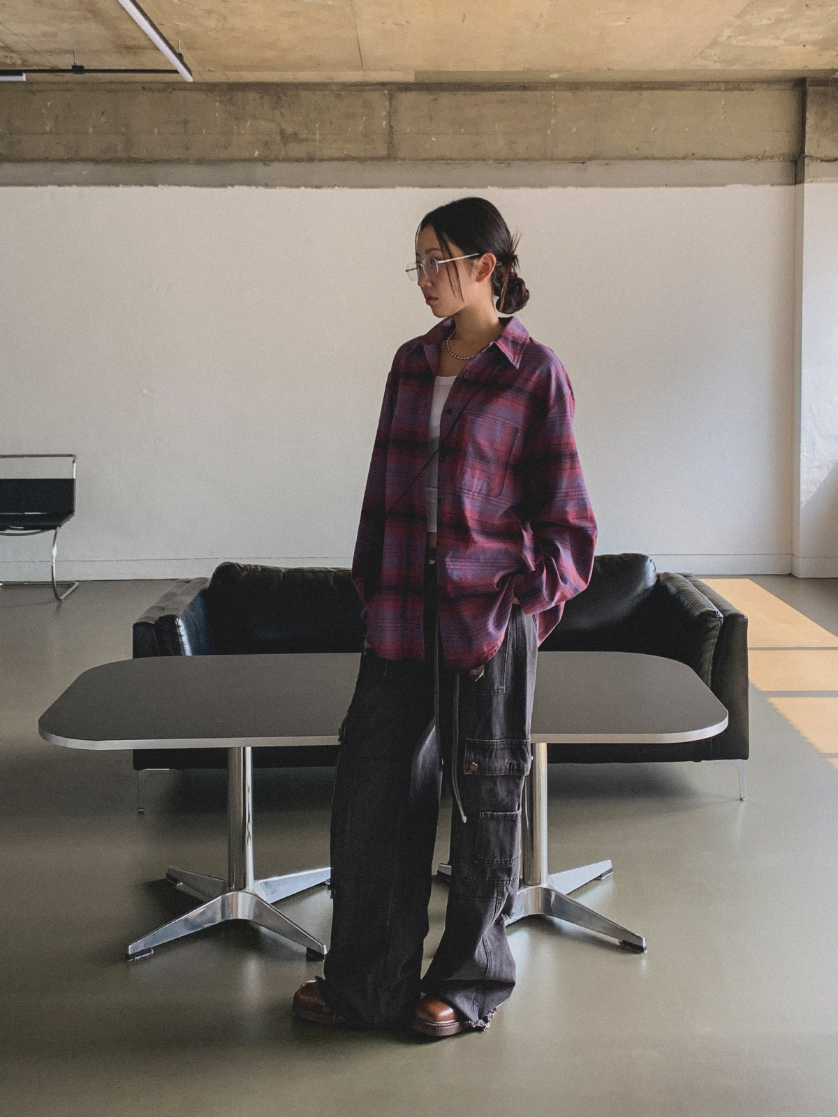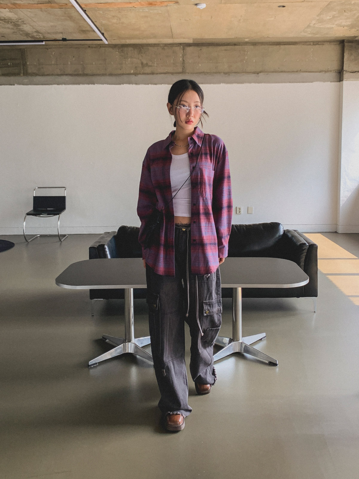 빈티지하고 올드한 무드의 체크 패턴이 매력적인 오버핏 남방
