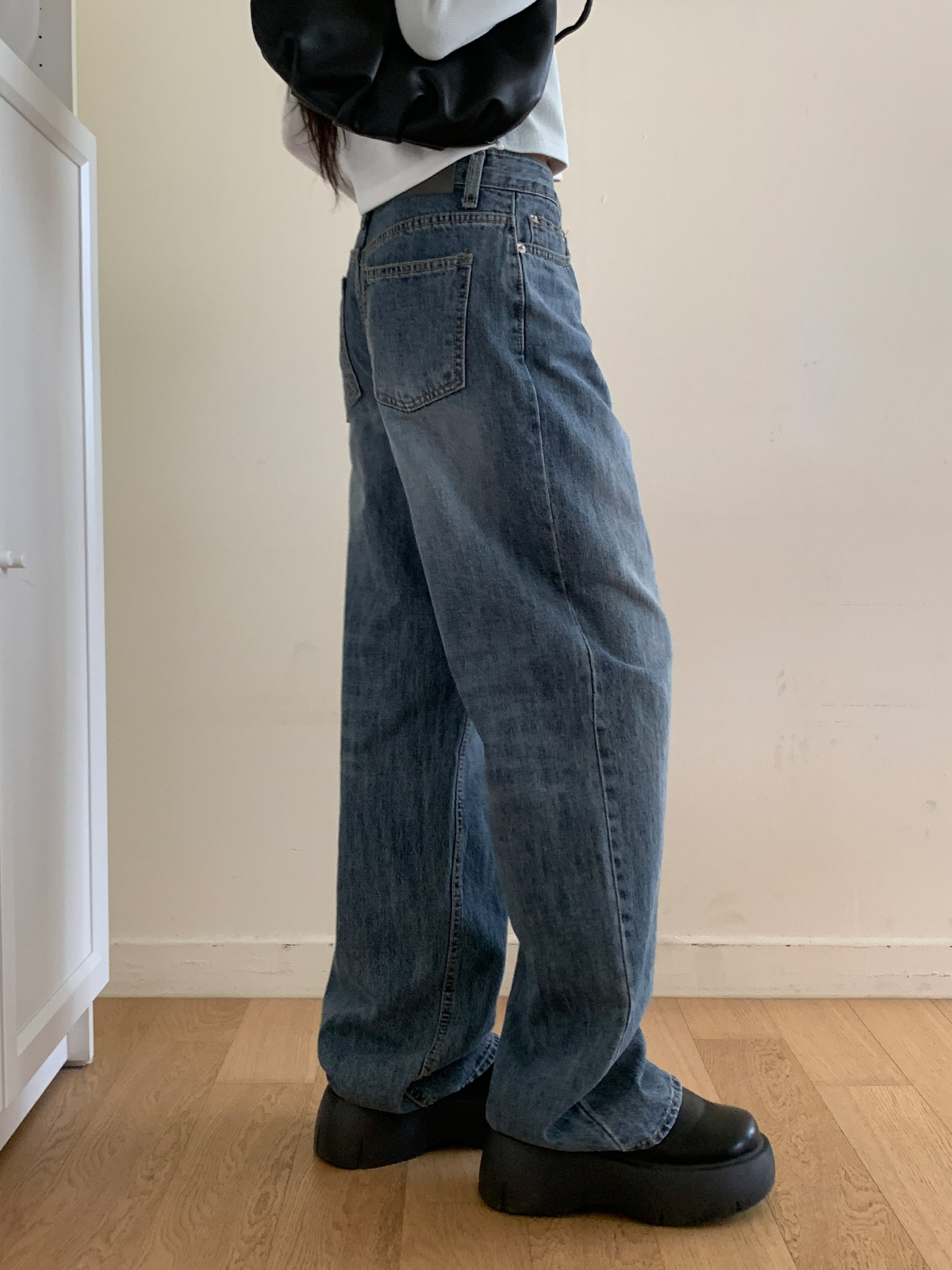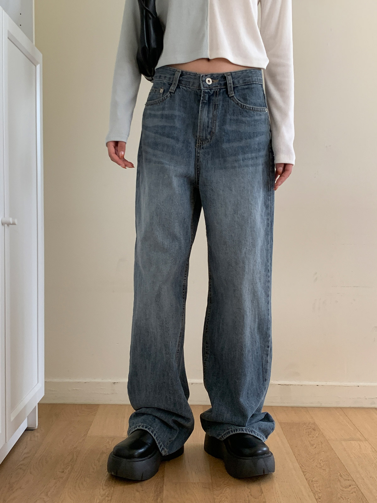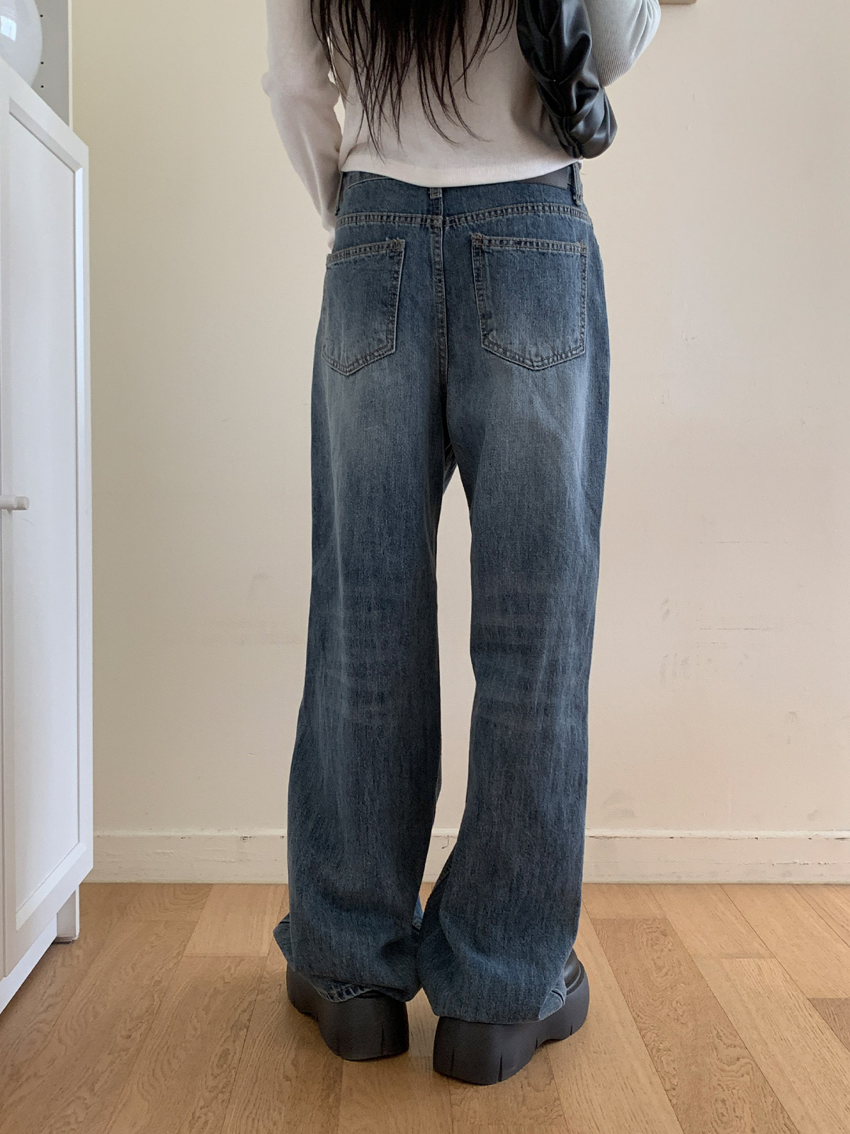 빈티지한 워싱 컬러가 가을 시즌 데일리 룩으로 잘 어울리며 편안한 일자 핏감으로 자주 손이 가게 될 데님 팬츠