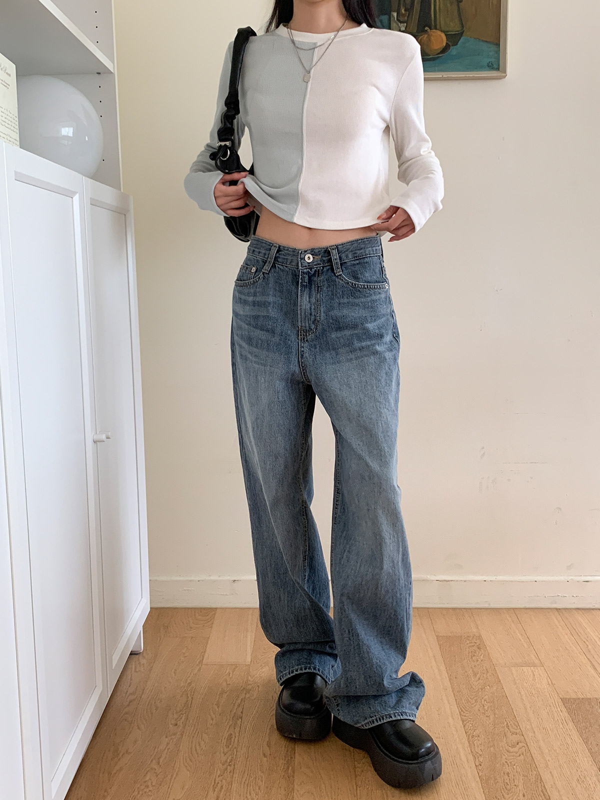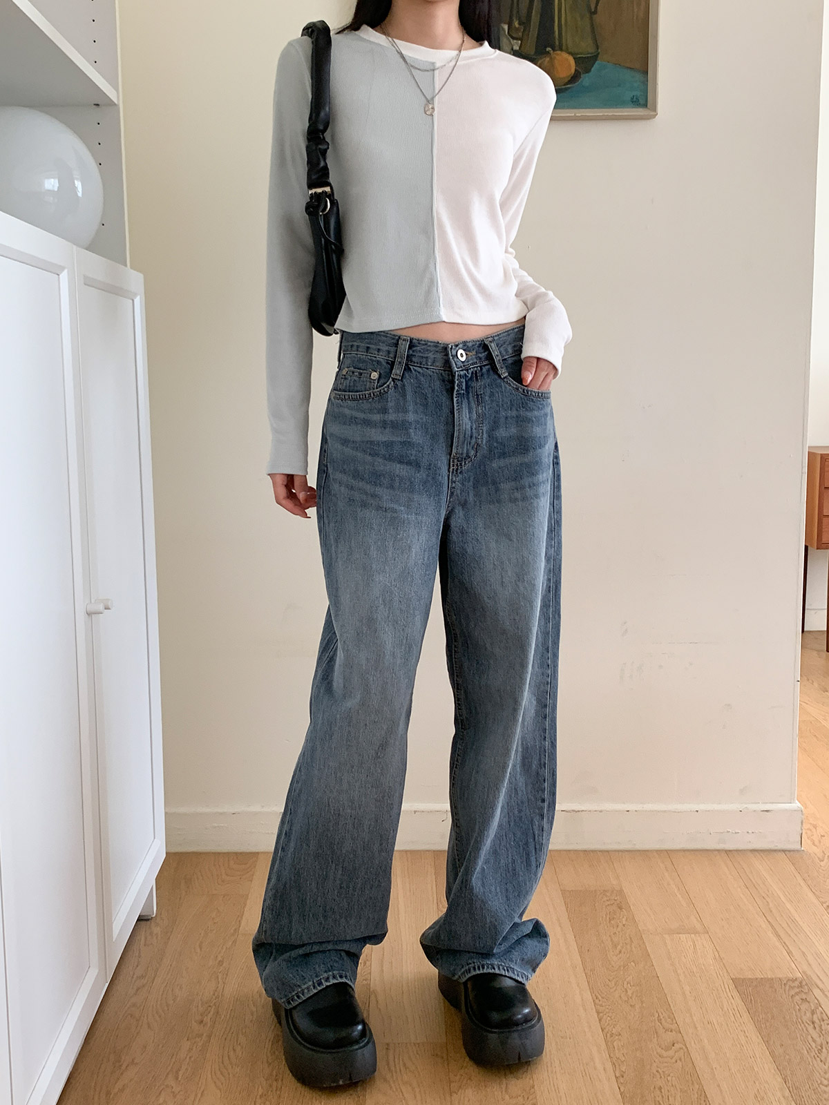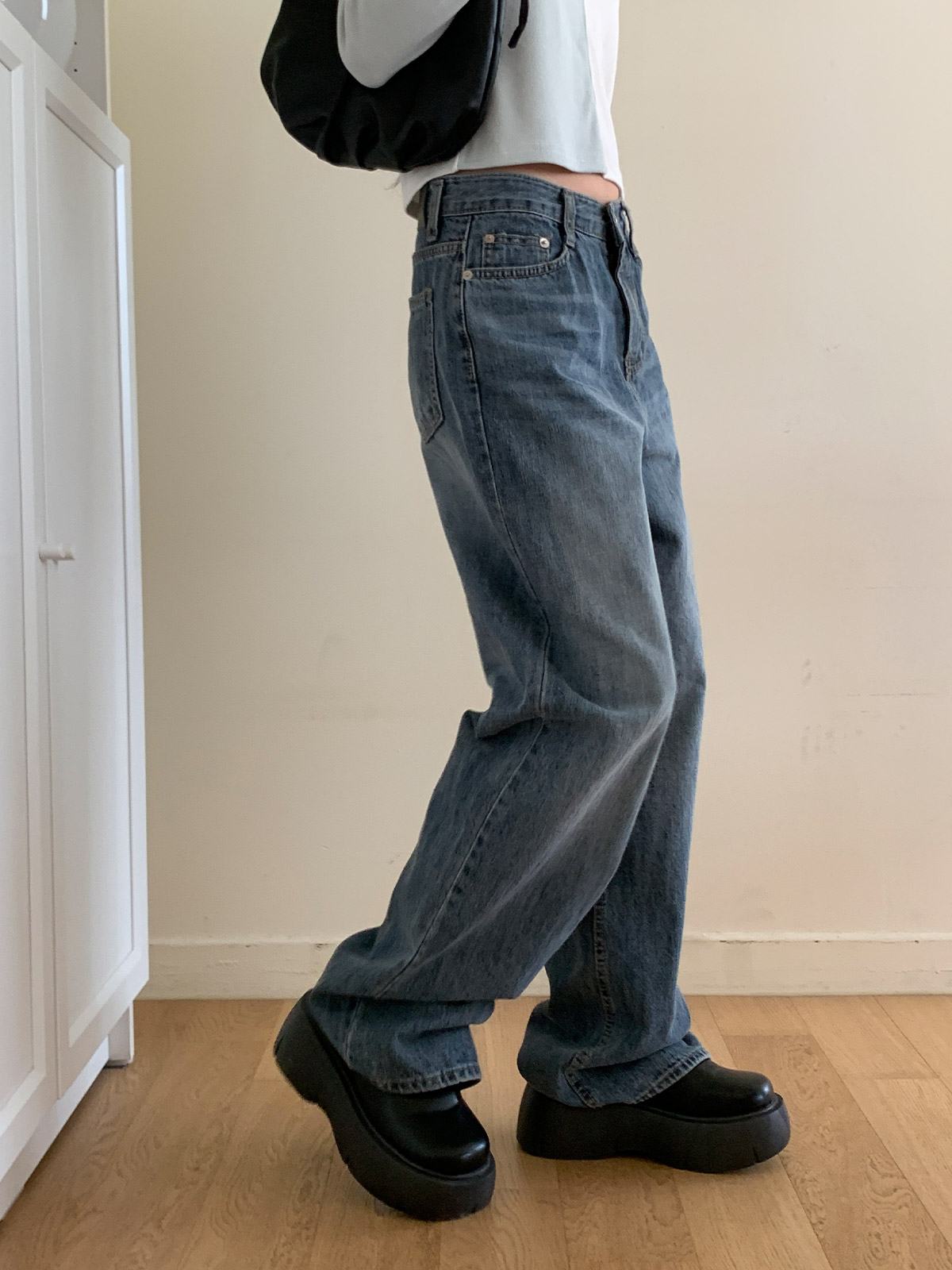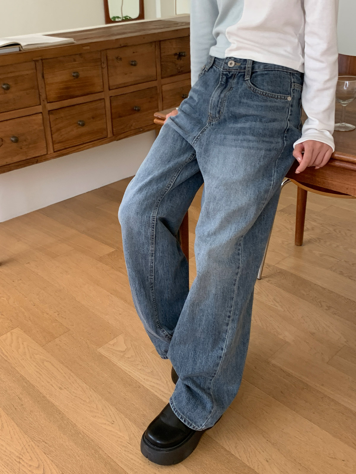빈티지한 워싱 컬러가 가을 시즌 데일리 룩으로 잘 어울리며 편안한 일자 핏감으로 자주 손이 가게 될 데님 팬츠