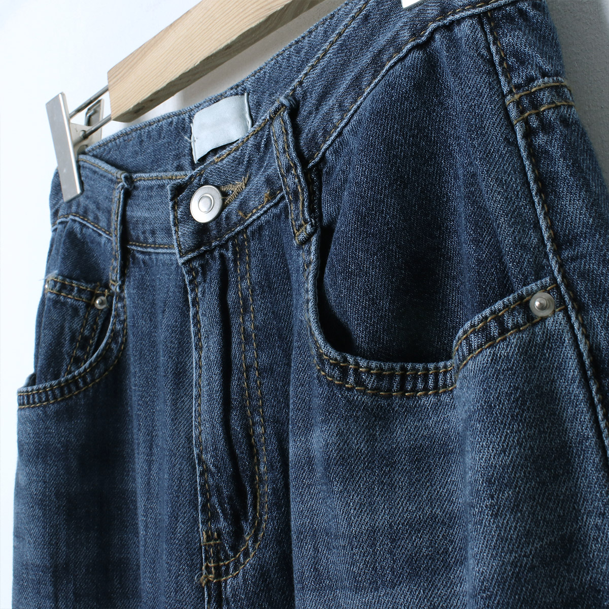 부담스럽지 않은 무게감으로 편안한 착용감을 주는 일자 와이드핏 데님 팬츠에요!