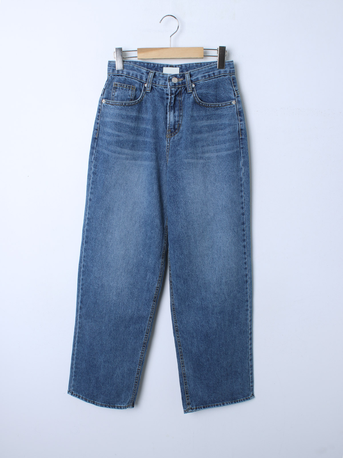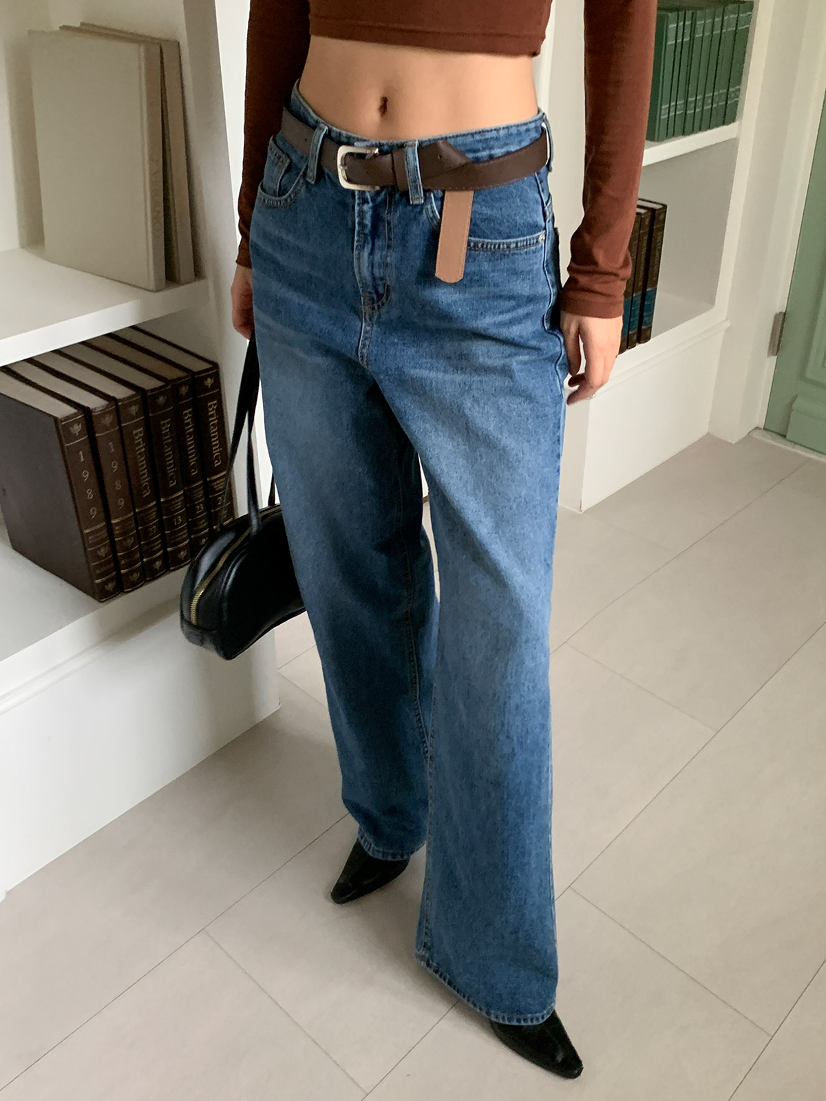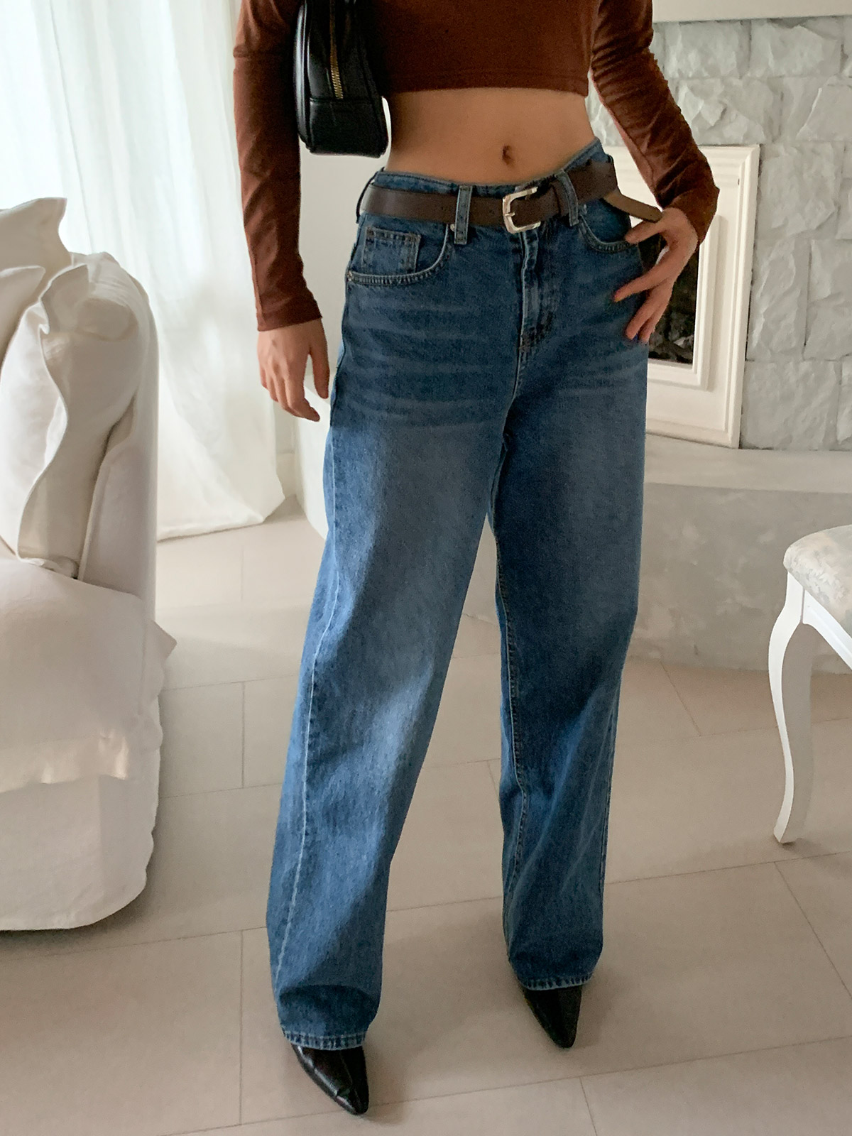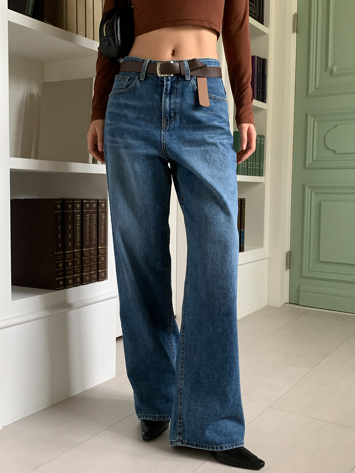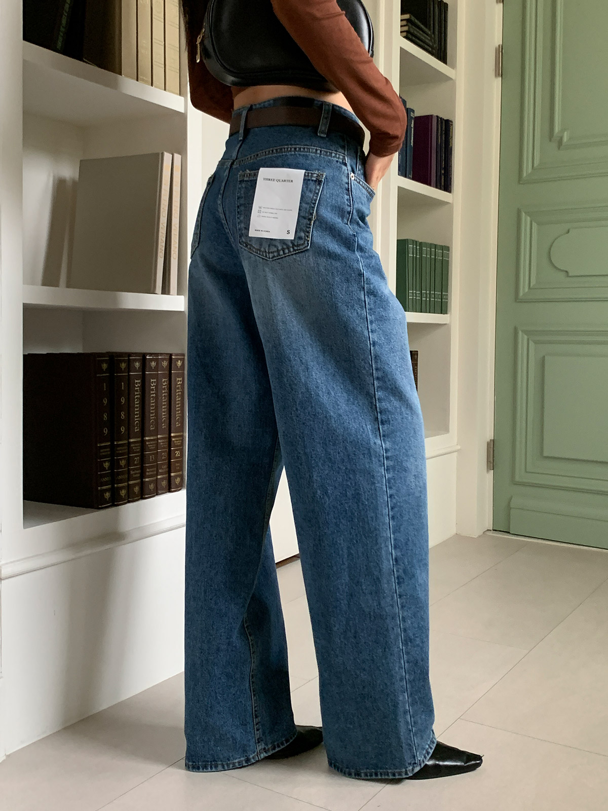 베이직한 디자인과 스탠다드하게 떨어지는 실루엣이 매력적인 와이드 데님 팬츠