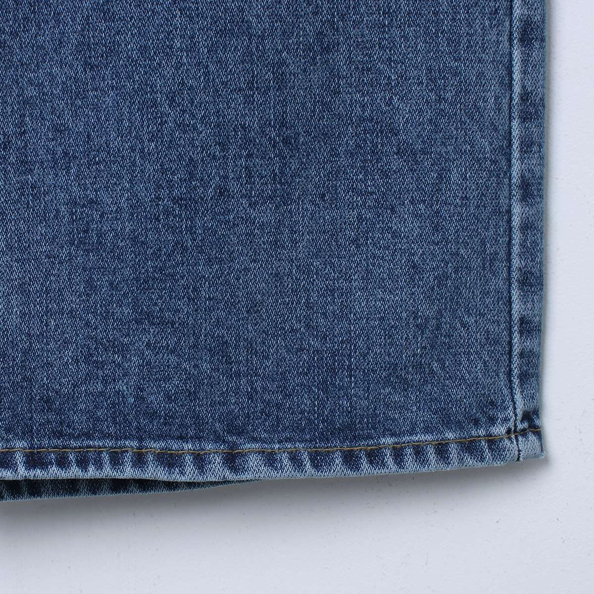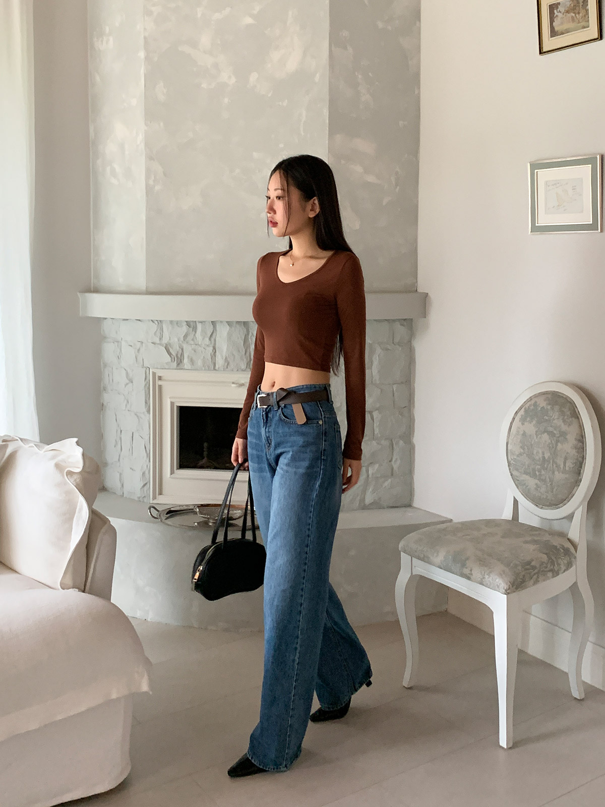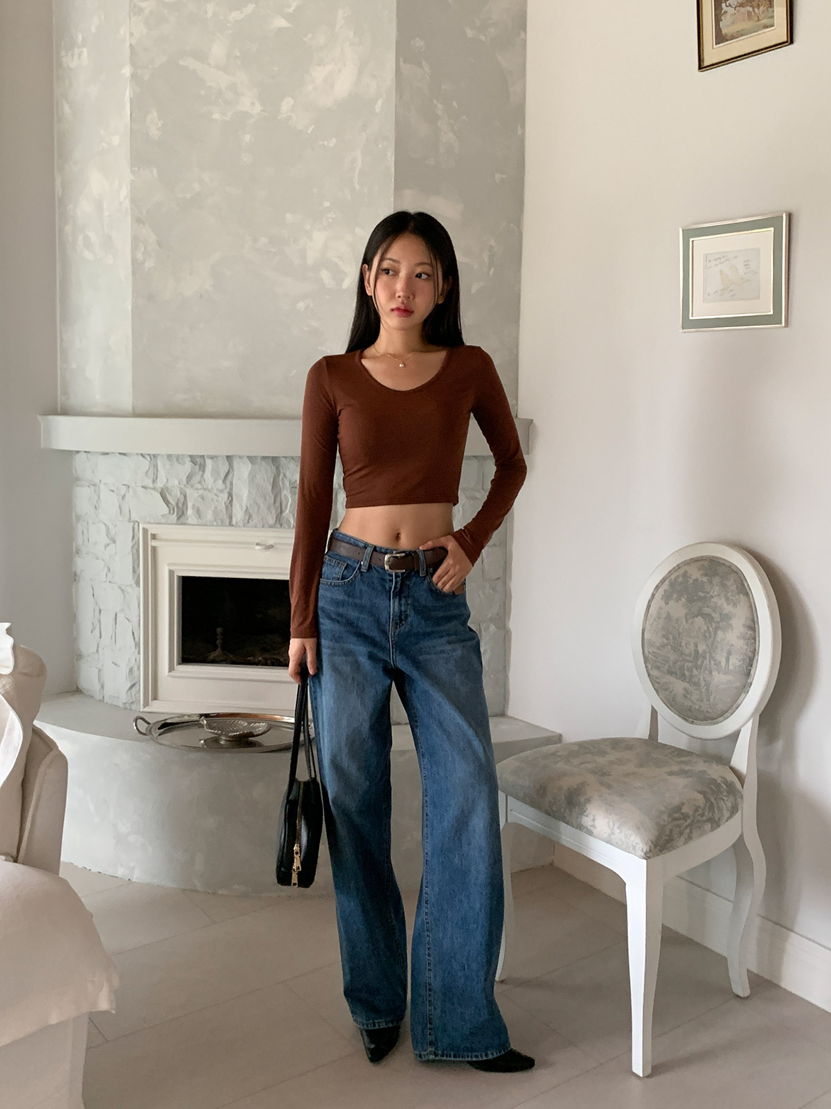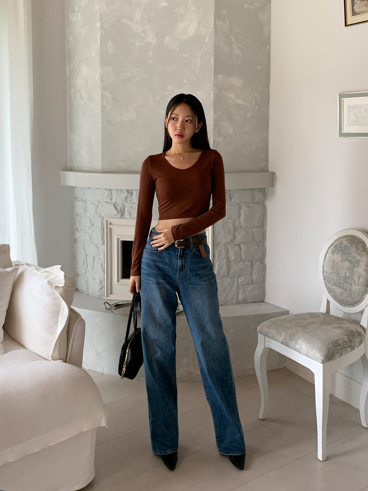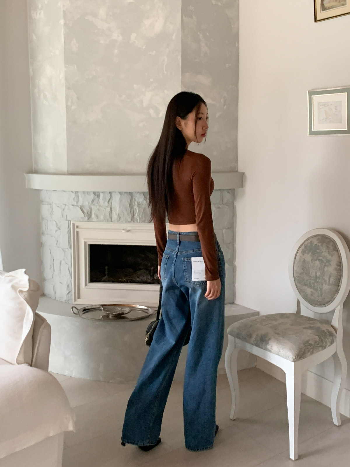 베이직한 디자인과 스탠다드하게 떨어지는 실루엣이 매력적인 와이드 데님 팬츠