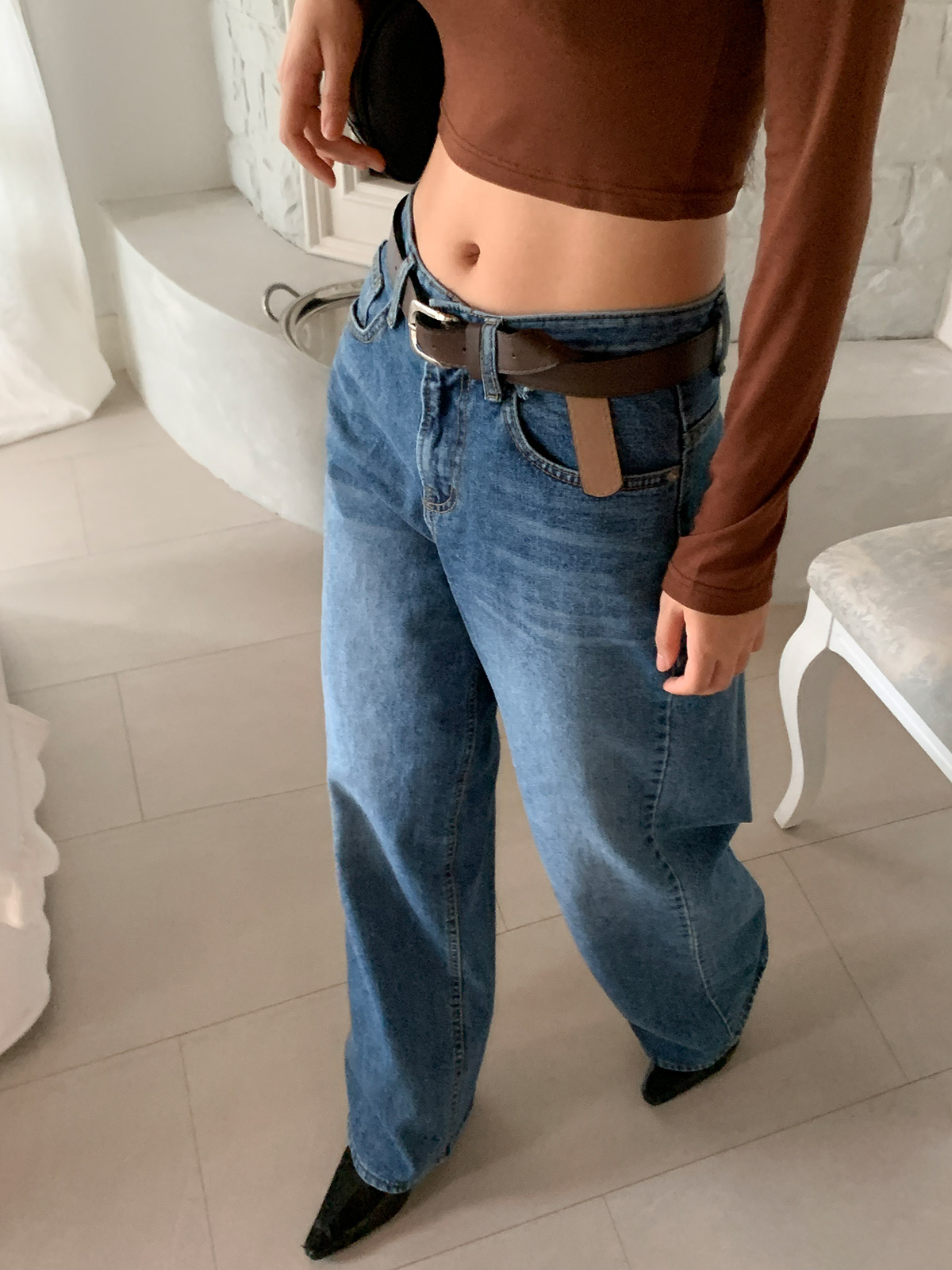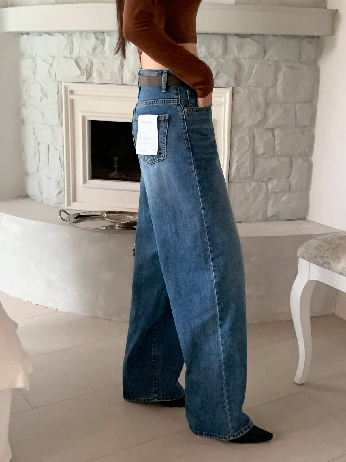 베이직한 디자인과 스탠다드하게 떨어지는 실루엣이 매력적인 와이드 데님 팬츠에요!