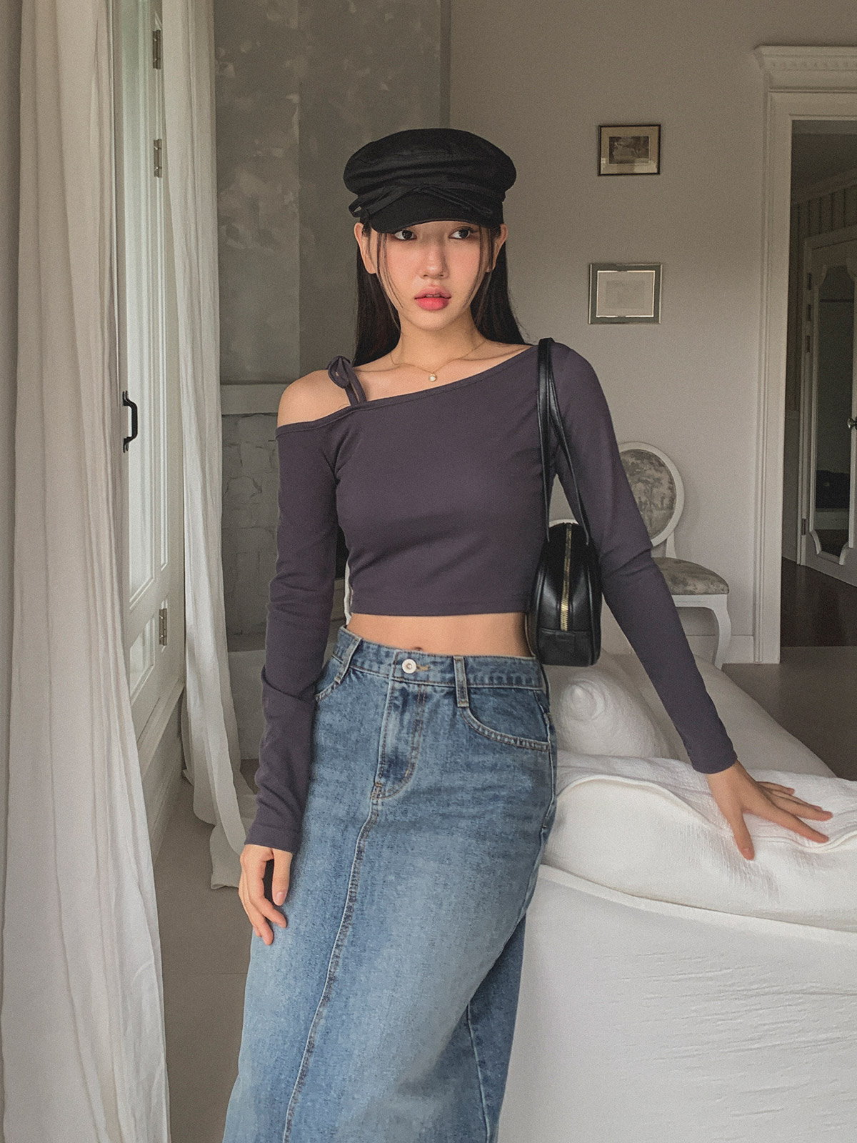 깔끔하면서 빈티지한 워싱과 뒷 트임 디자인이 매력적인 데님 롱스커트에요!