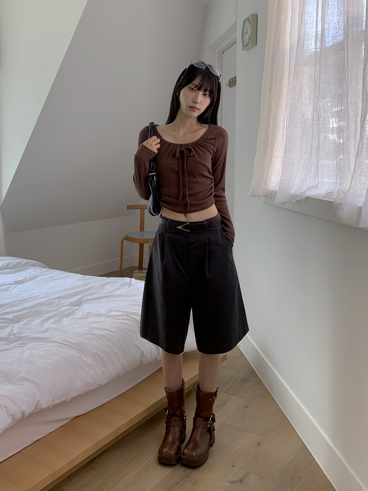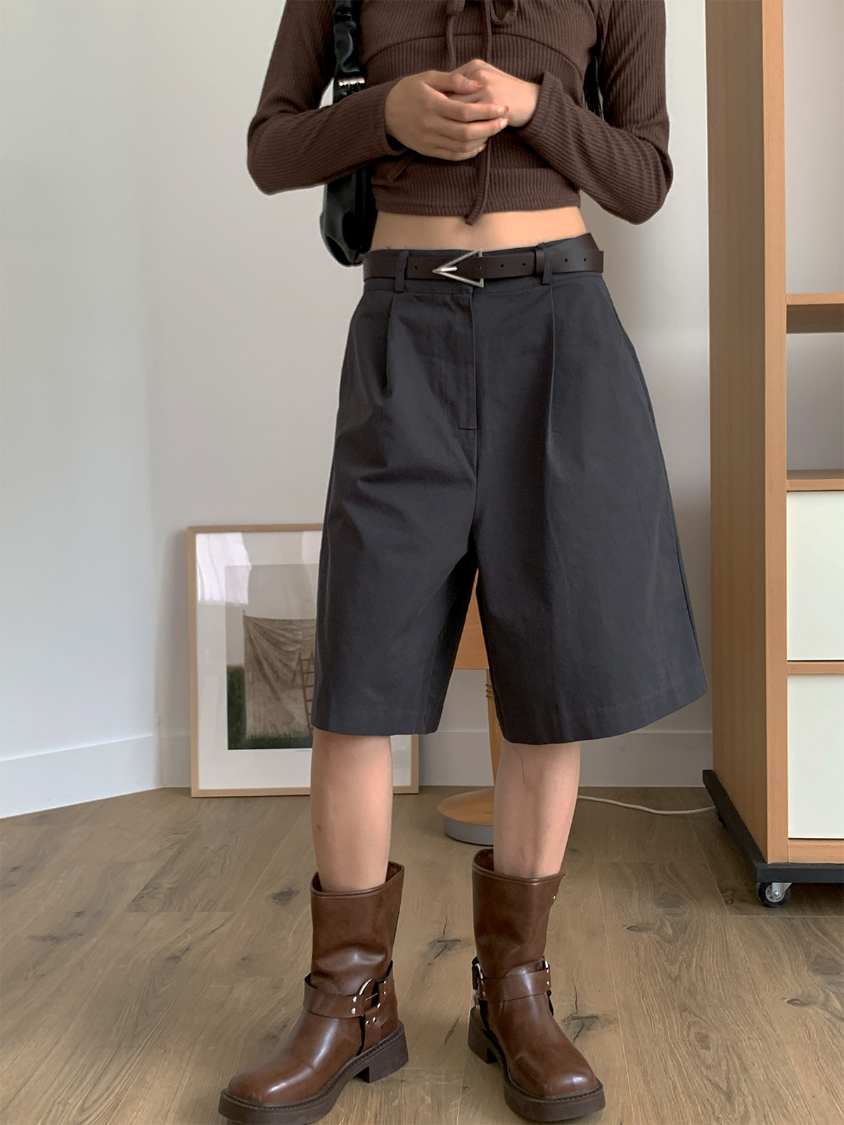 깔끔하게 떨어지는 핏과 핀턱으로 포인트를 더해 밋밋하지 않아 데일리로 입기 좋은 버뮤다 팬츠에요!