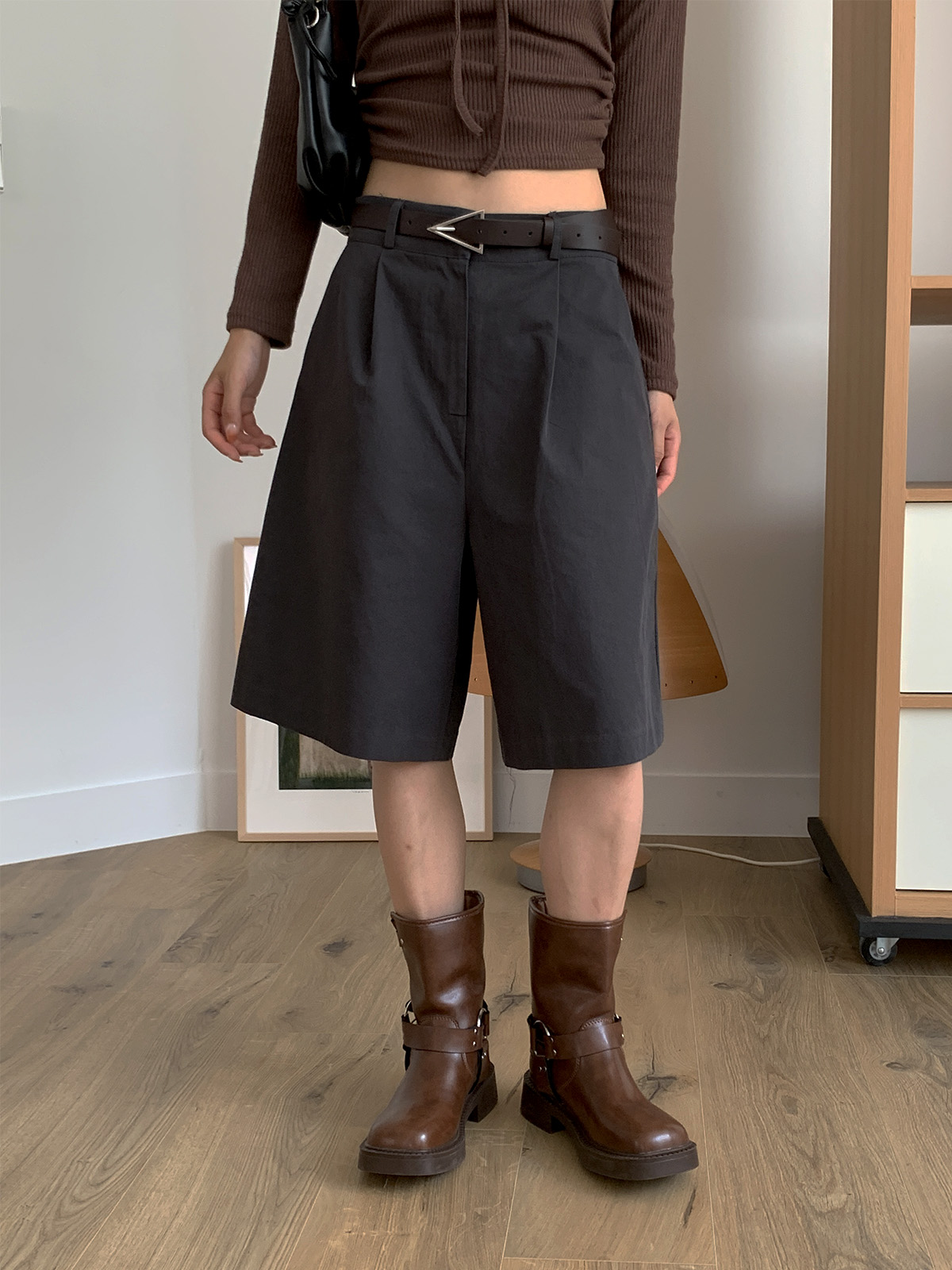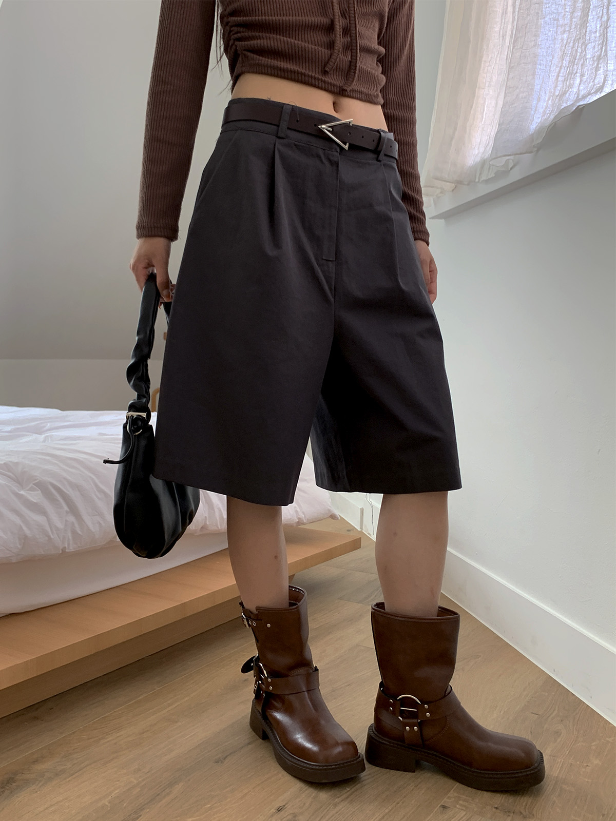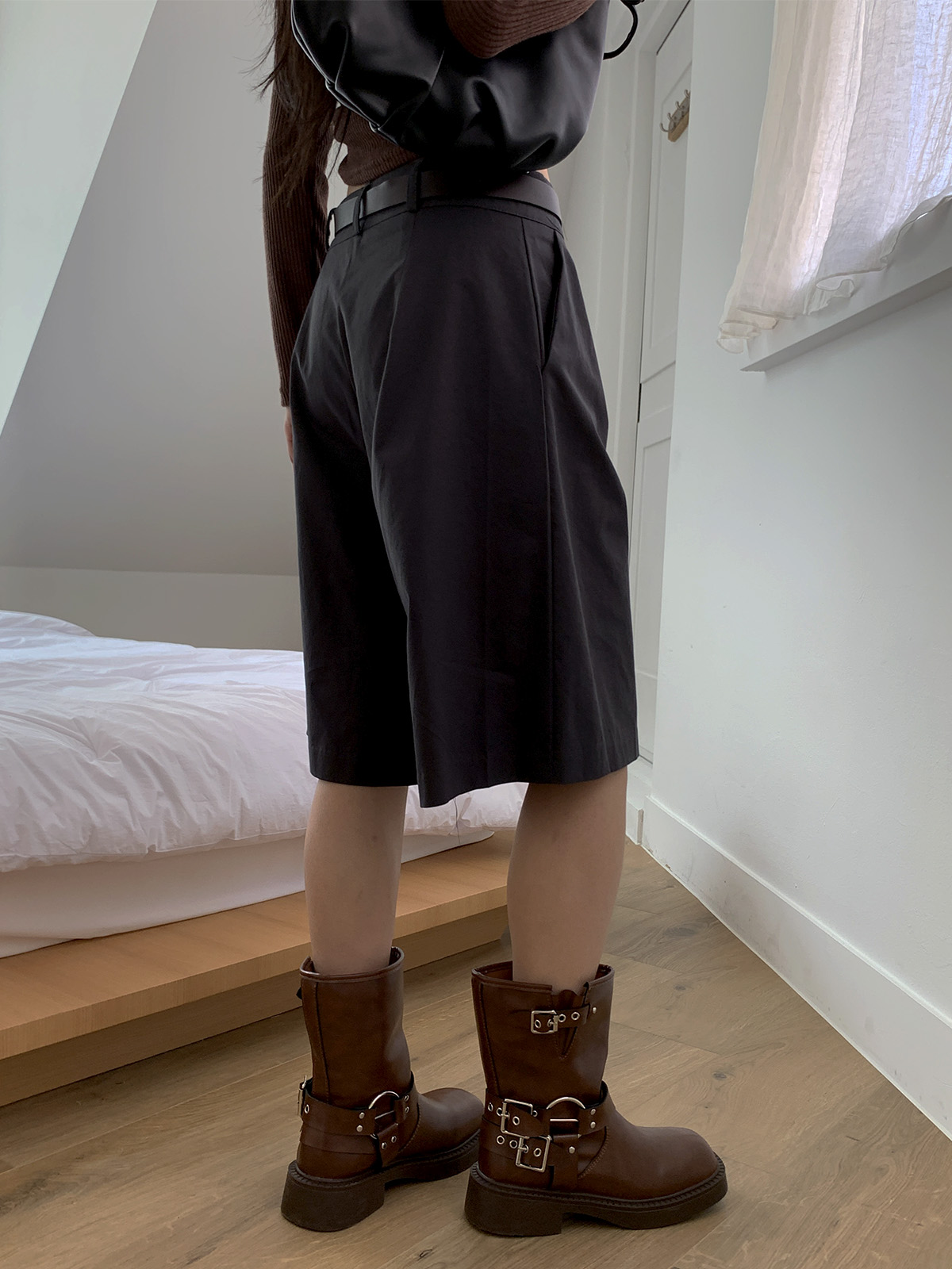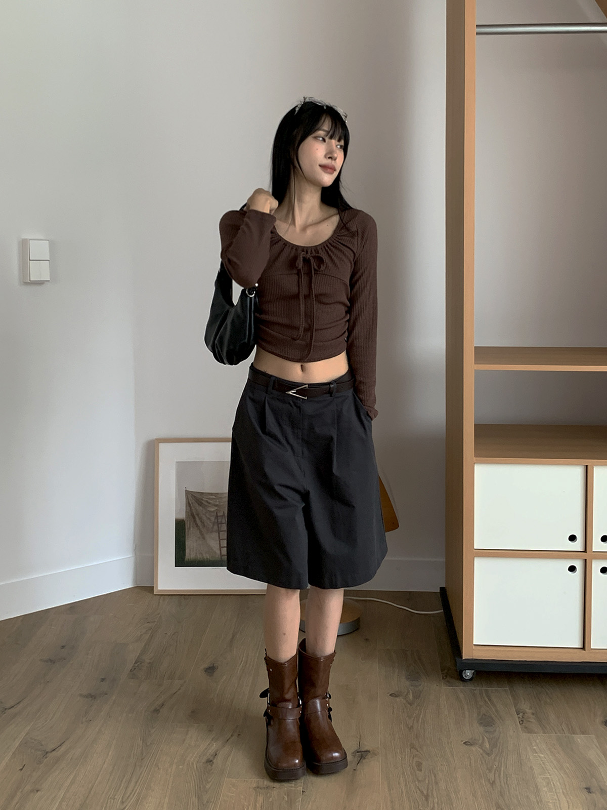 깔끔하게 떨어지는 핏과 핀턱으로 포인트를 더해 밋밋하지 않아 데일리로 입기 좋은 버뮤다 팬츠