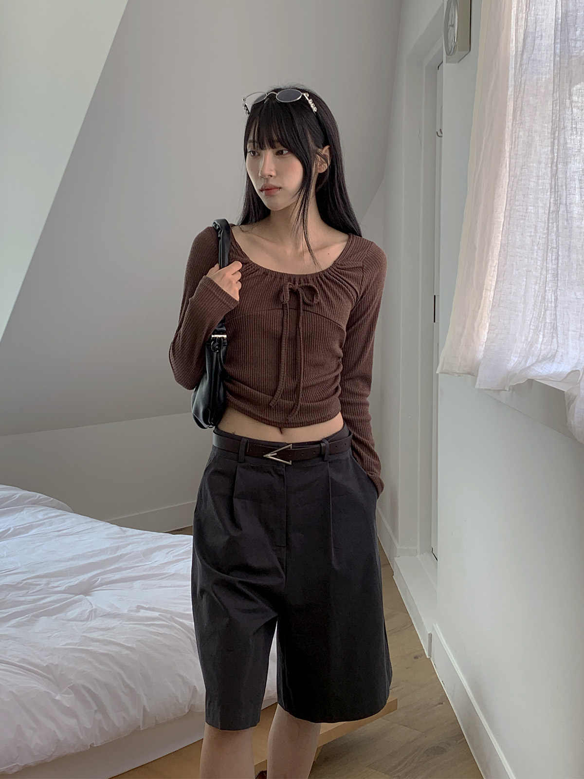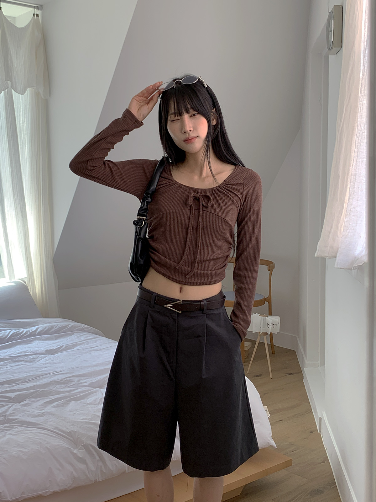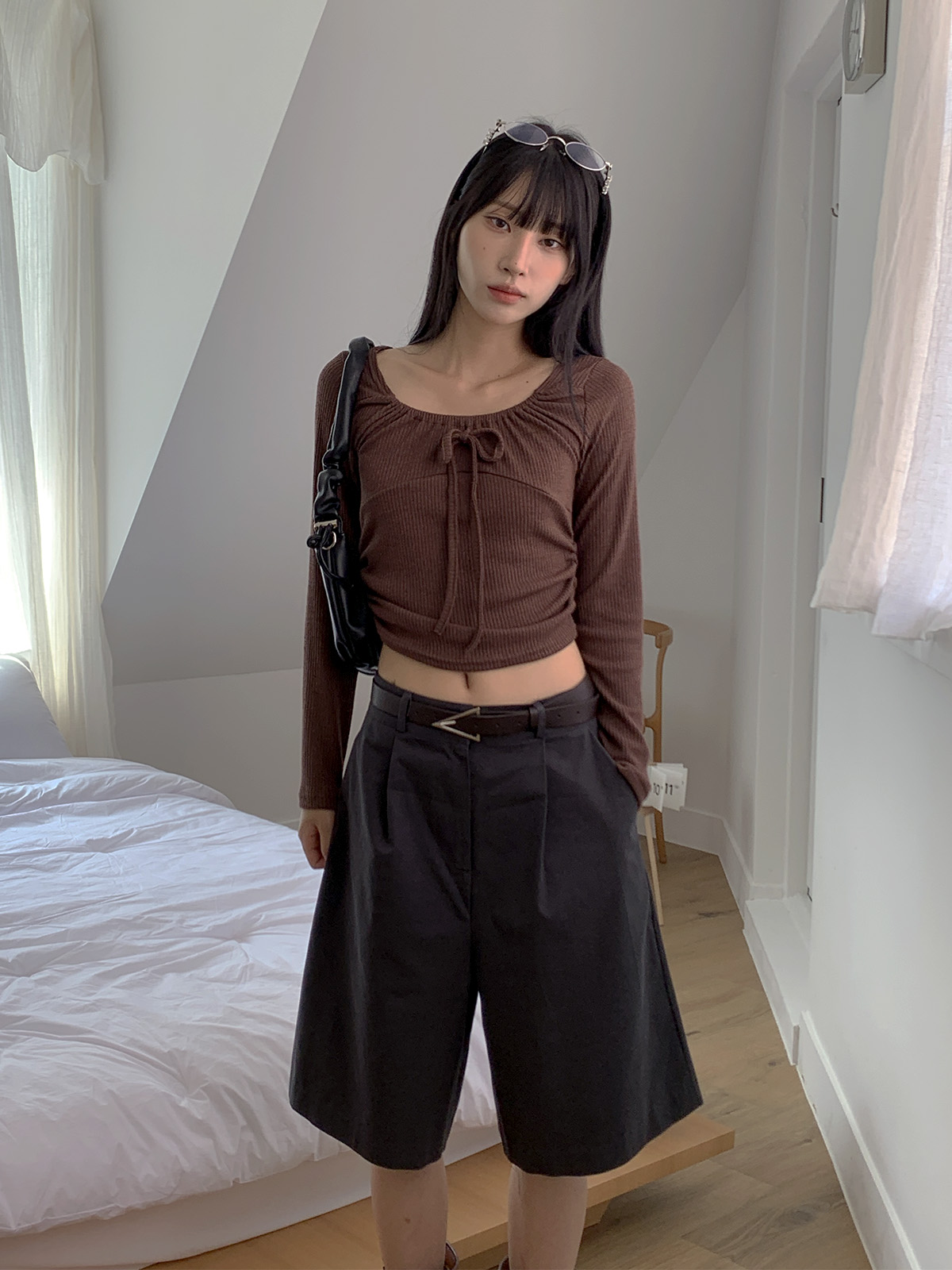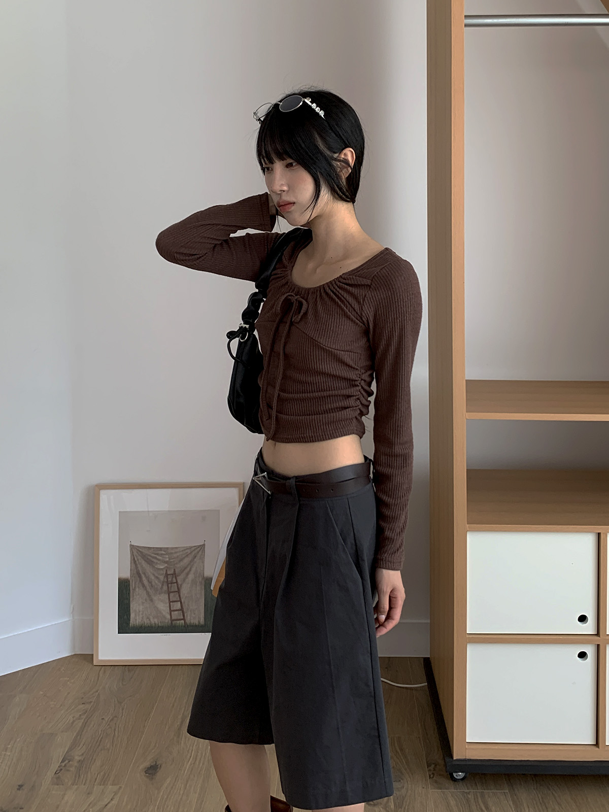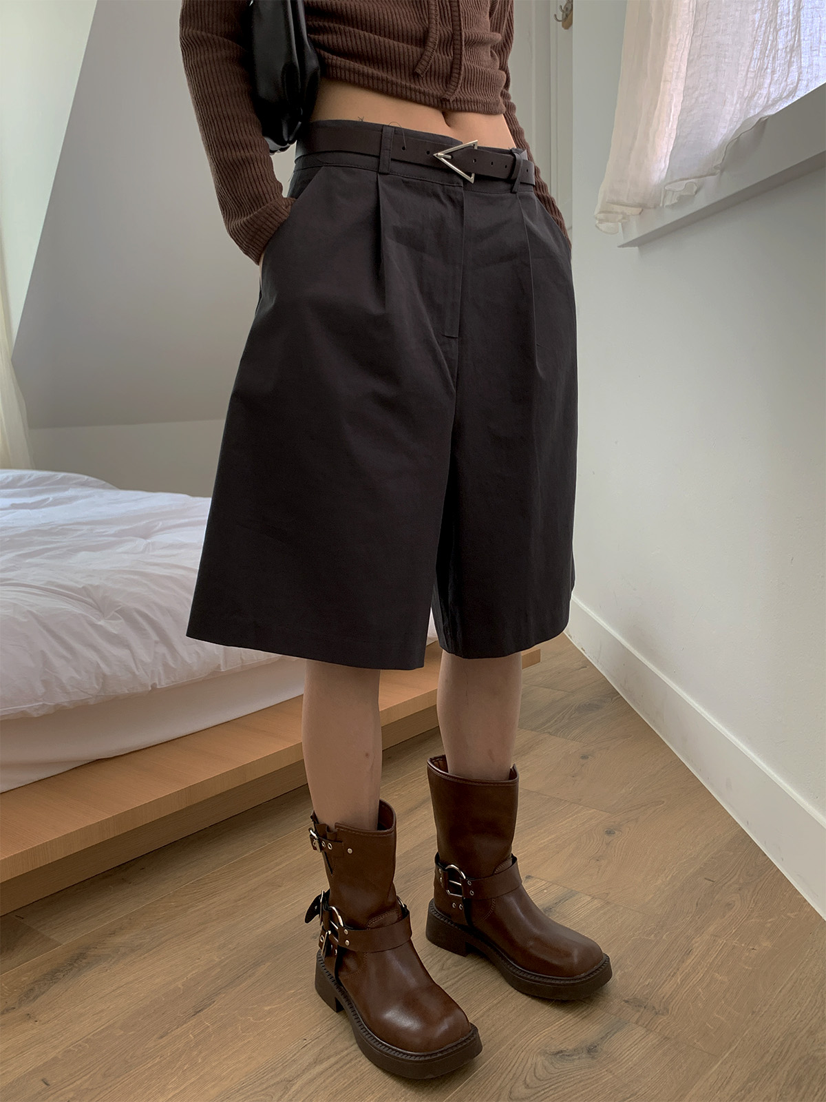 깔끔하게 떨어지는 핏과 핀턱으로 포인트를 더해 밋밋하지 않아 데일리로 입기 좋은 버뮤다 팬츠