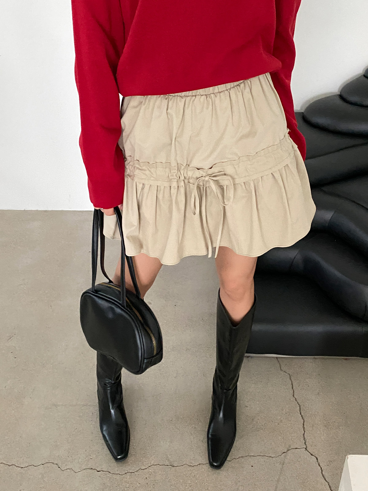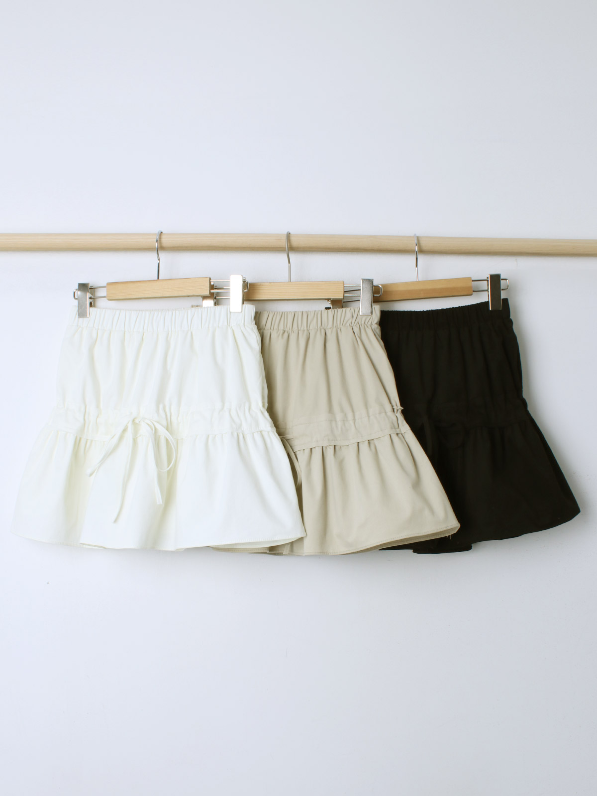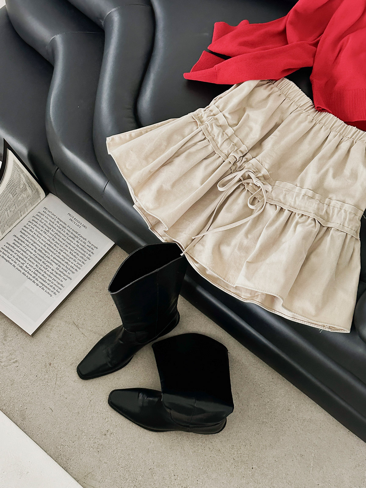 밑단 컷팅이 빈티지한 무드로 네추럴하게 디자인 되어 있어 힙한 무드를 연출 할 수 있는 스트랩 포인트 밴딩 미니스커트