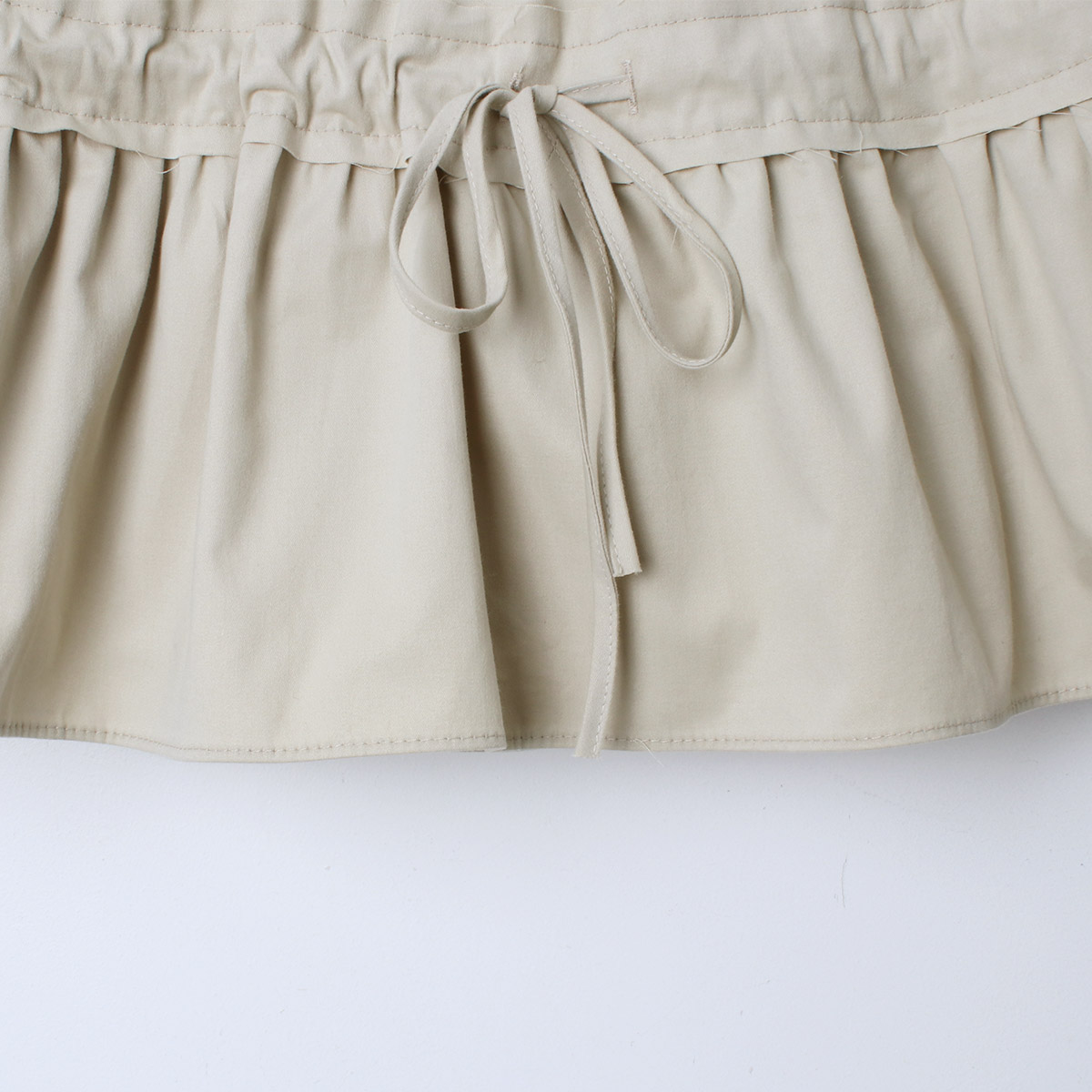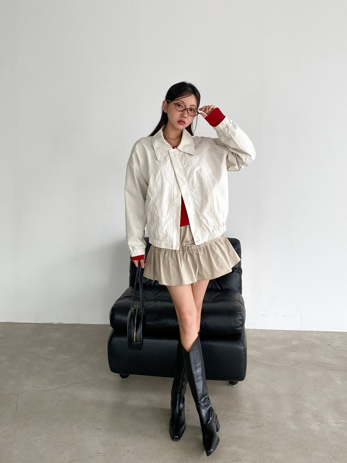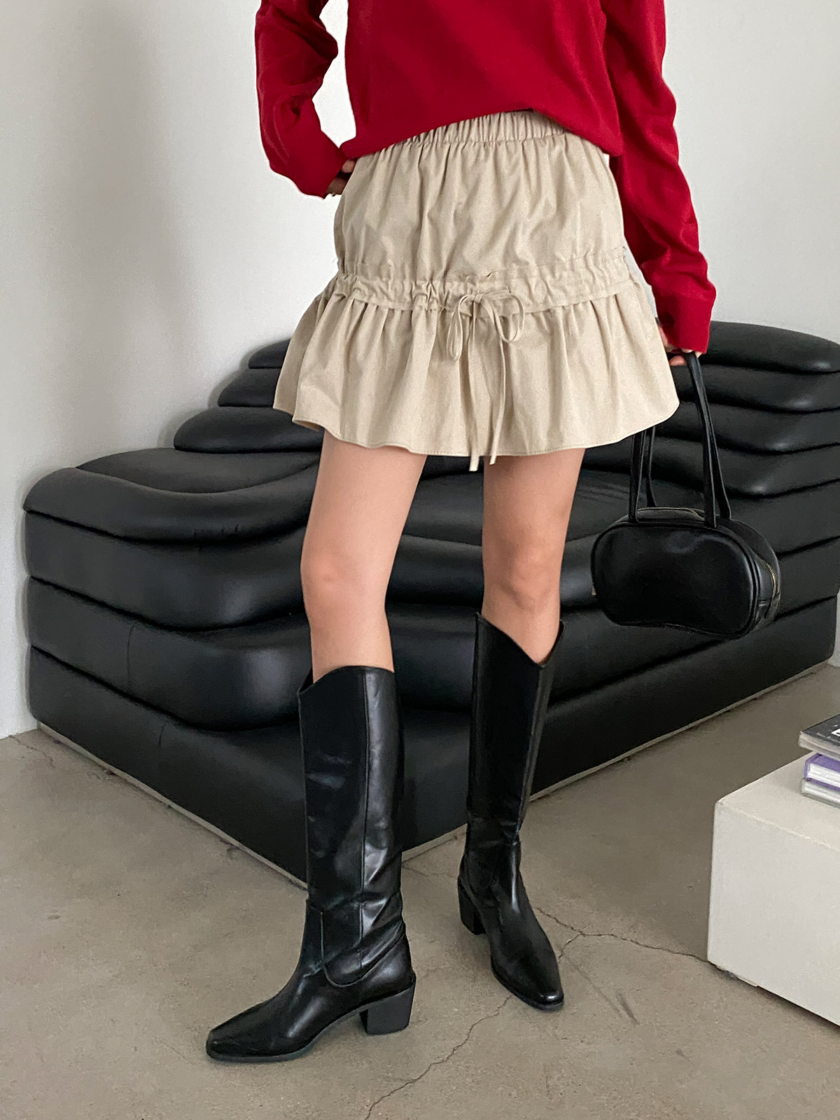 밑단 컷팅이 빈티지한 무드로 네추럴하게 디자인 되어 있어 힙한 무드를 연출 할 수 있는 스트랩 포인트 밴딩 미니스커트