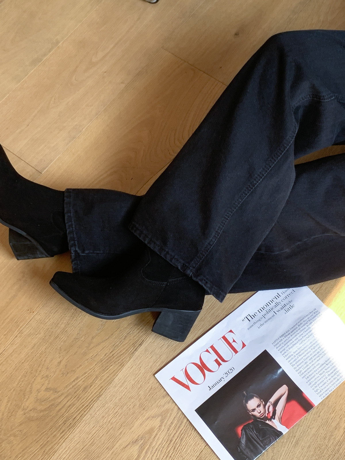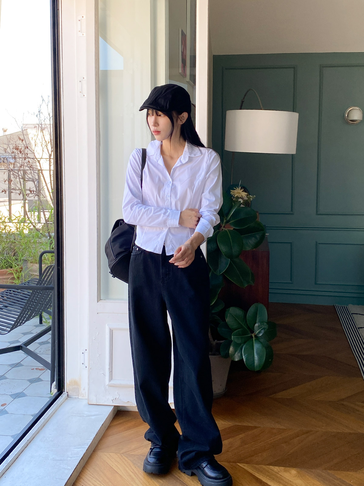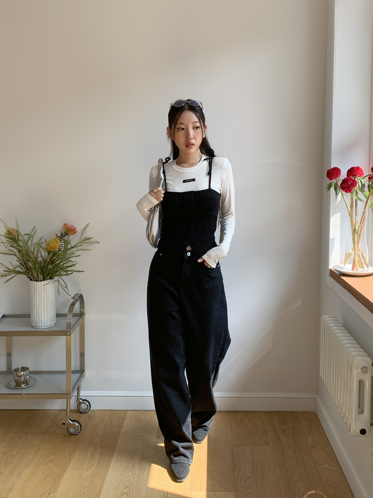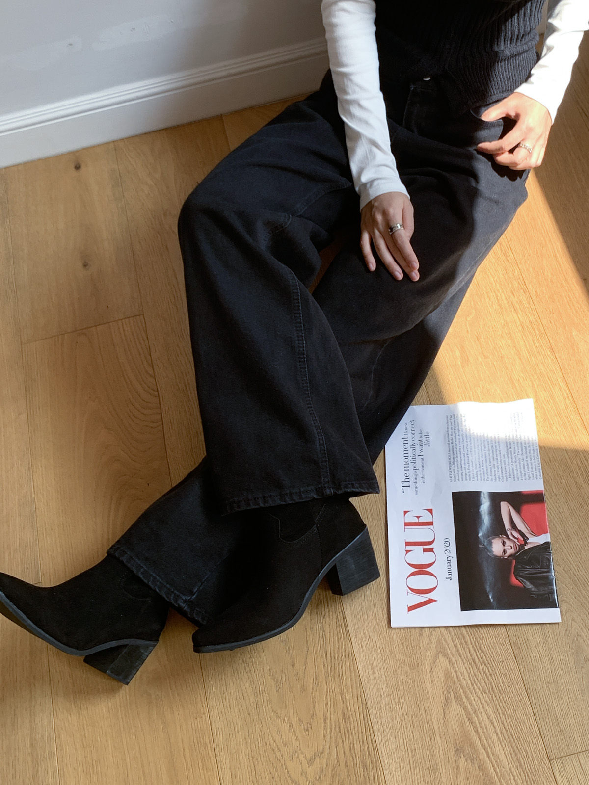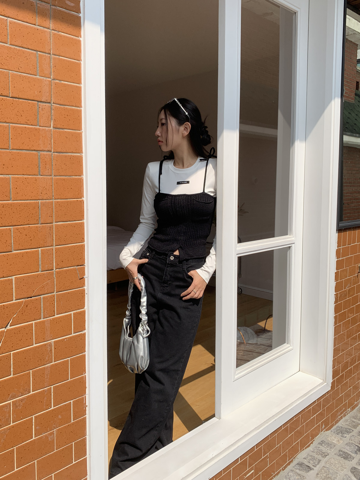 블랙의 일자핏으로 된 데님팬츠로 가장 손이 많이가고 다양한 코디가 가능하여