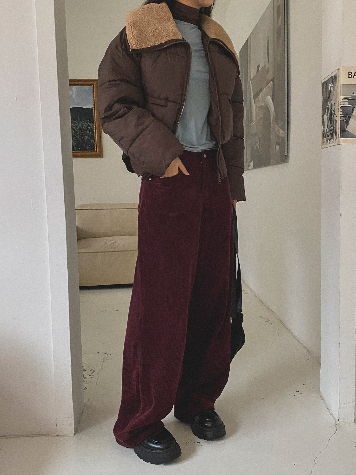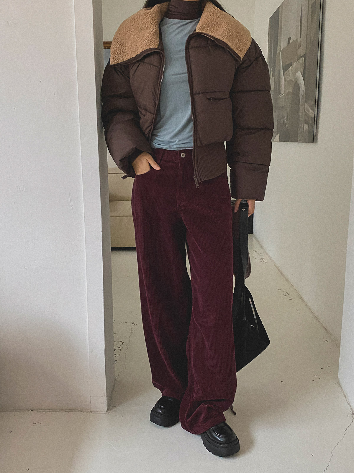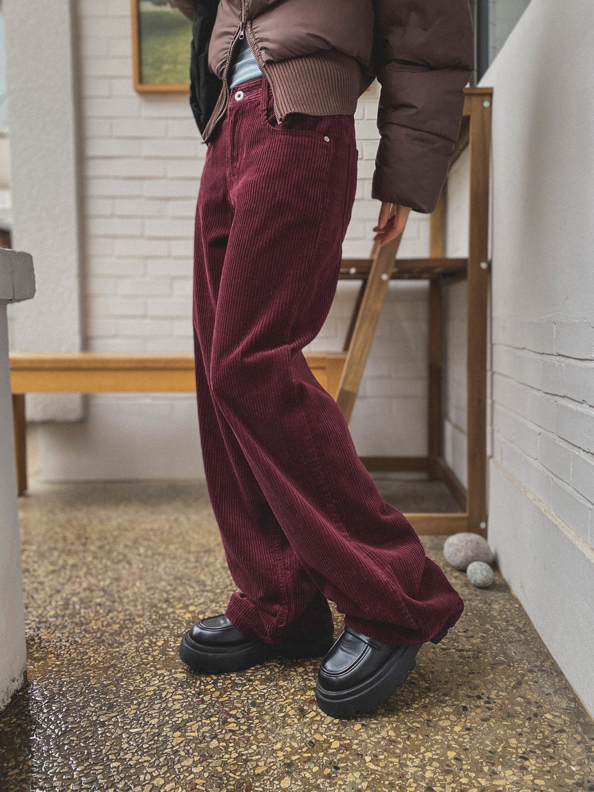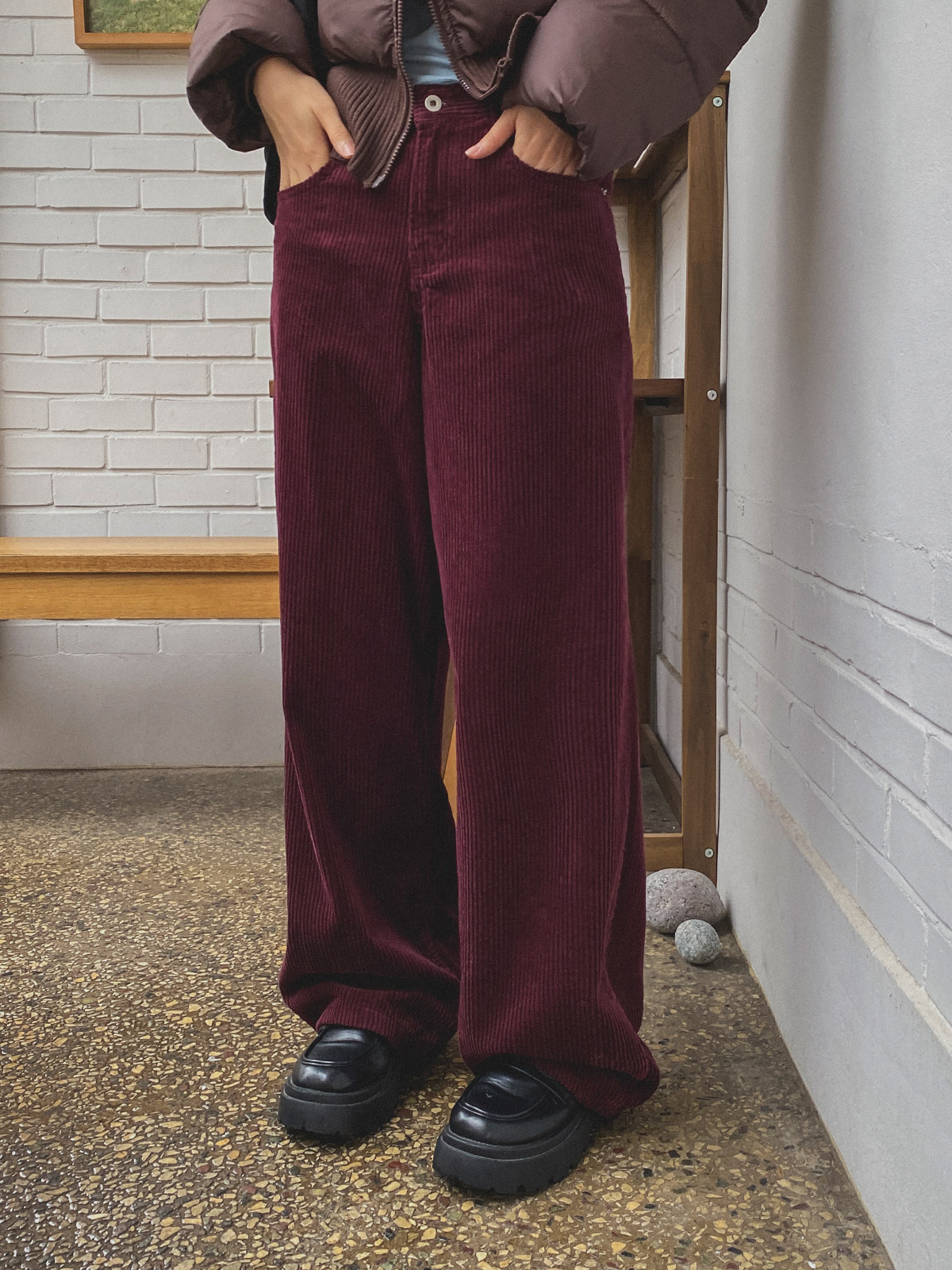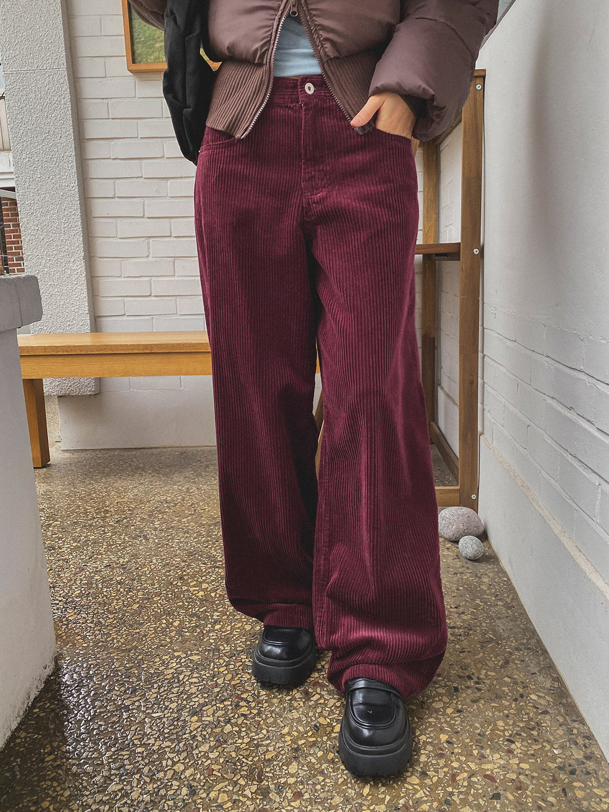 군더더기 없는 디자인으로 데일리룩으로 코디하기 좋은 골덴 와이드 팬츠 추천해드려요~!