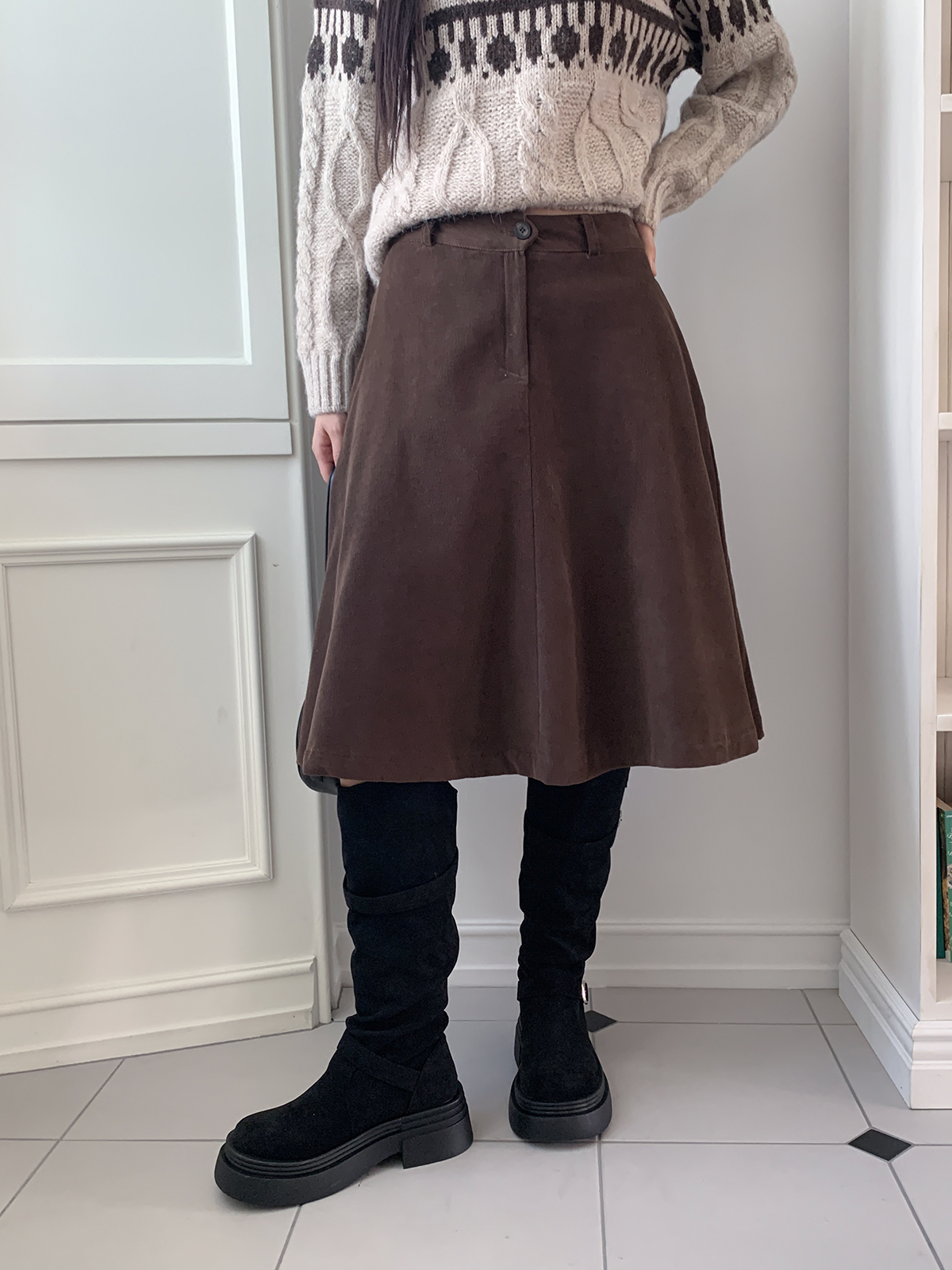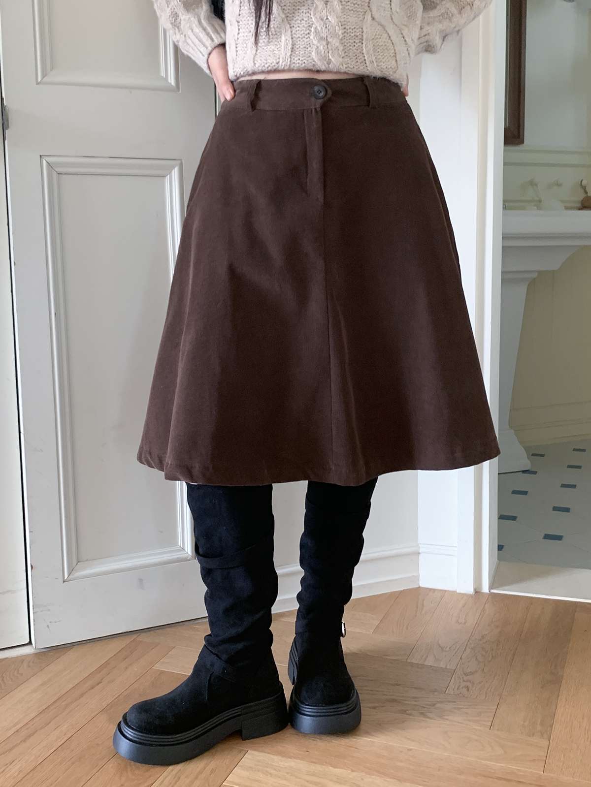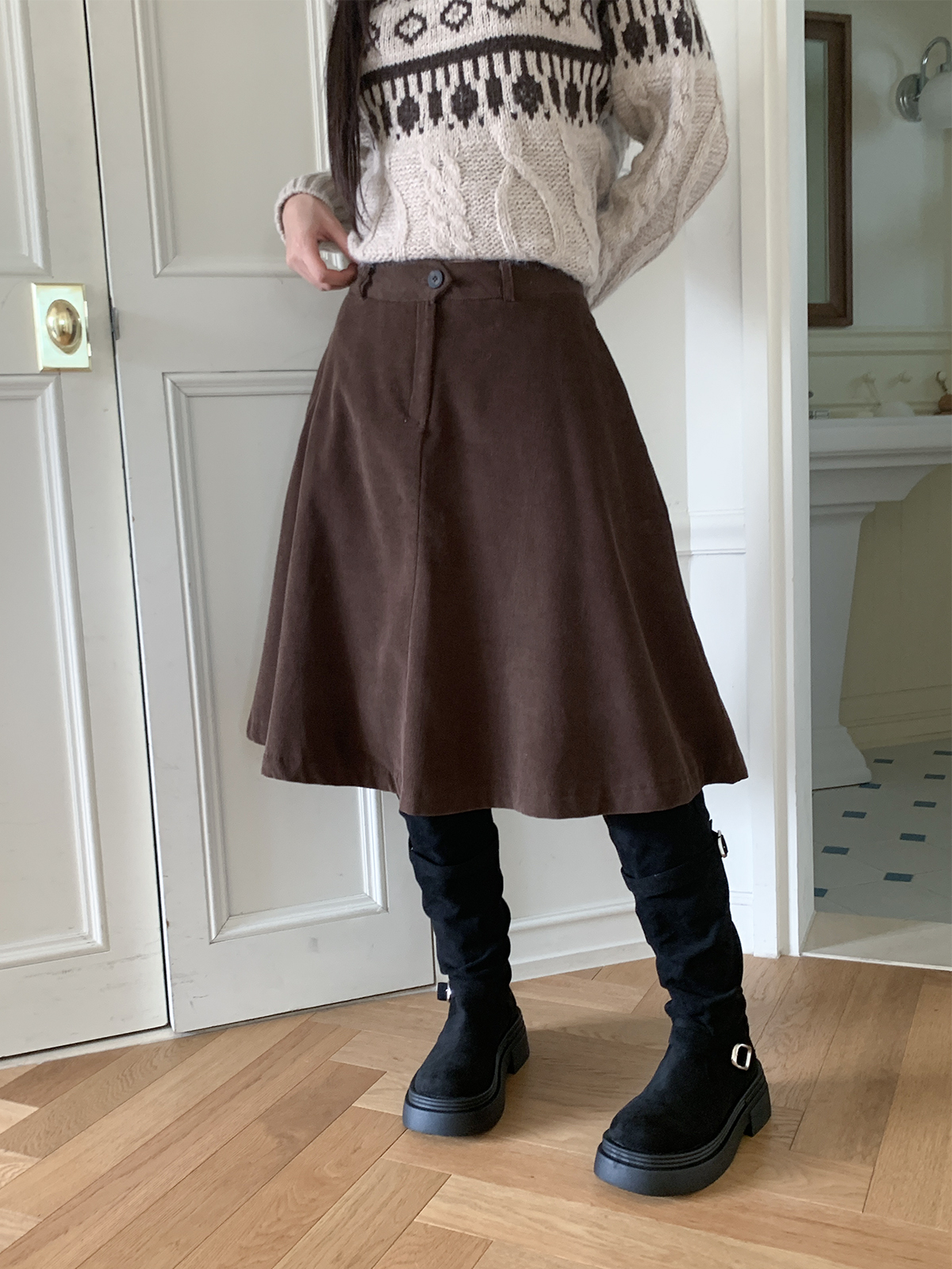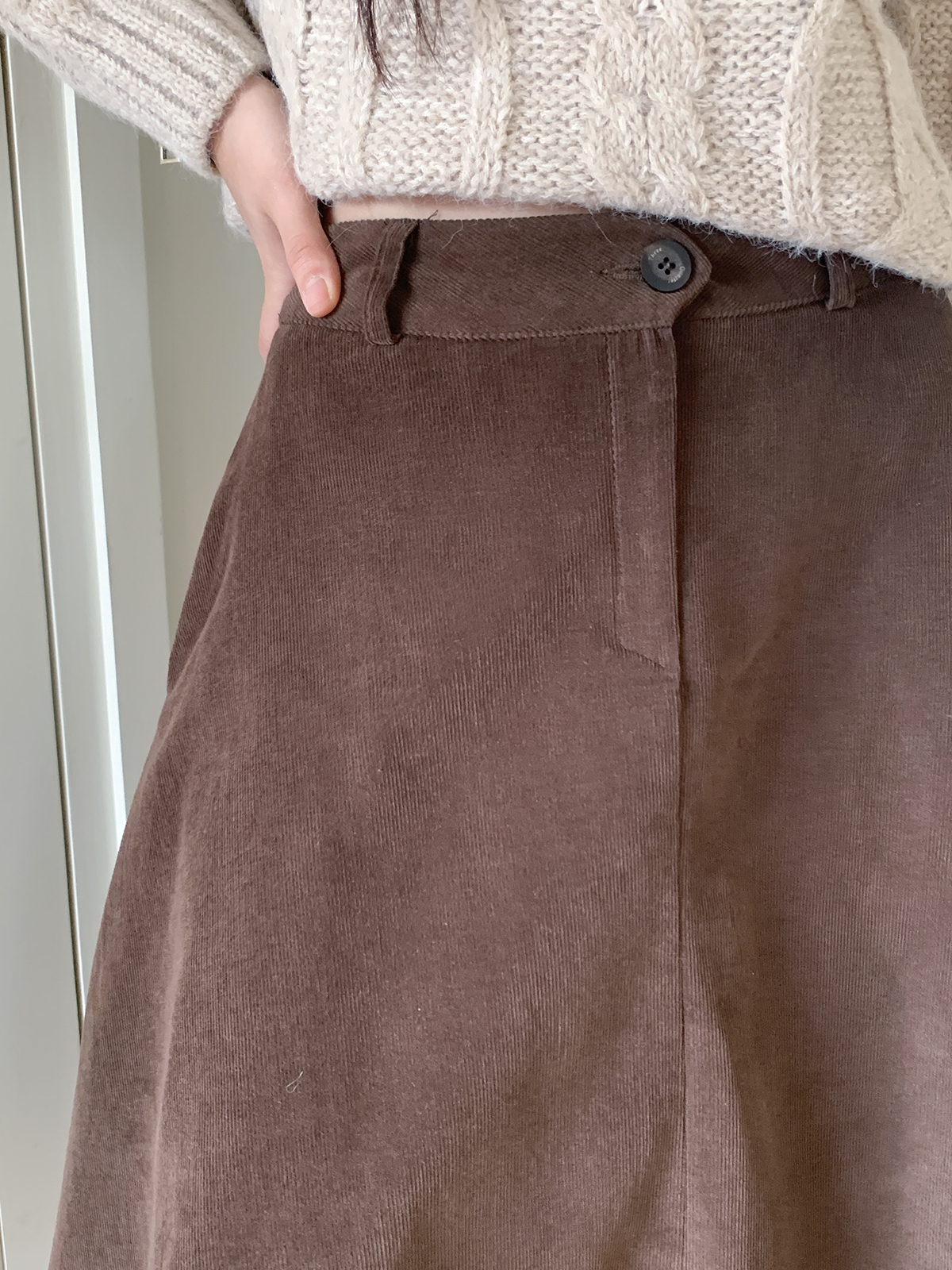 코듀로이 소재로 따뜻하게 입기 좋은 미디 스커트 추천해드려요~!