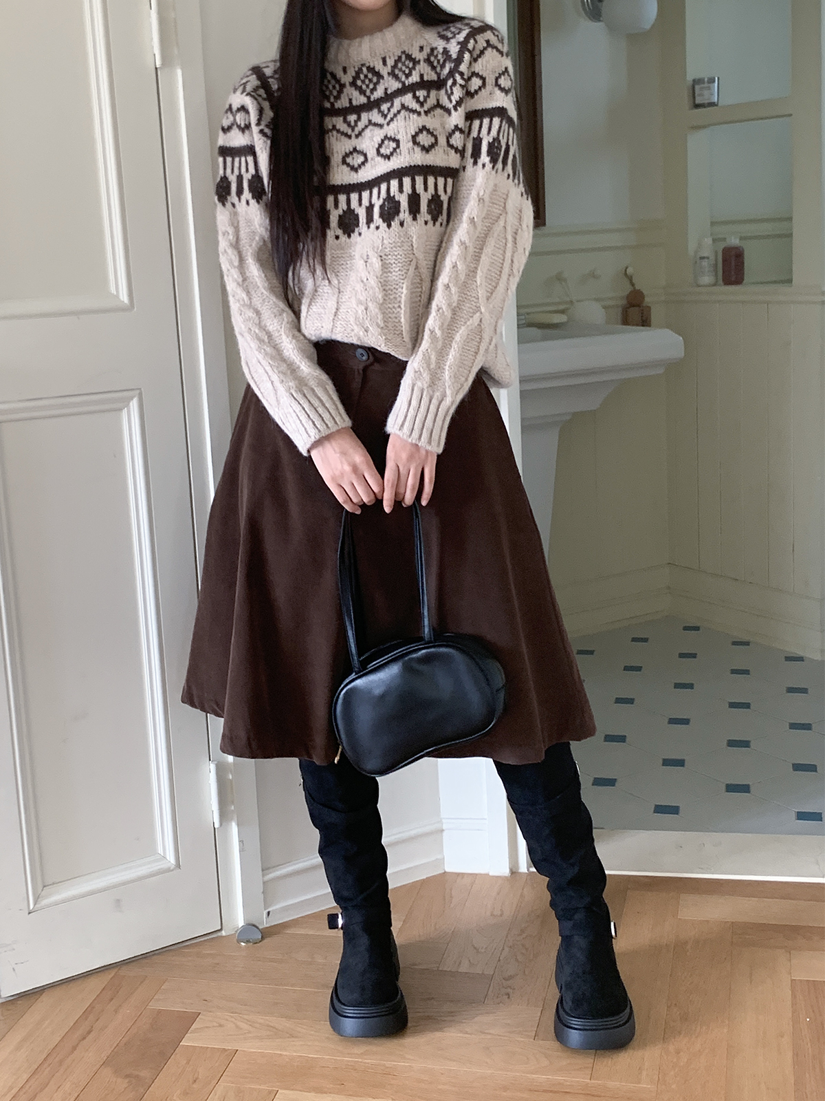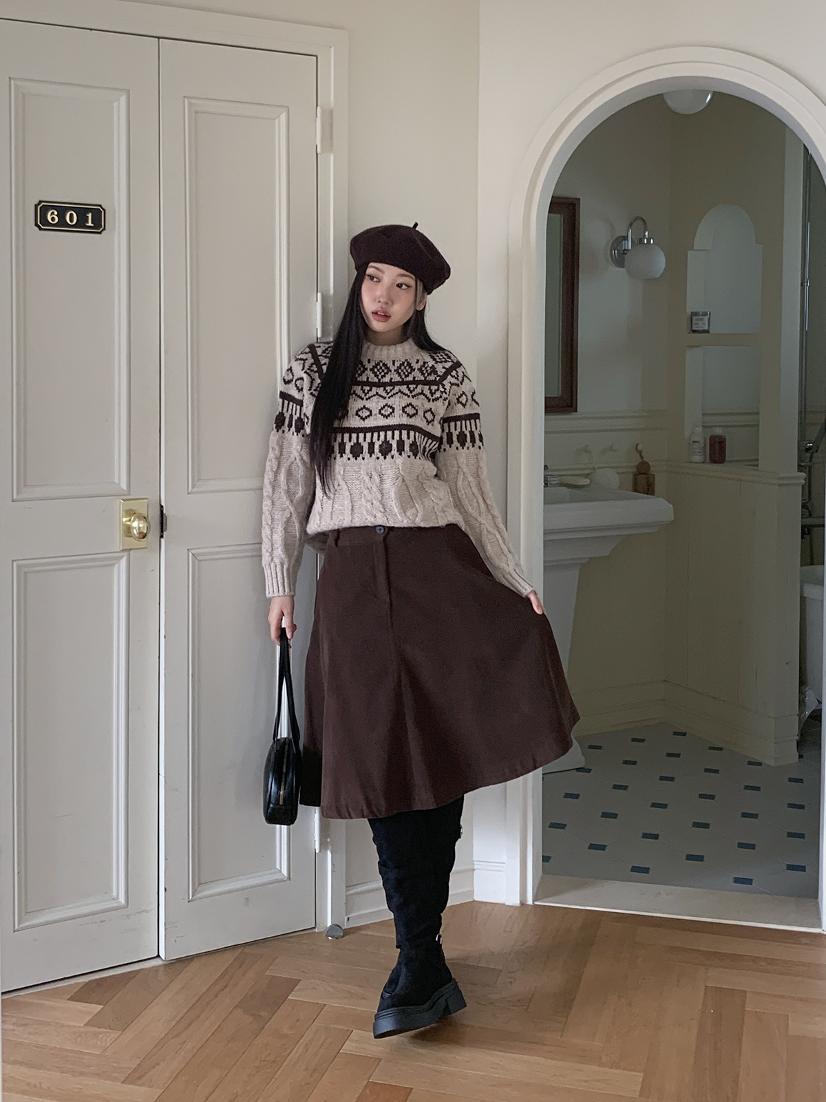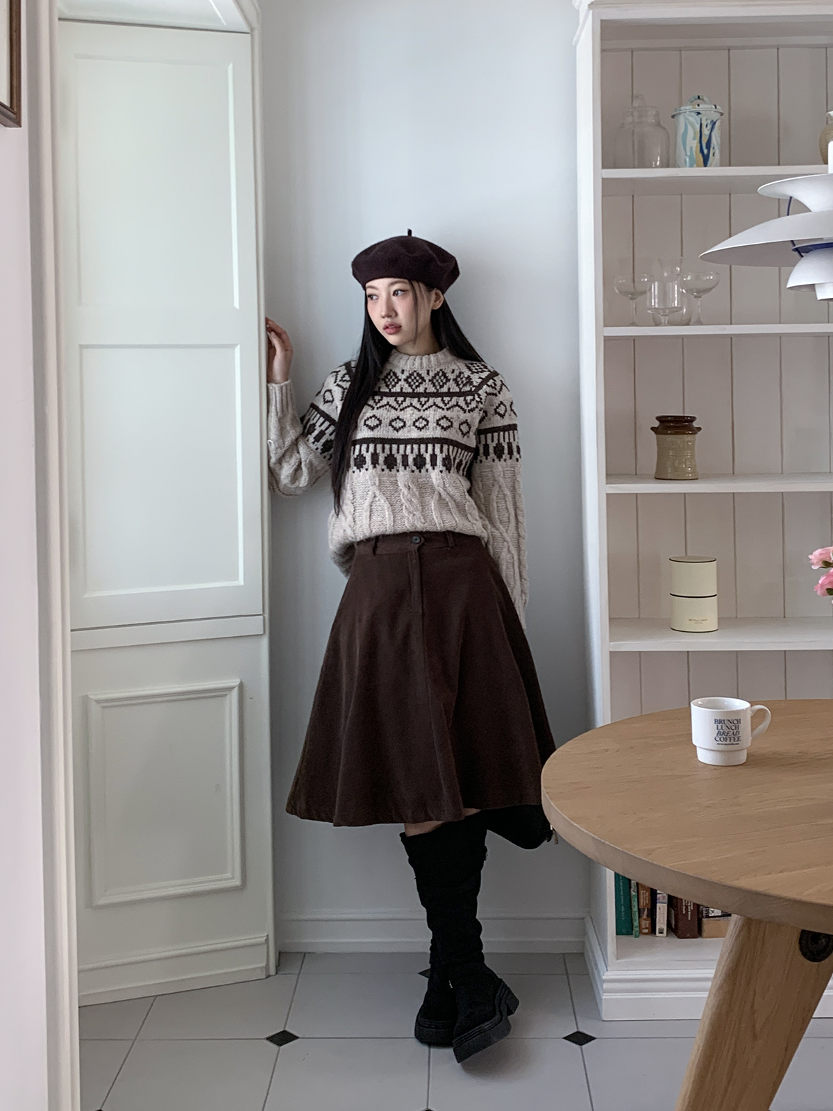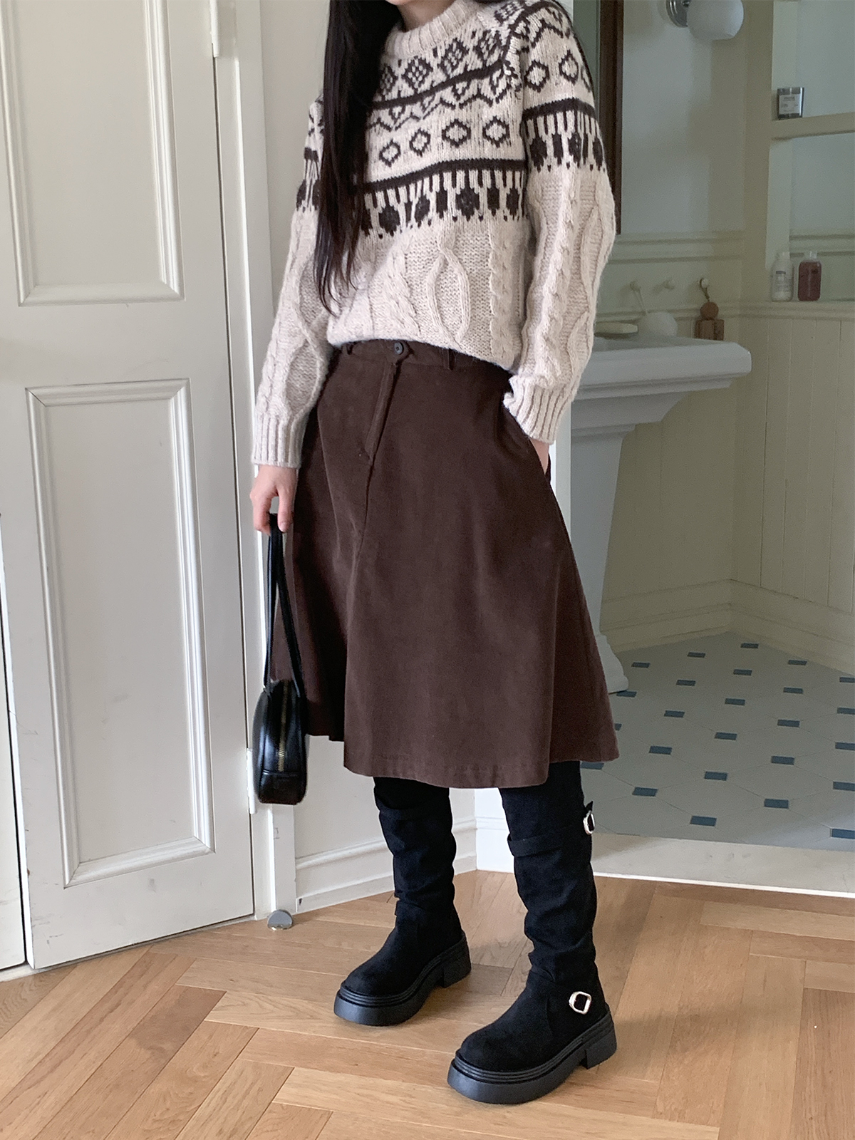 코듀로이 소재로 따뜻하게 입기 좋은 미디 스커트 추천해드려요~!