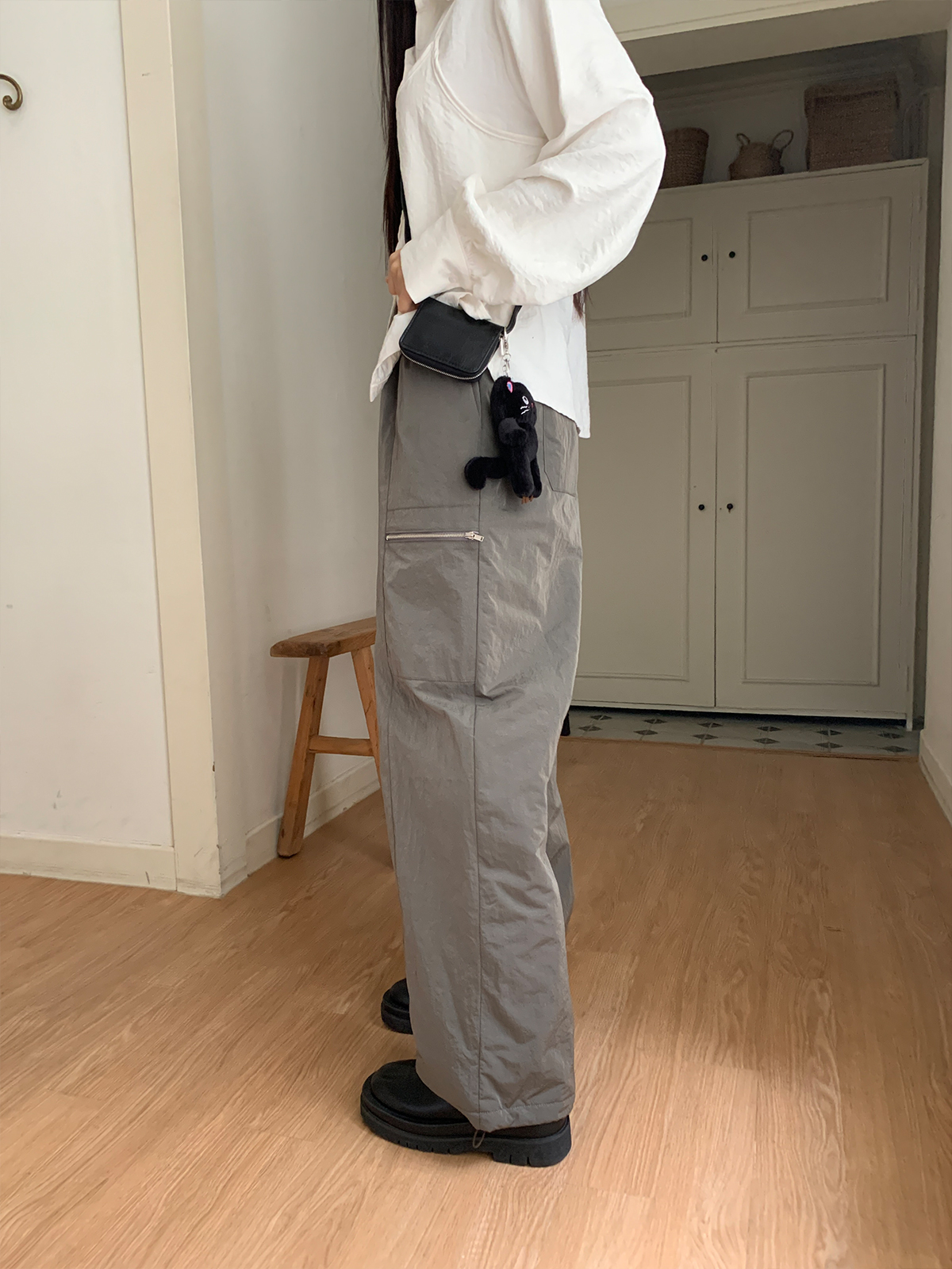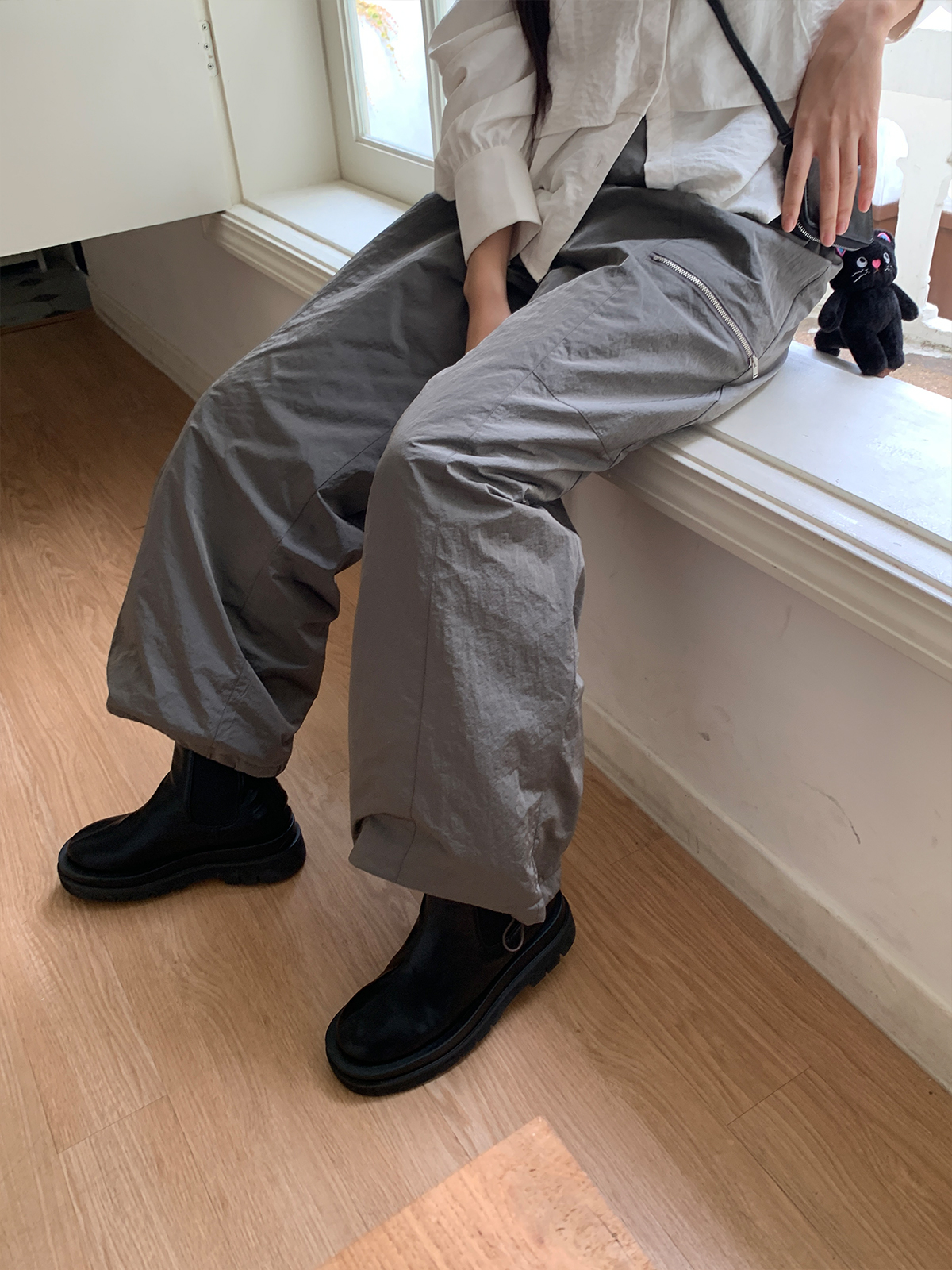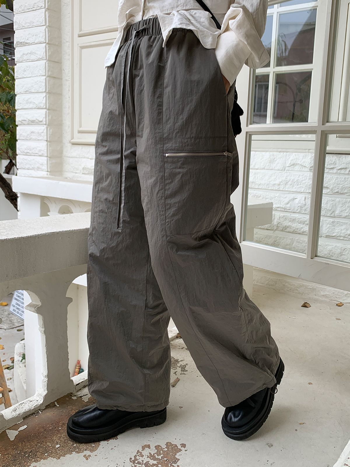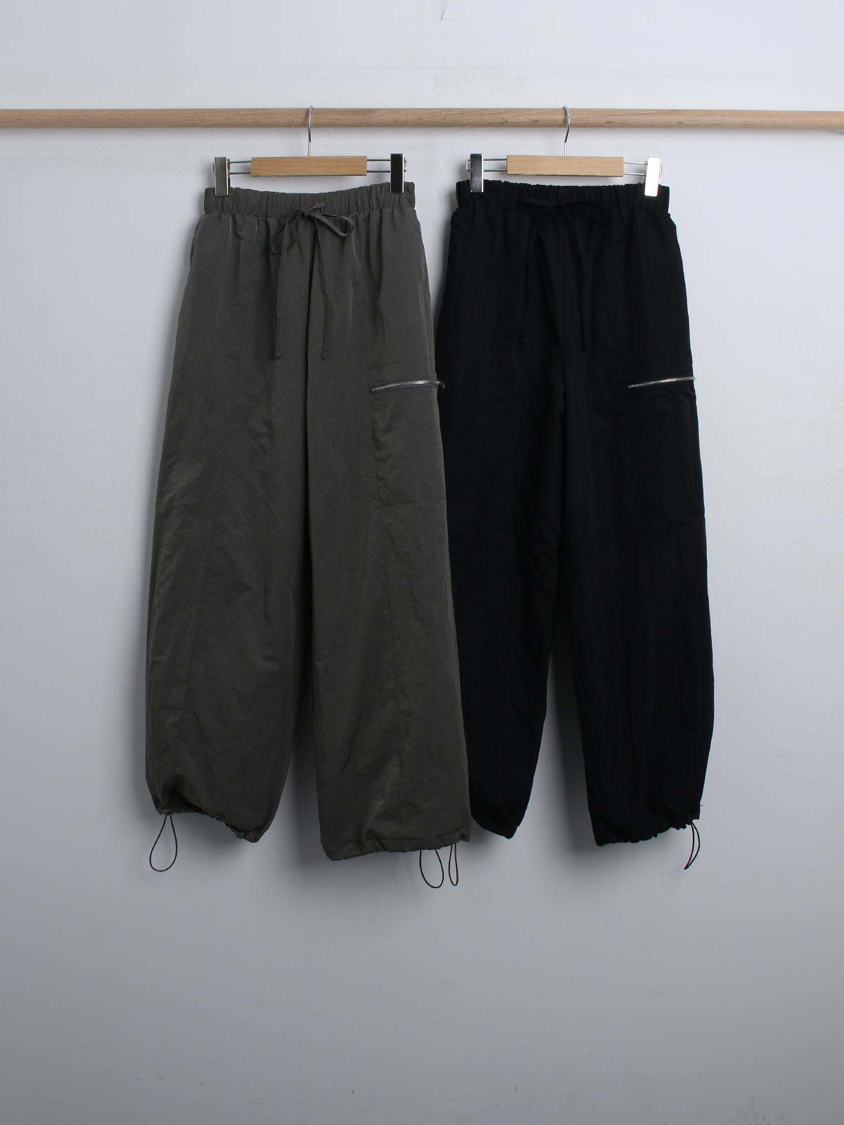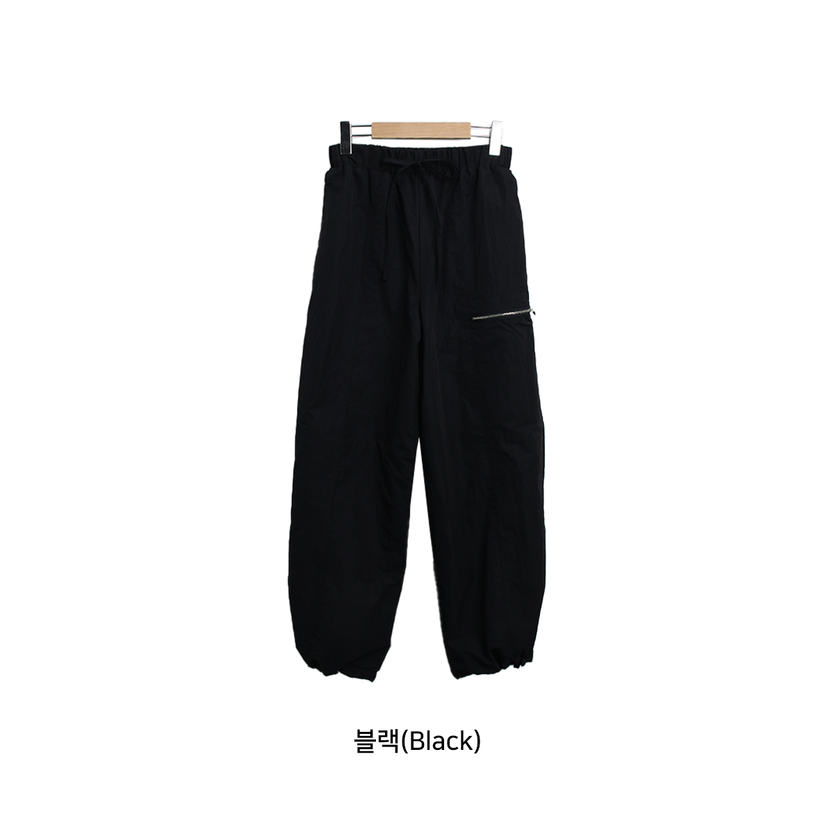 지퍼 디테일이 포인트가 되는 패딩 와이드 밴딩 팬츠