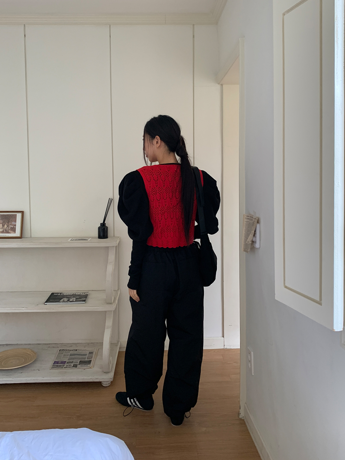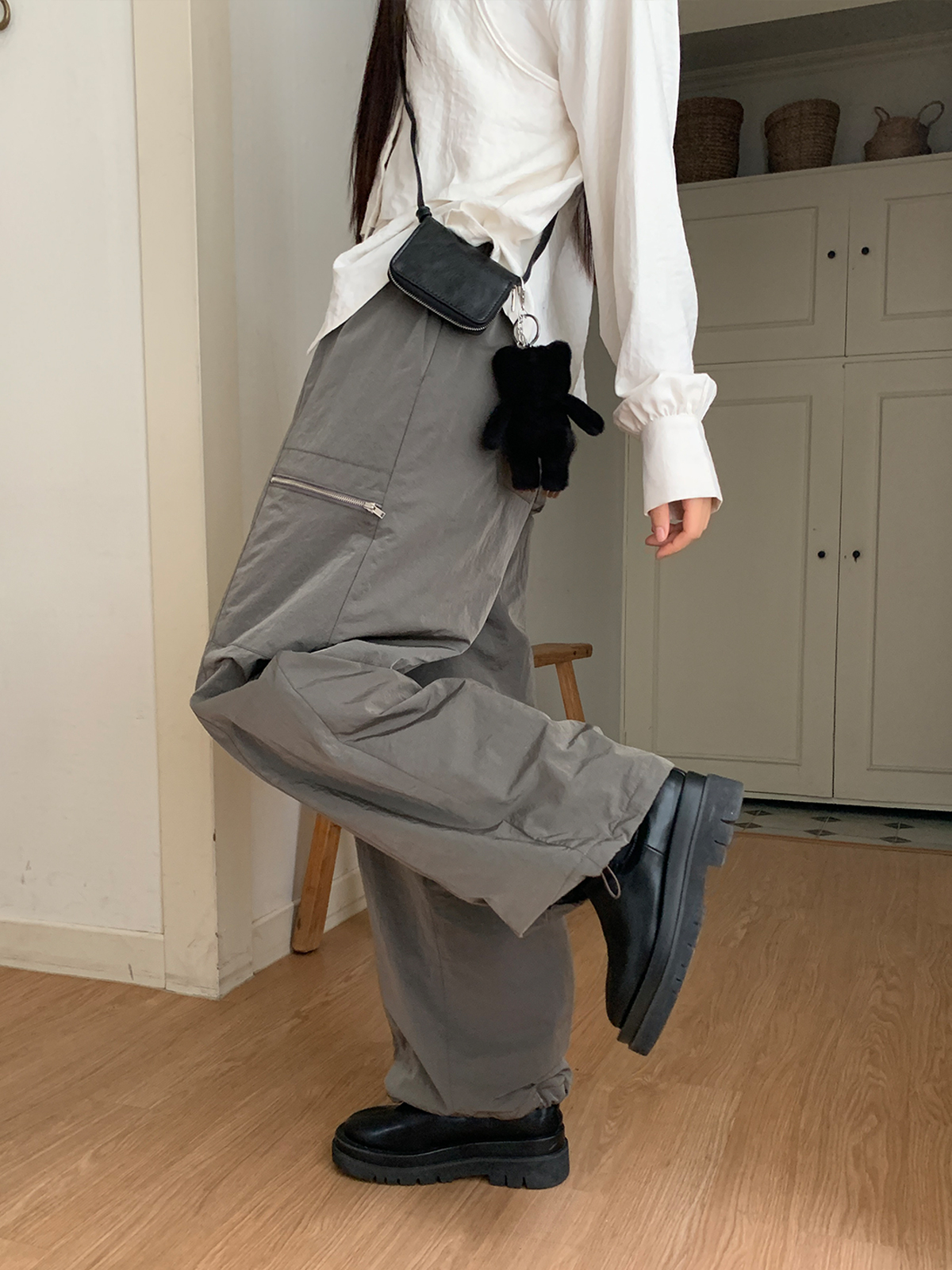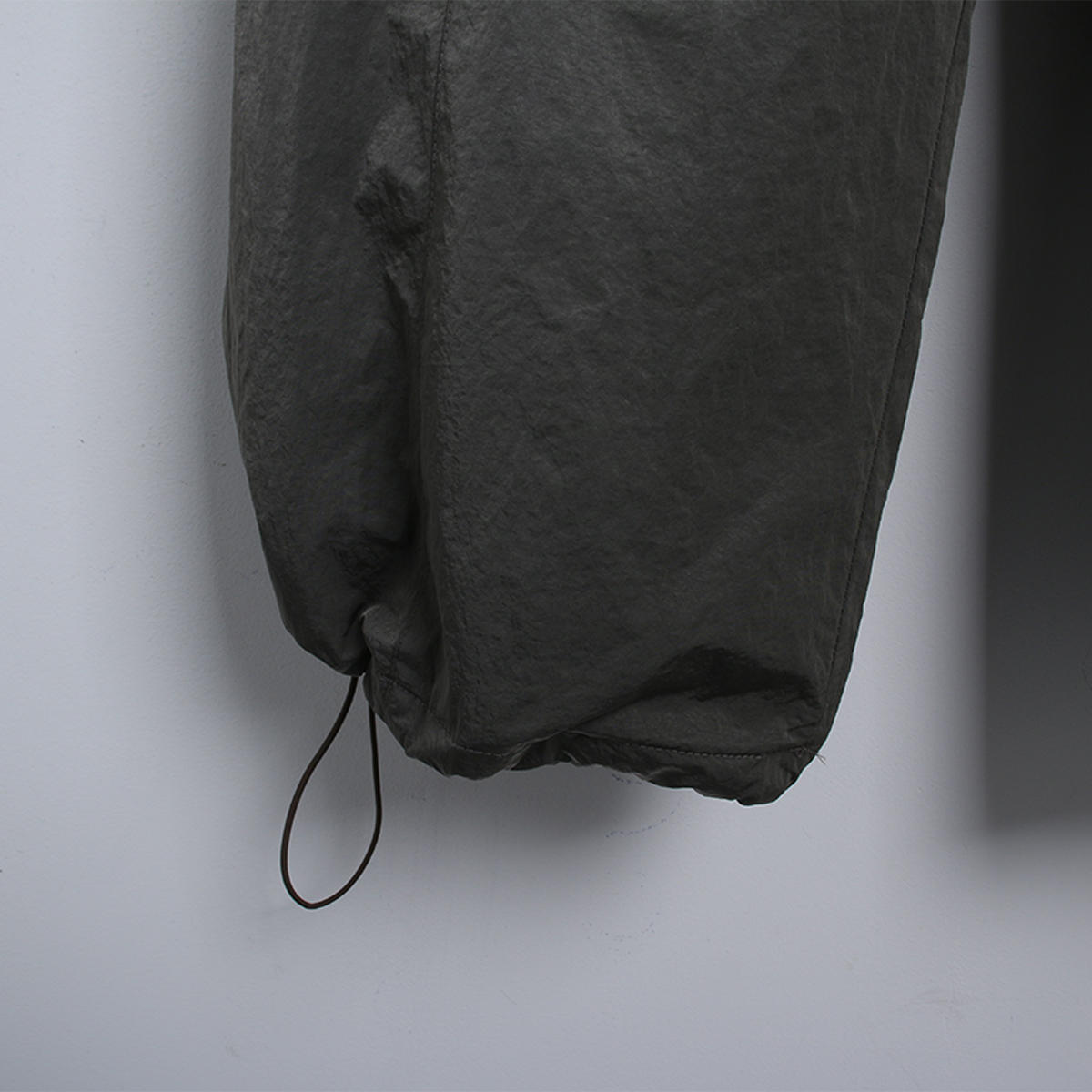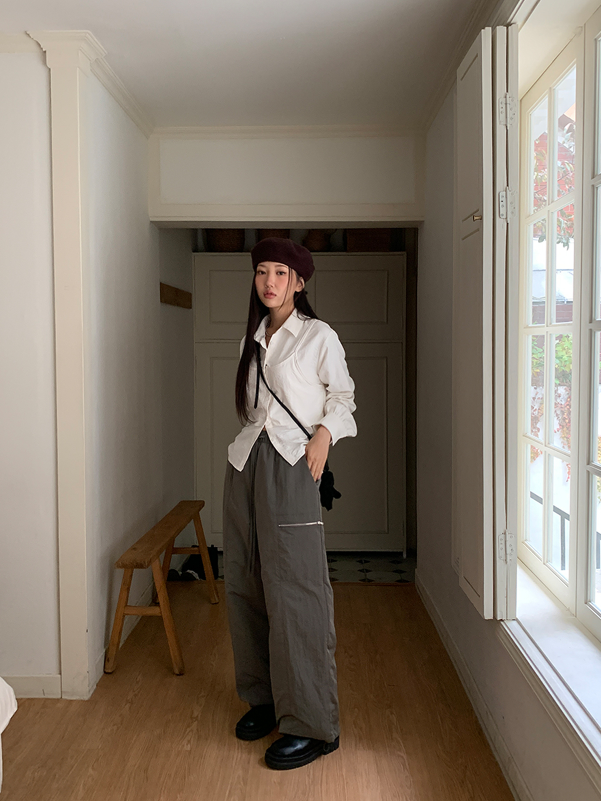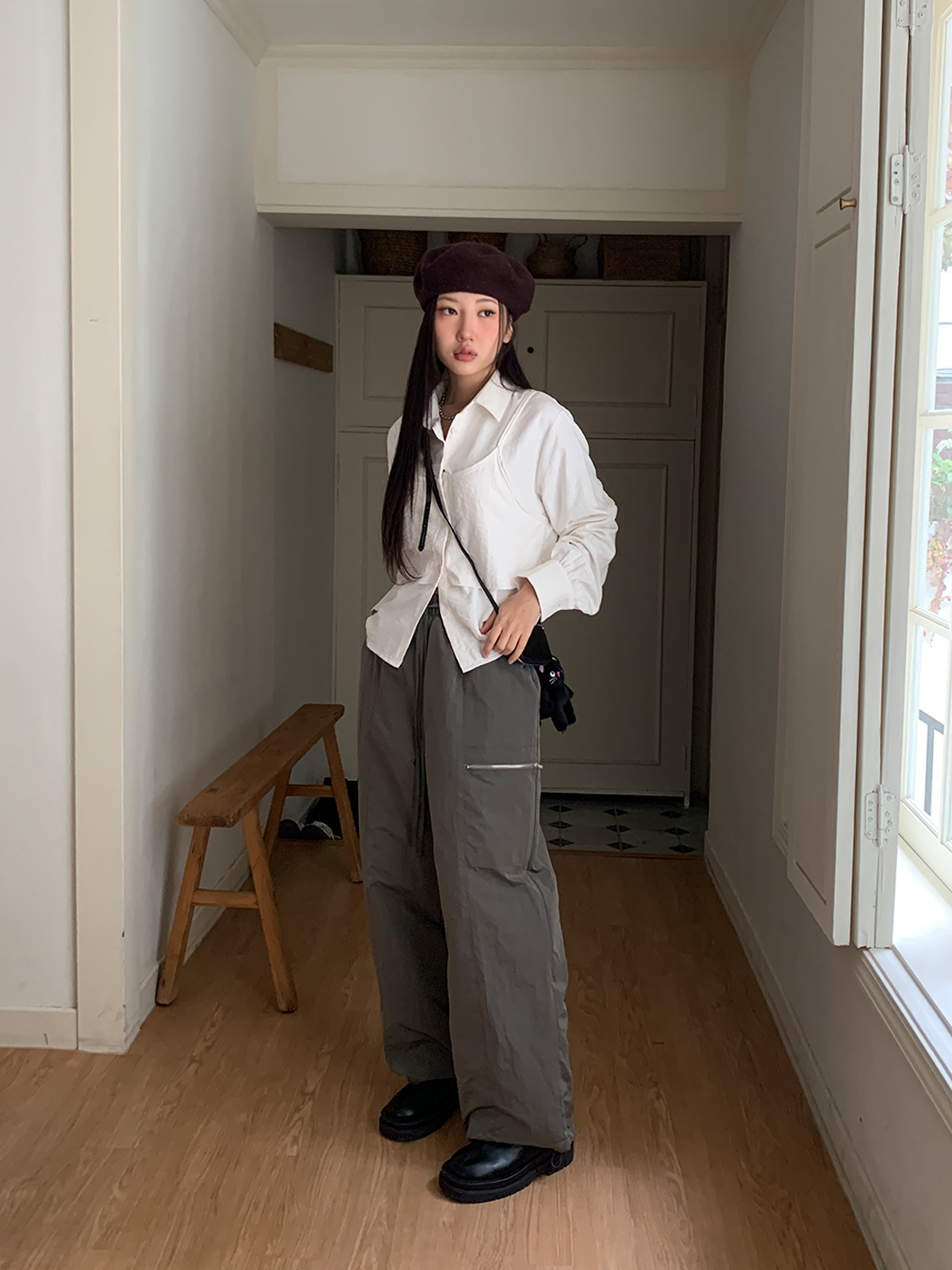 지퍼 디테일이 포인트가 되는 패딩 와이드 밴딩 팬츠