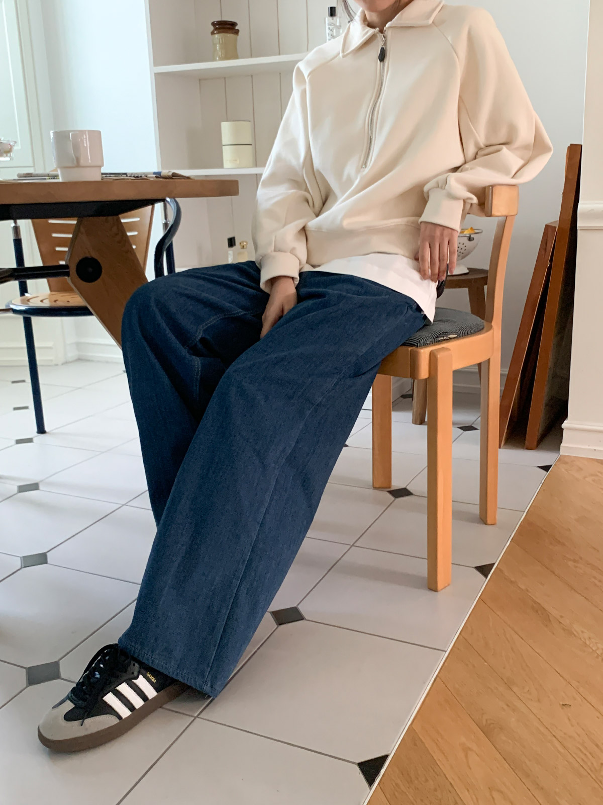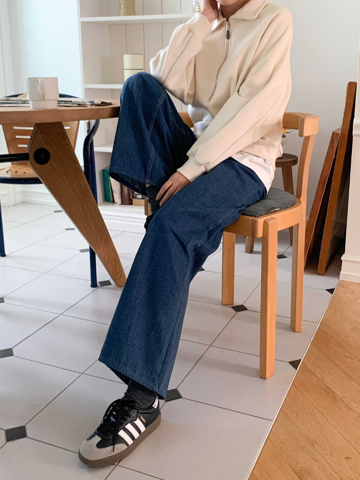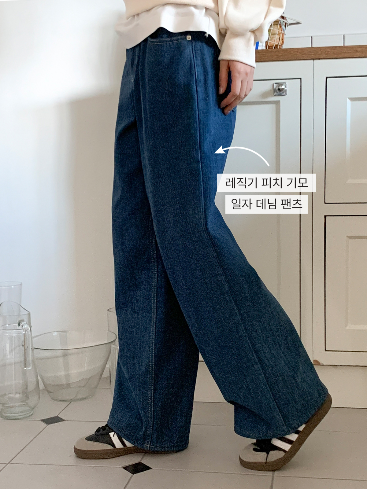 밍크 피치 기모가 있는 데직기 일자 데님 팬츠