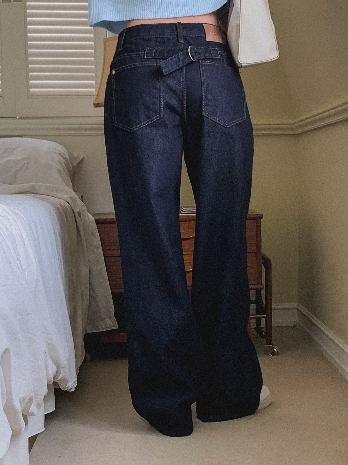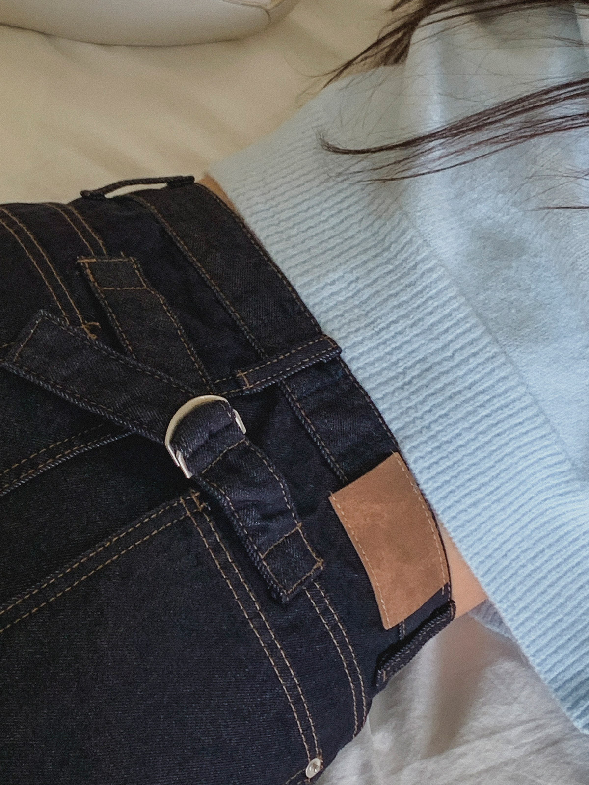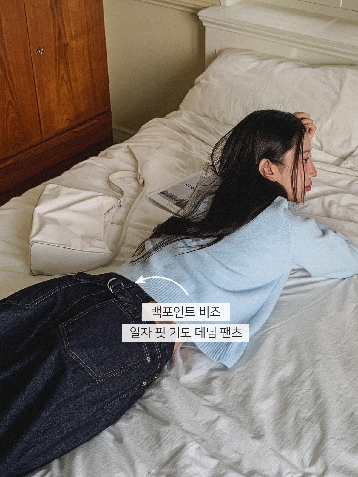 심플한 백 포인트 비죠 일자 기모 데님