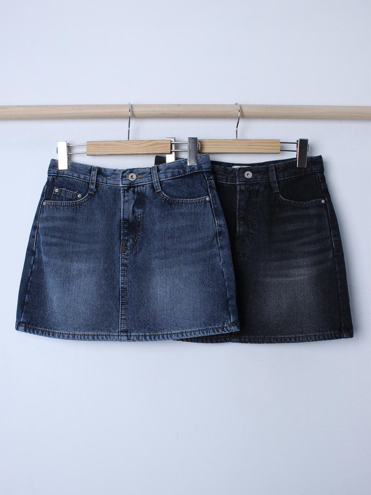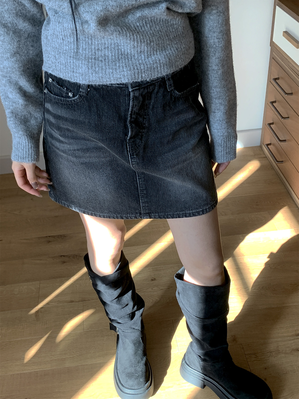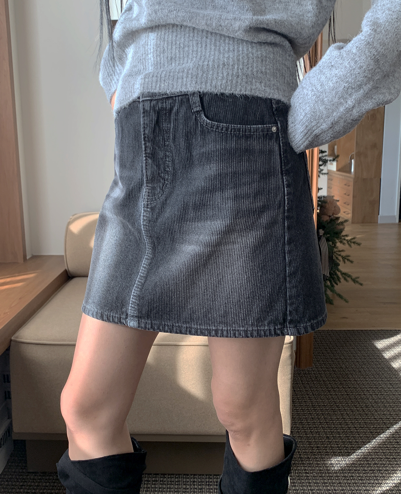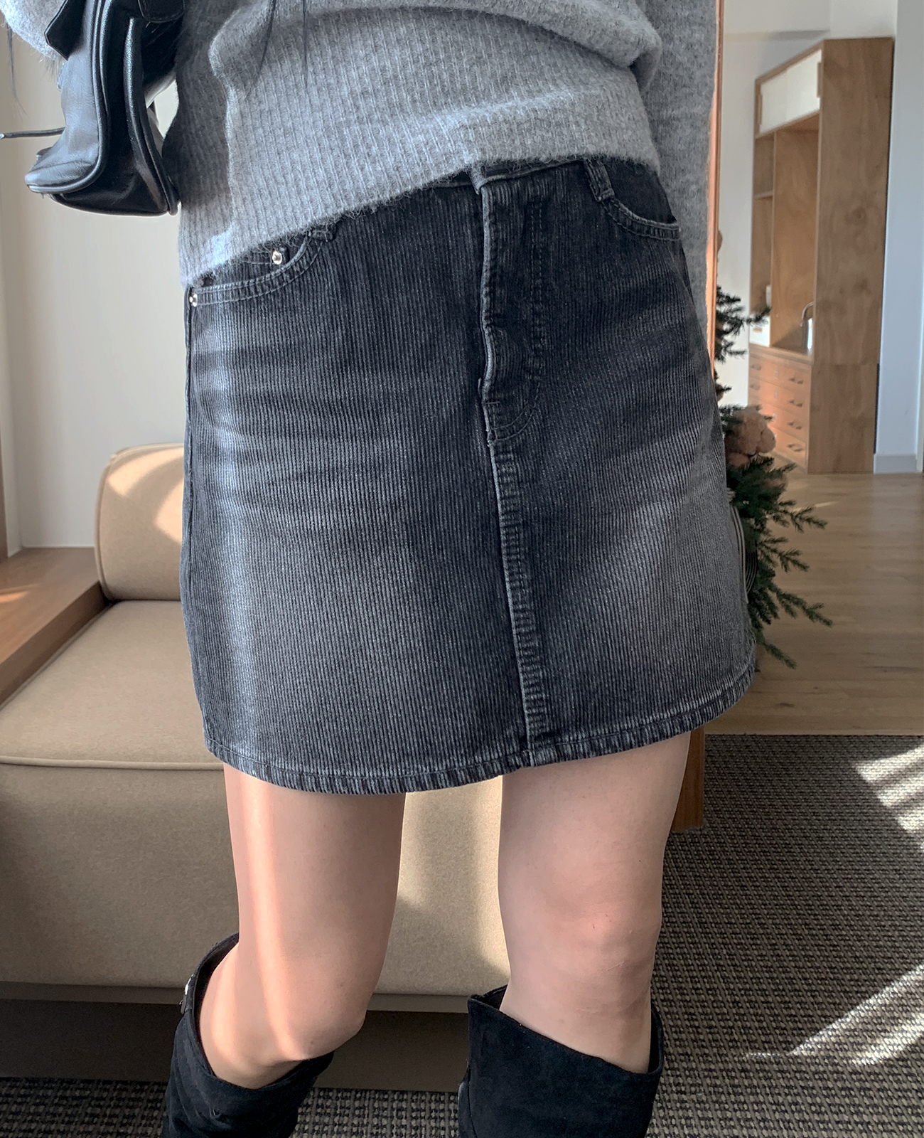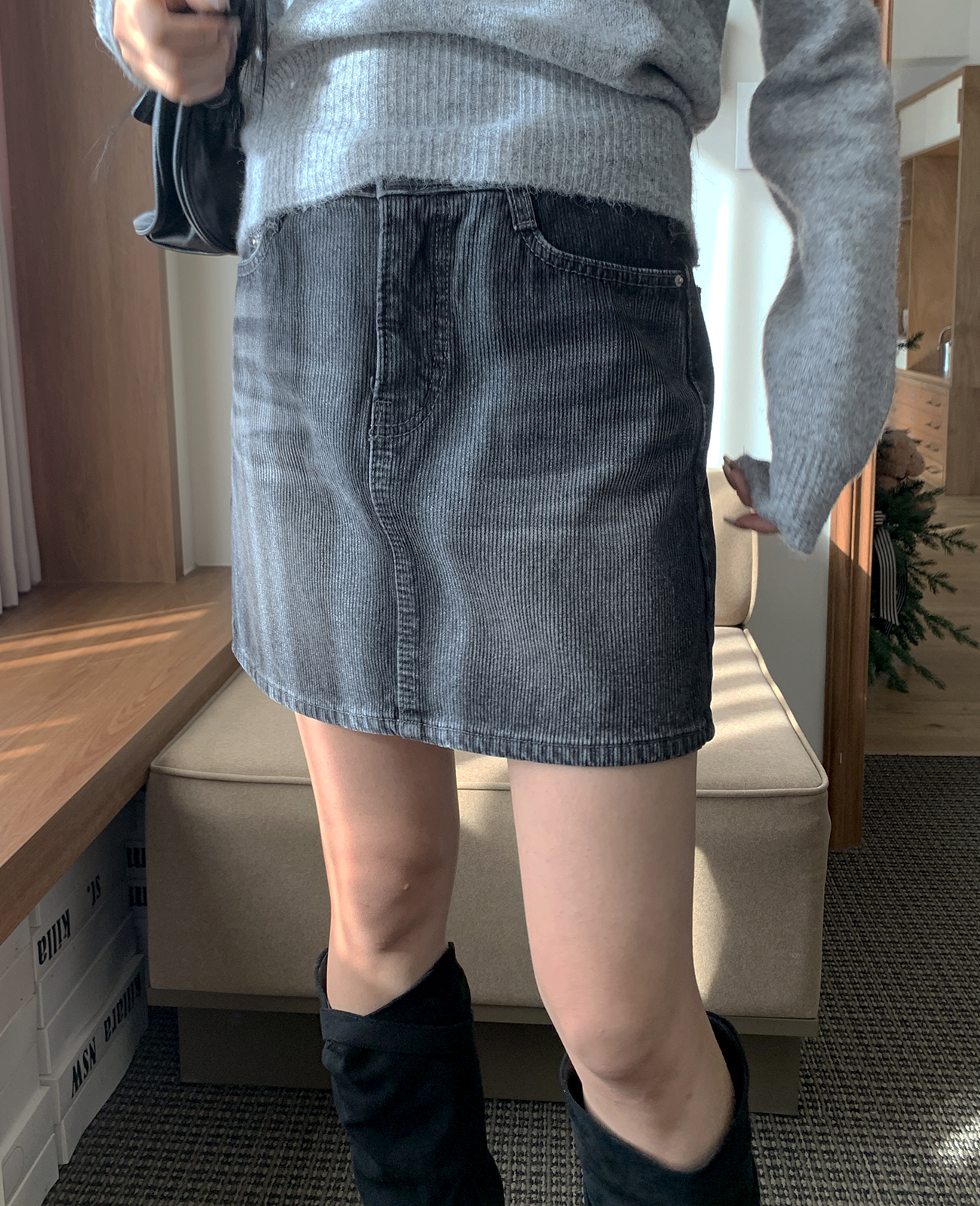 골덴 느낌의 데님 소재로 밋밋하지 않게 포인트가 되는 기모 미니 스커트