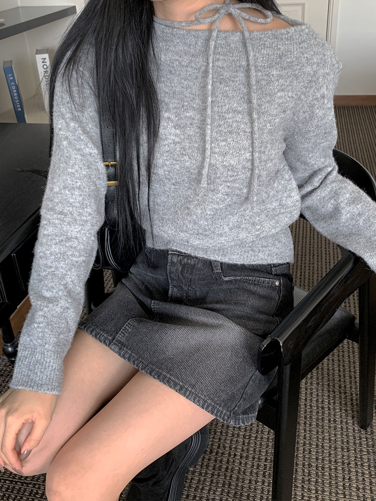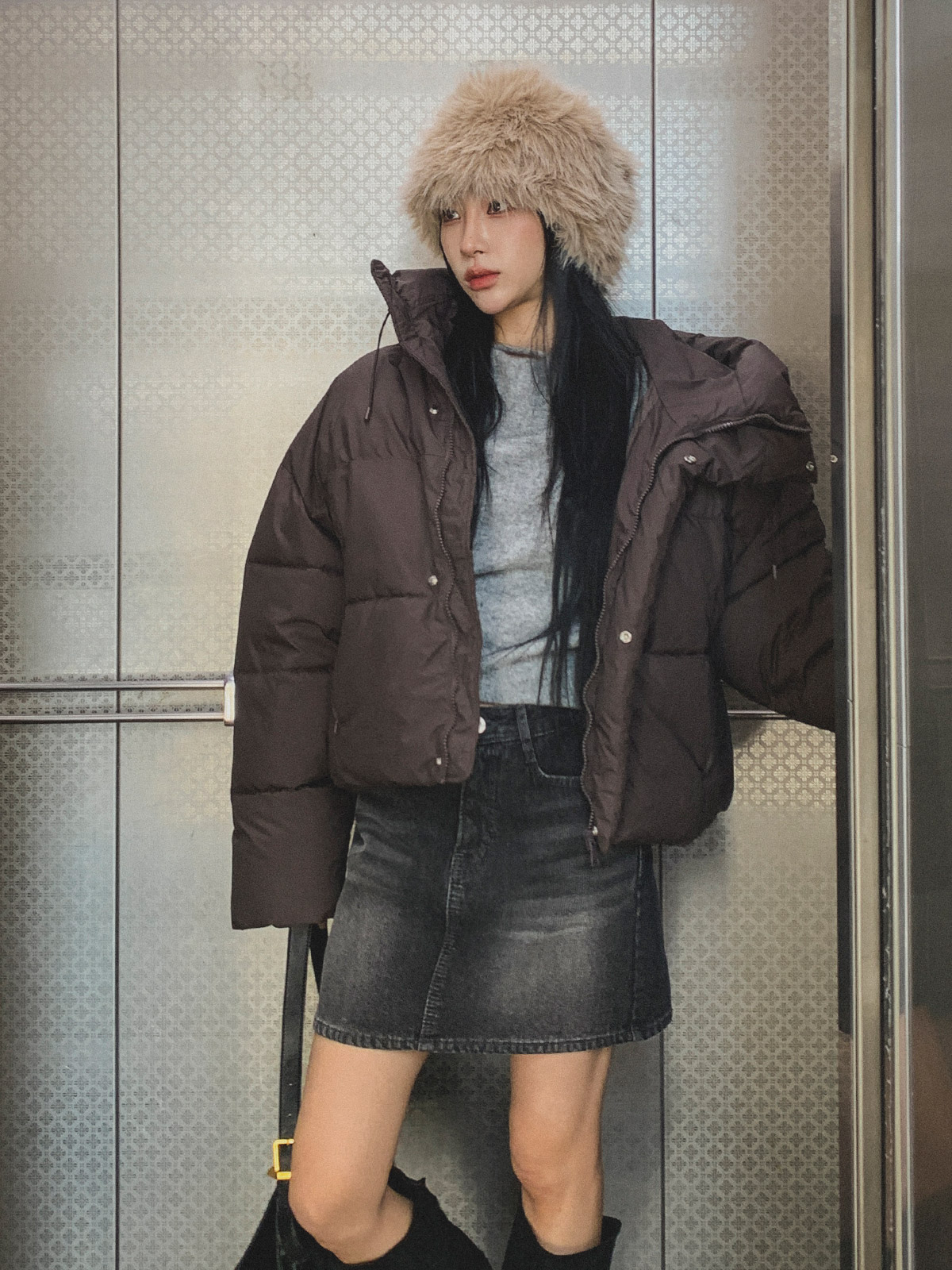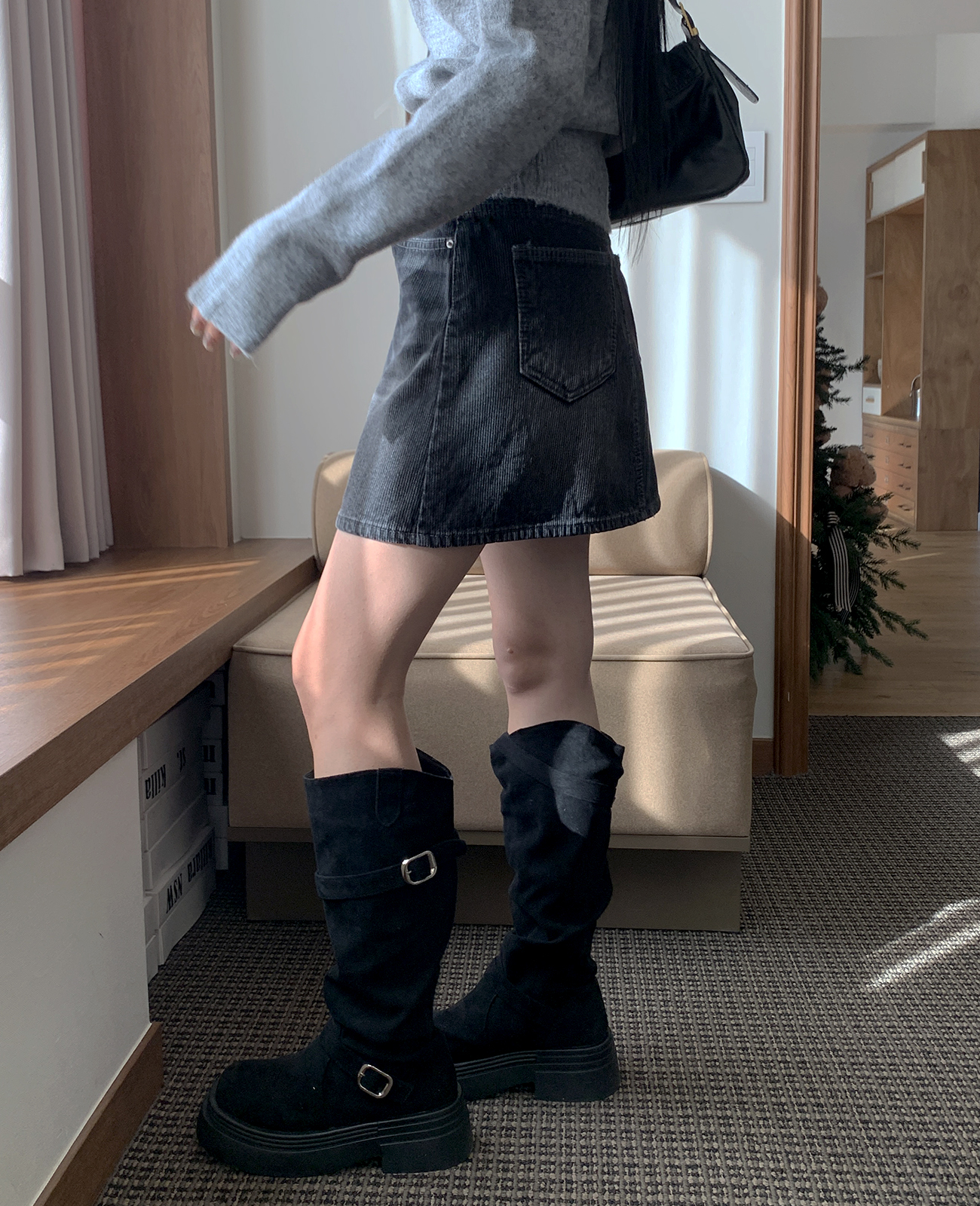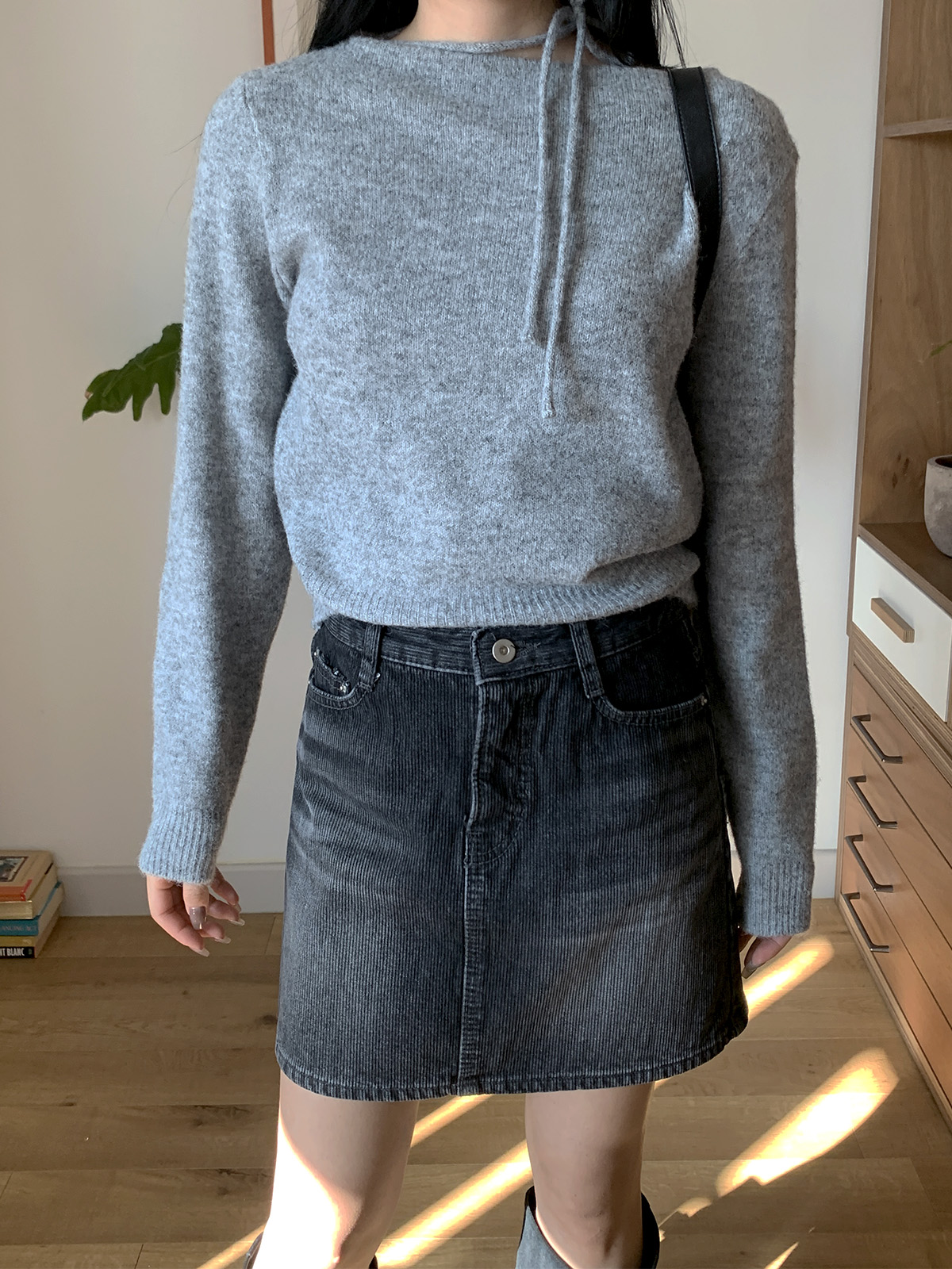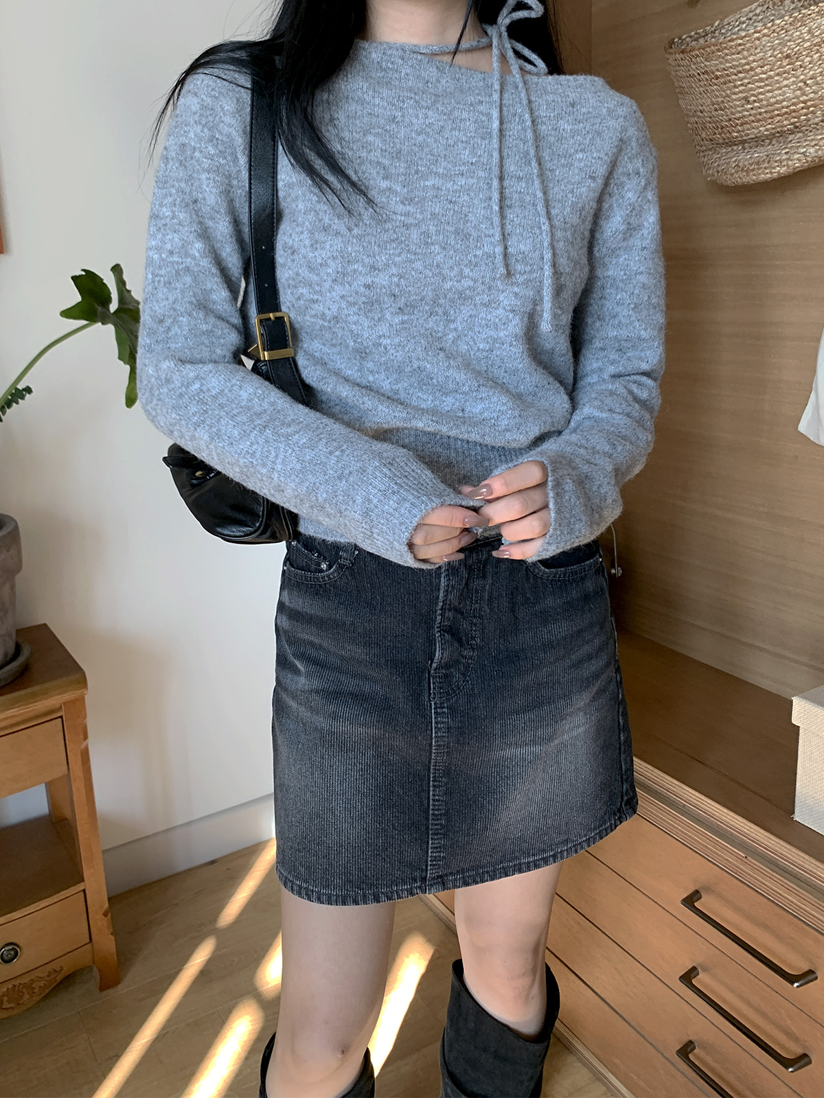 골덴 느낌의 데님 소재로 밋밋하지 않게 포인트가 되는 기모 미니 스커트