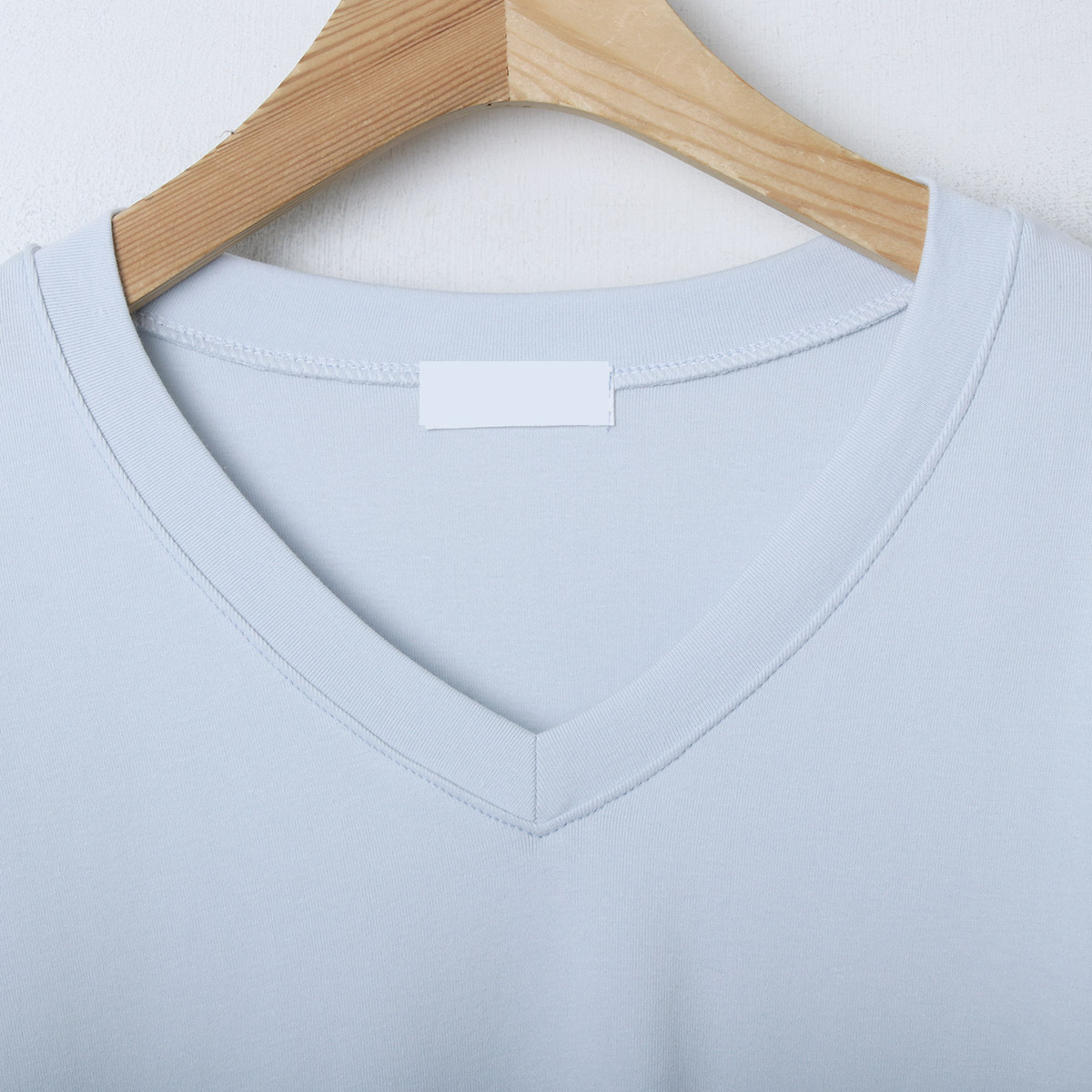 무지 샘플 브이넥으로 된 기본 티셔츠