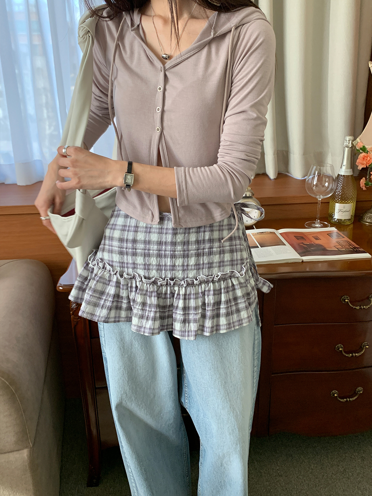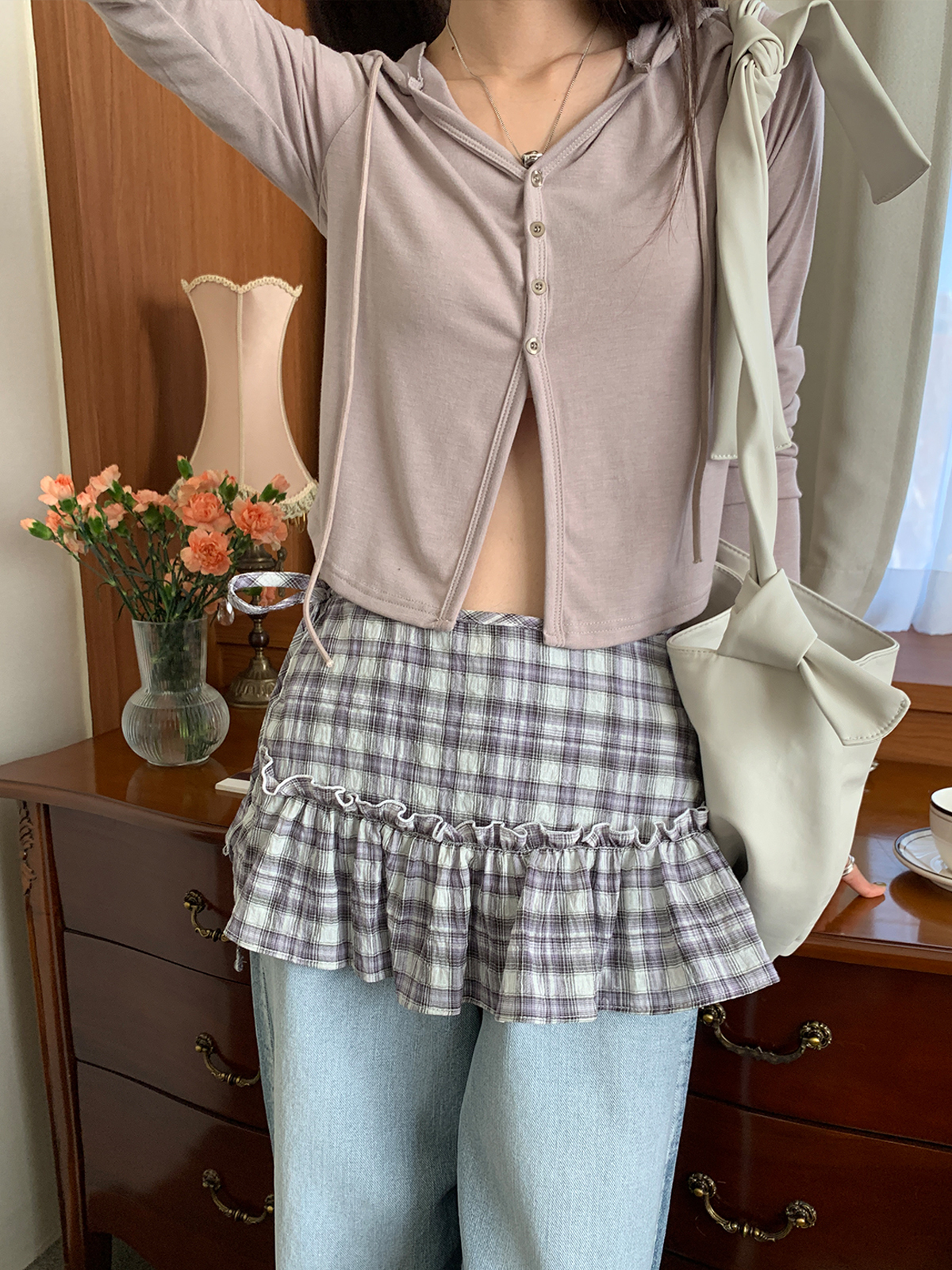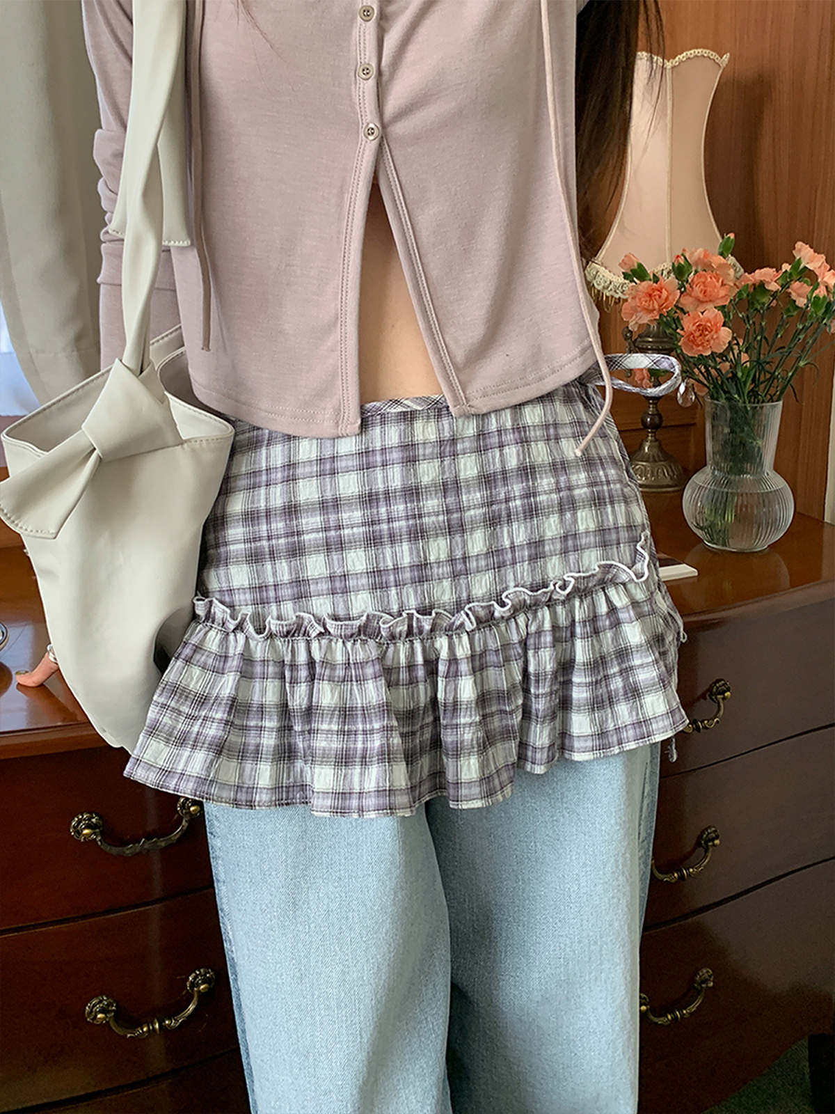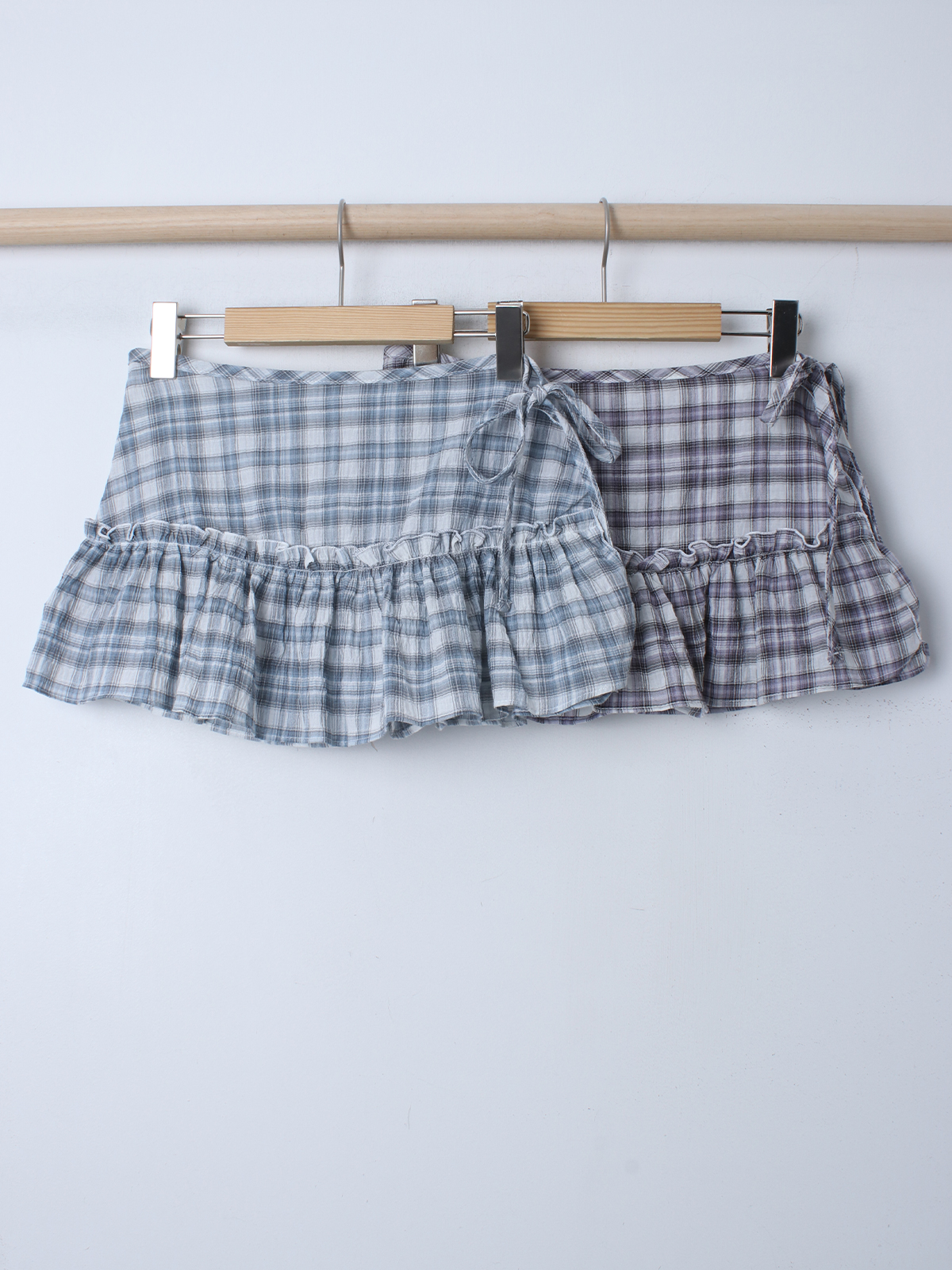 귀여운 색감과 체크 패턴의 프릴 미니 스커트