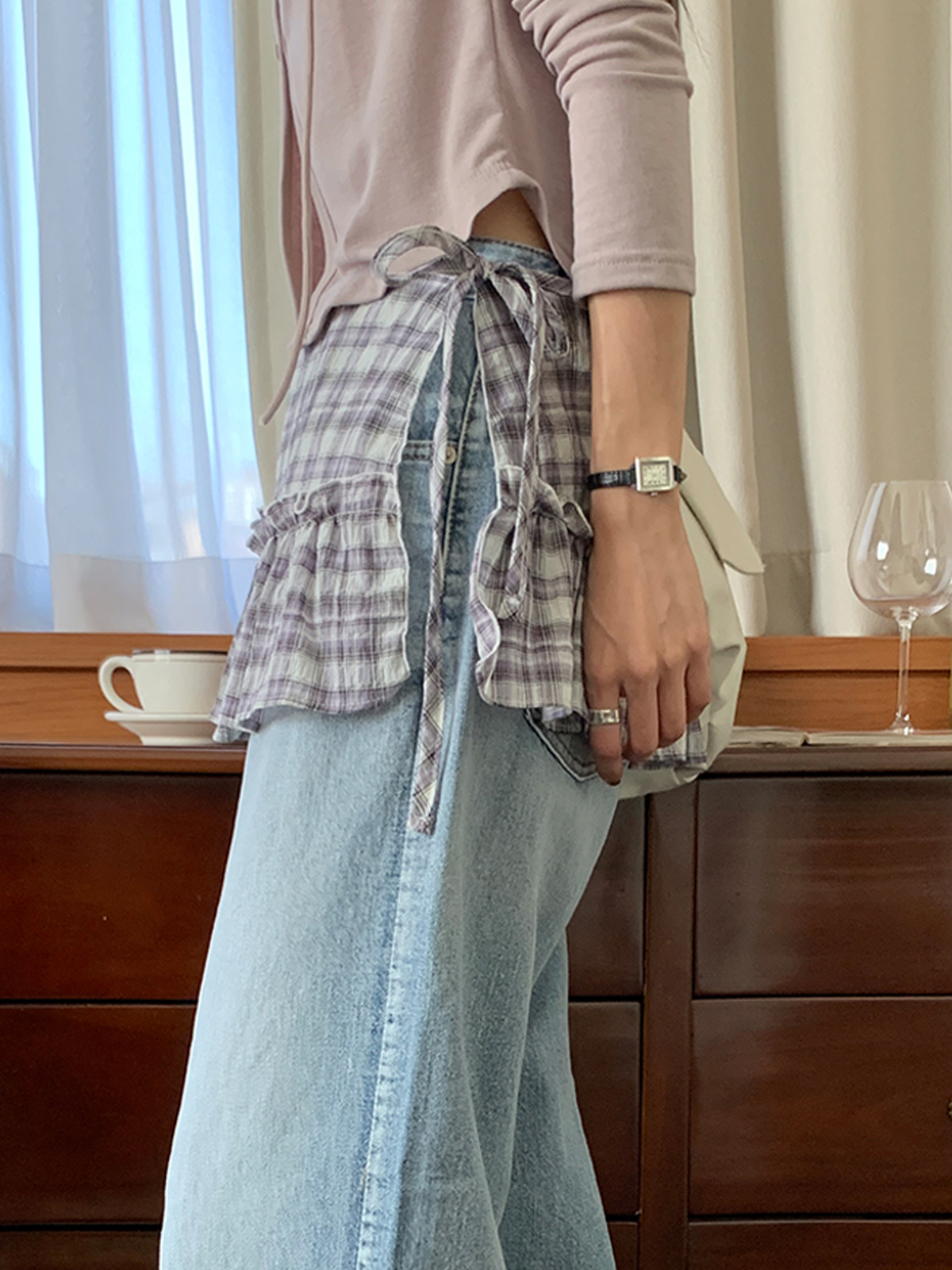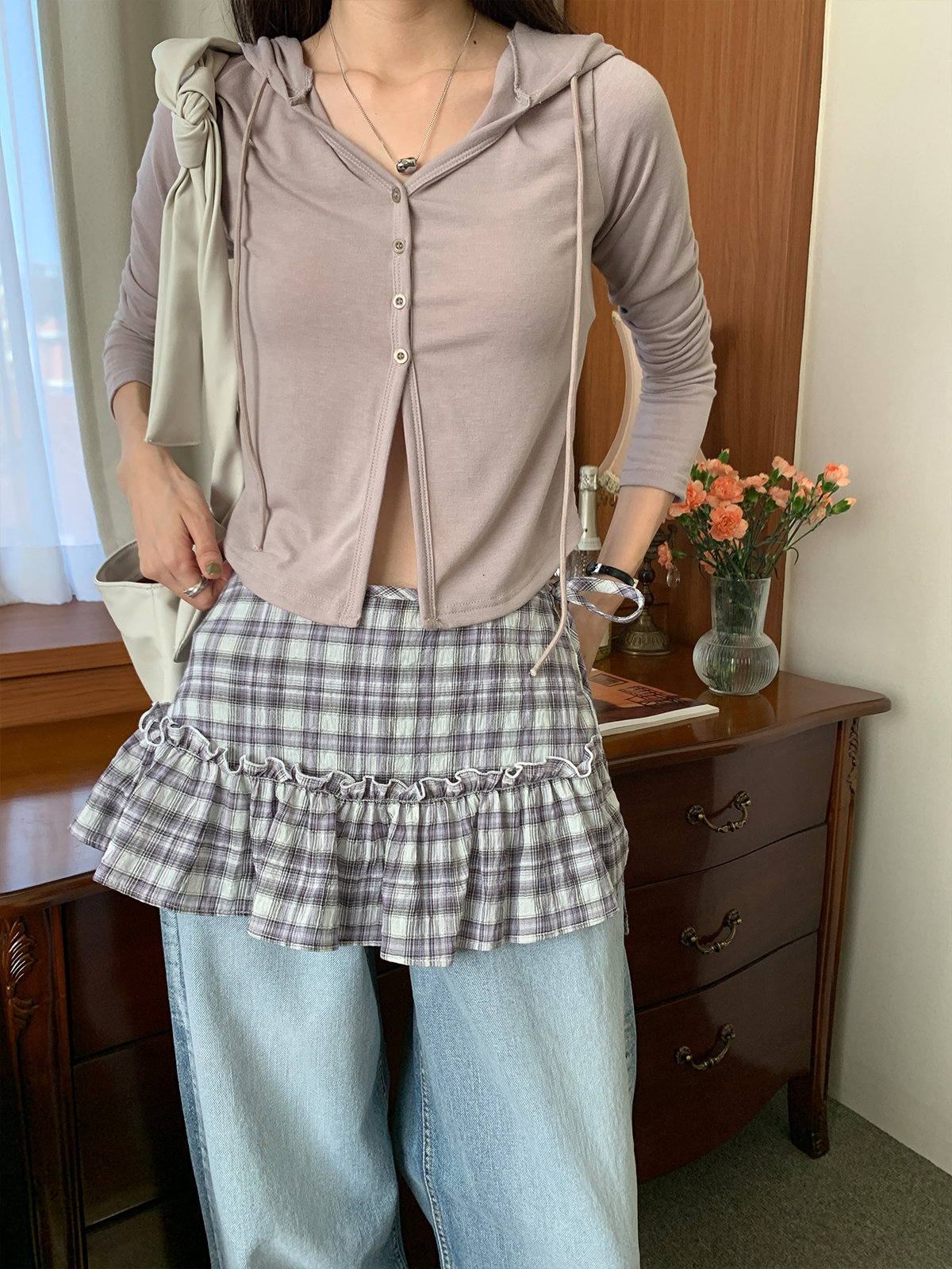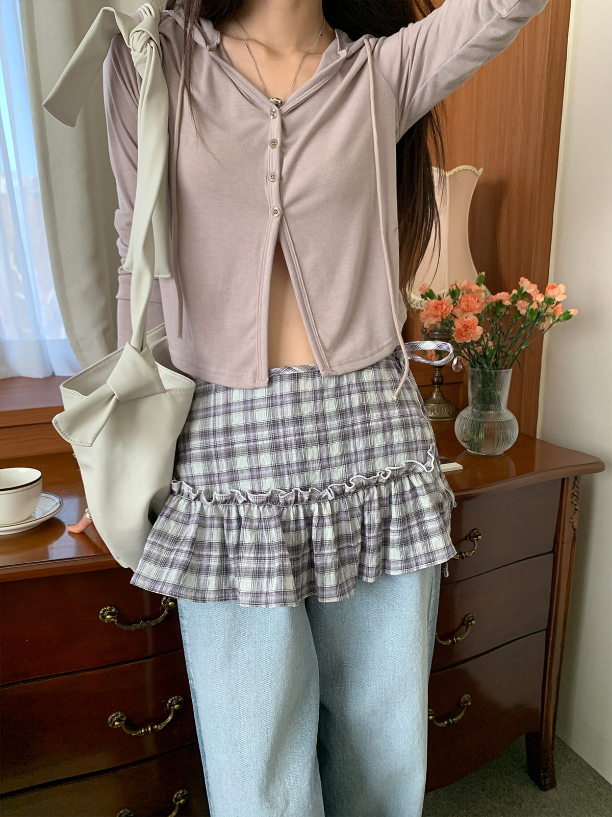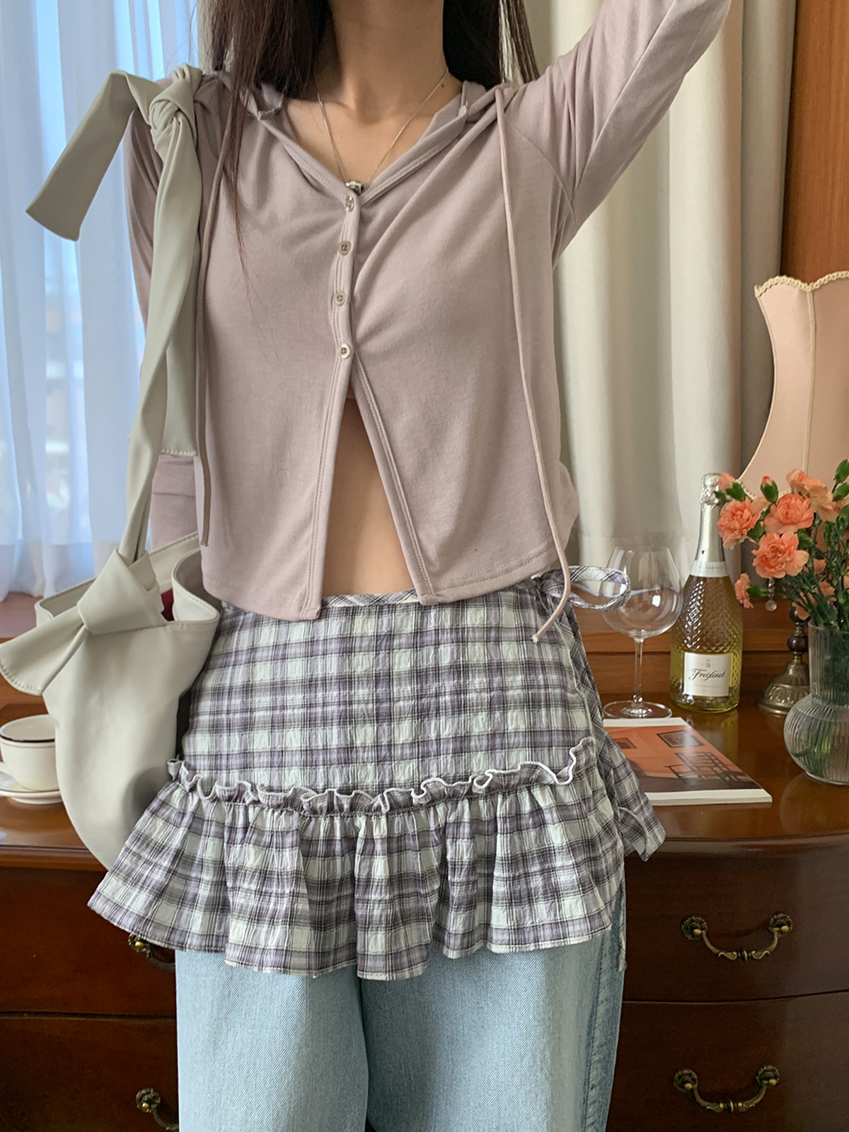 귀여운 색감과 체크 패턴의 프릴 미니 스커트