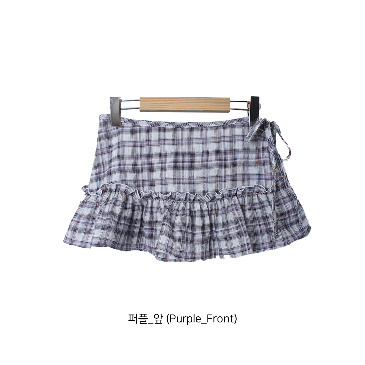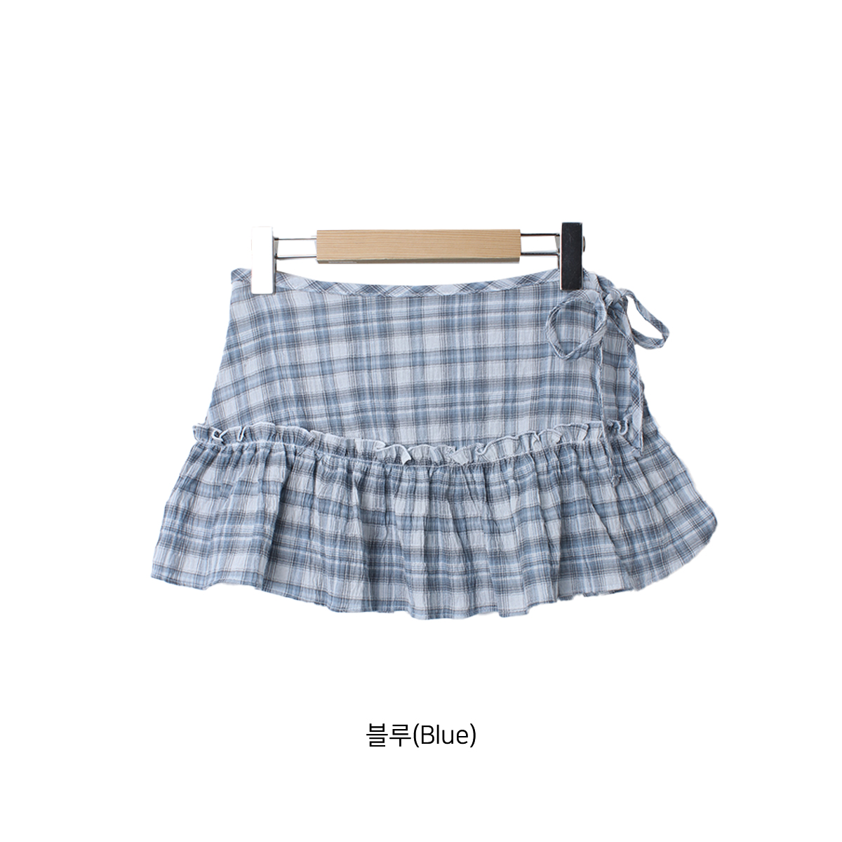 귀여운 색감과 체크 패턴의 프릴 미니 스커트이며