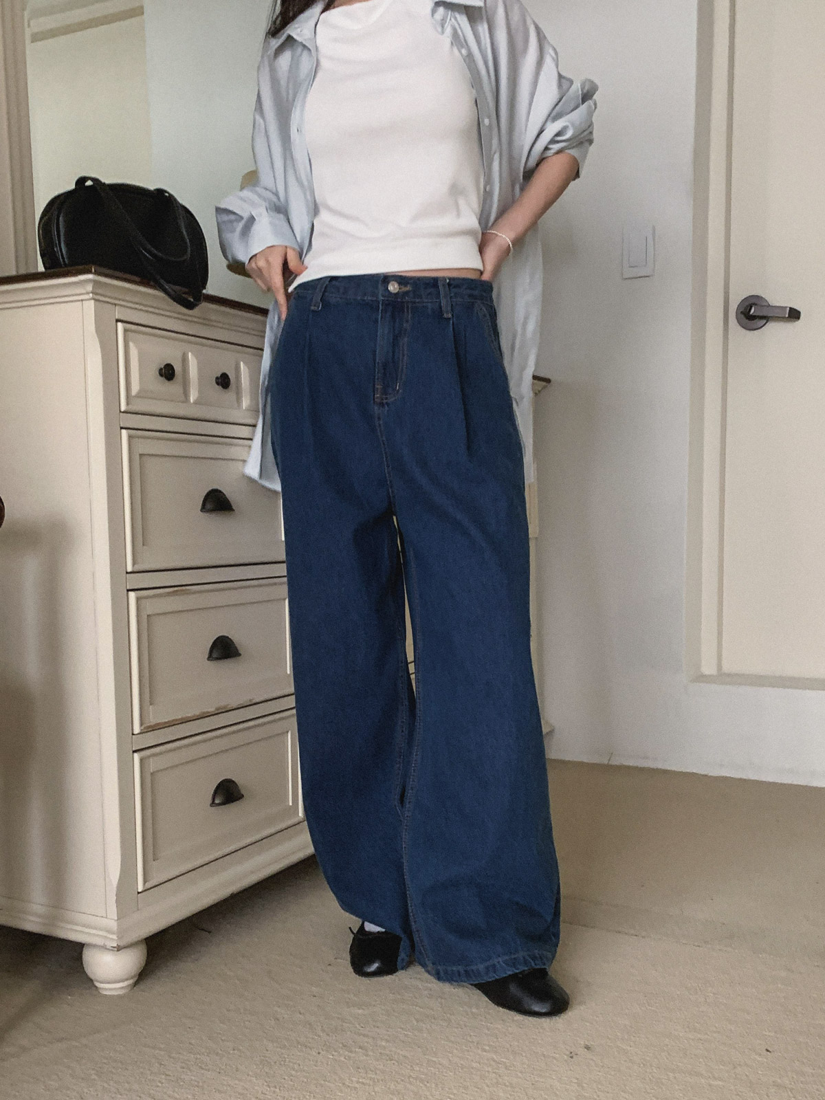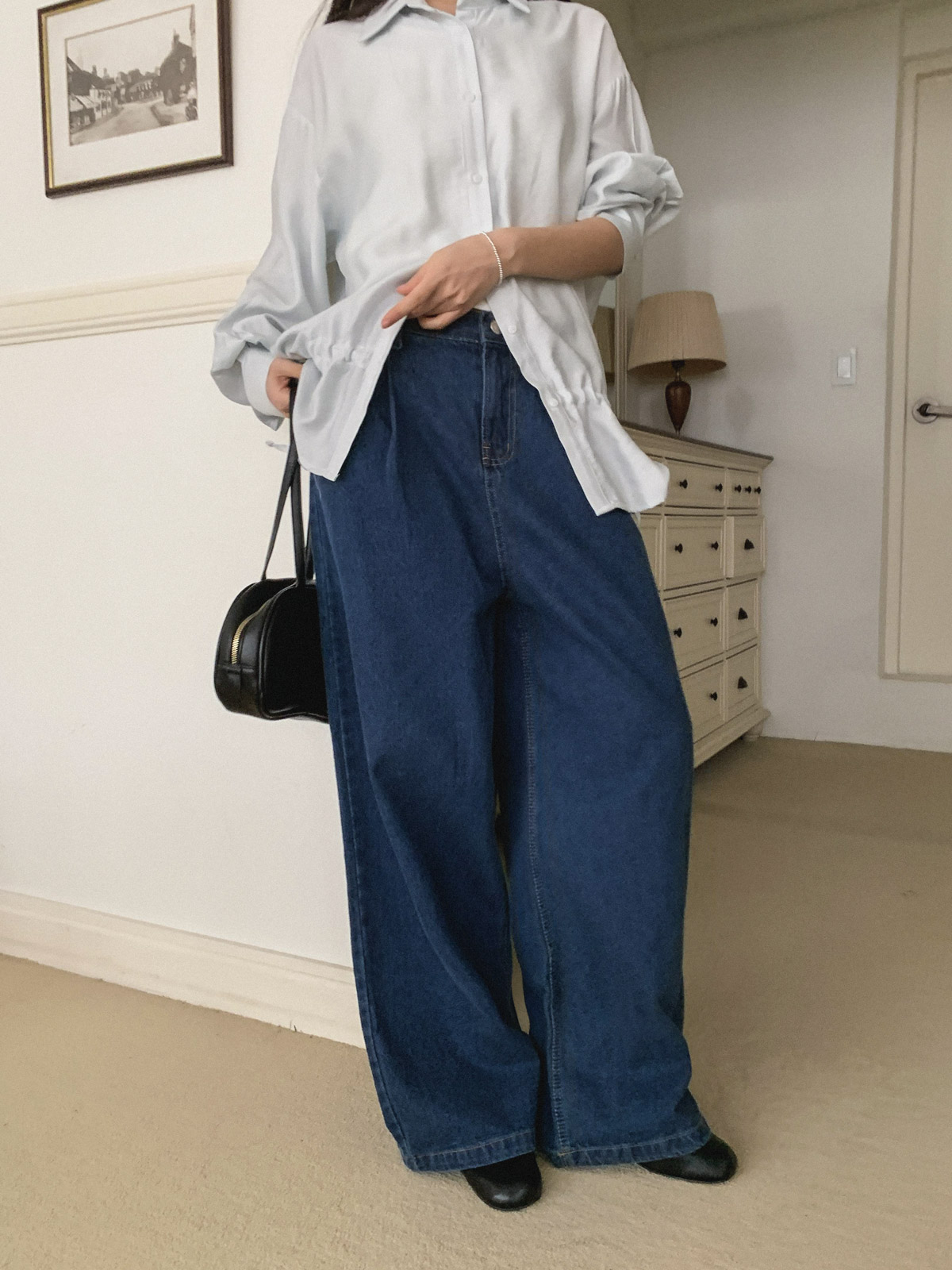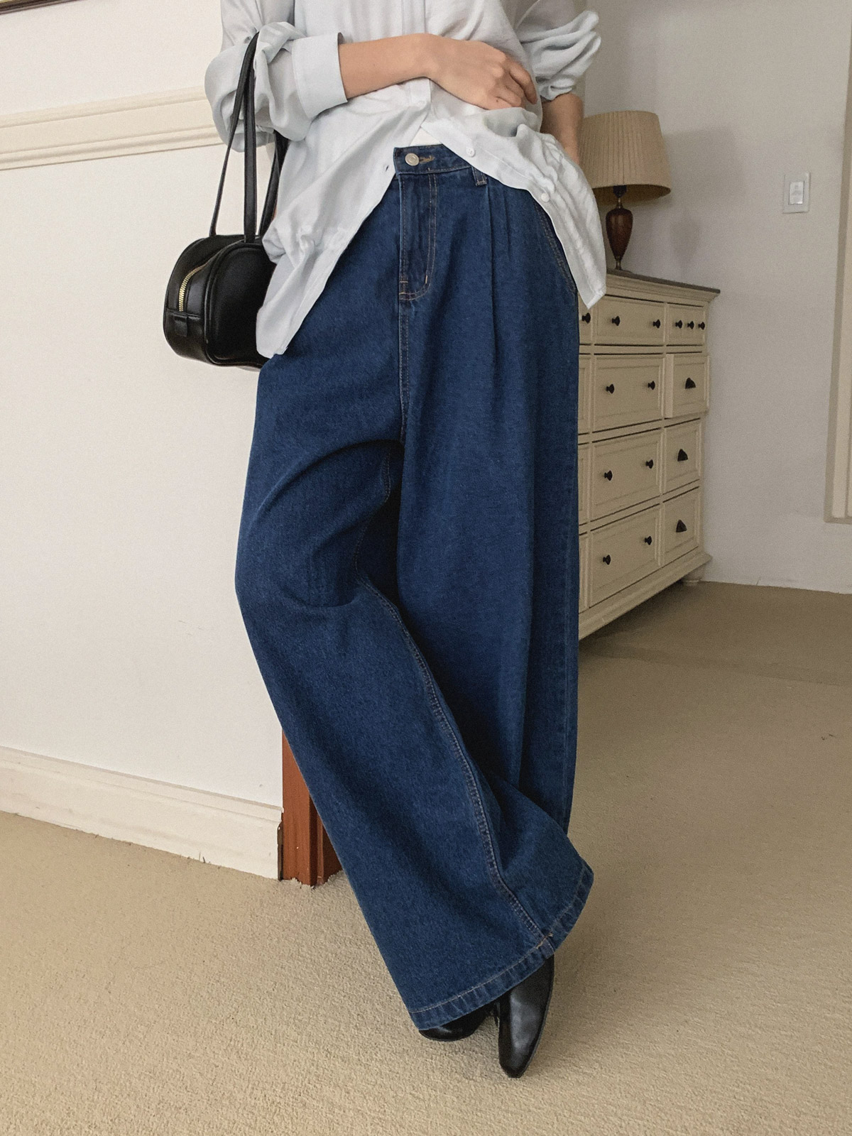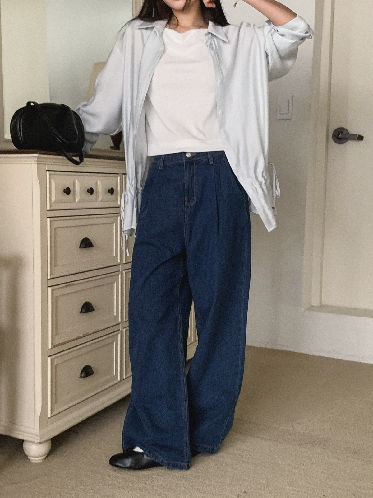 핀턱 포인트가 들어간 중청 허리밴딩 팬츠