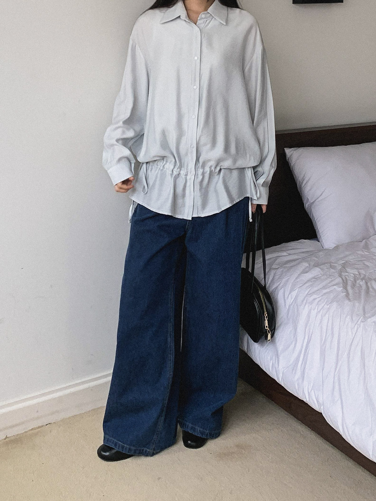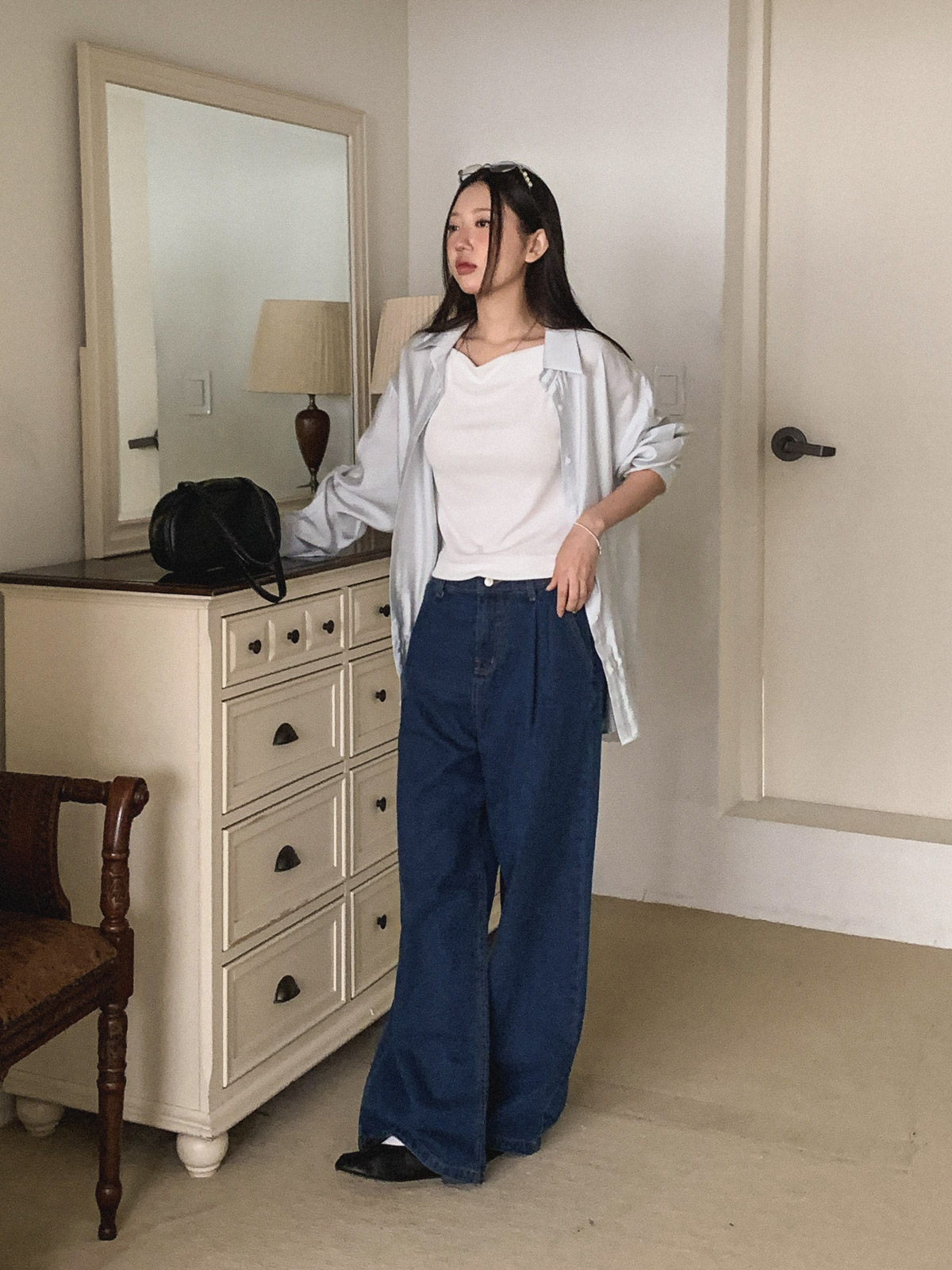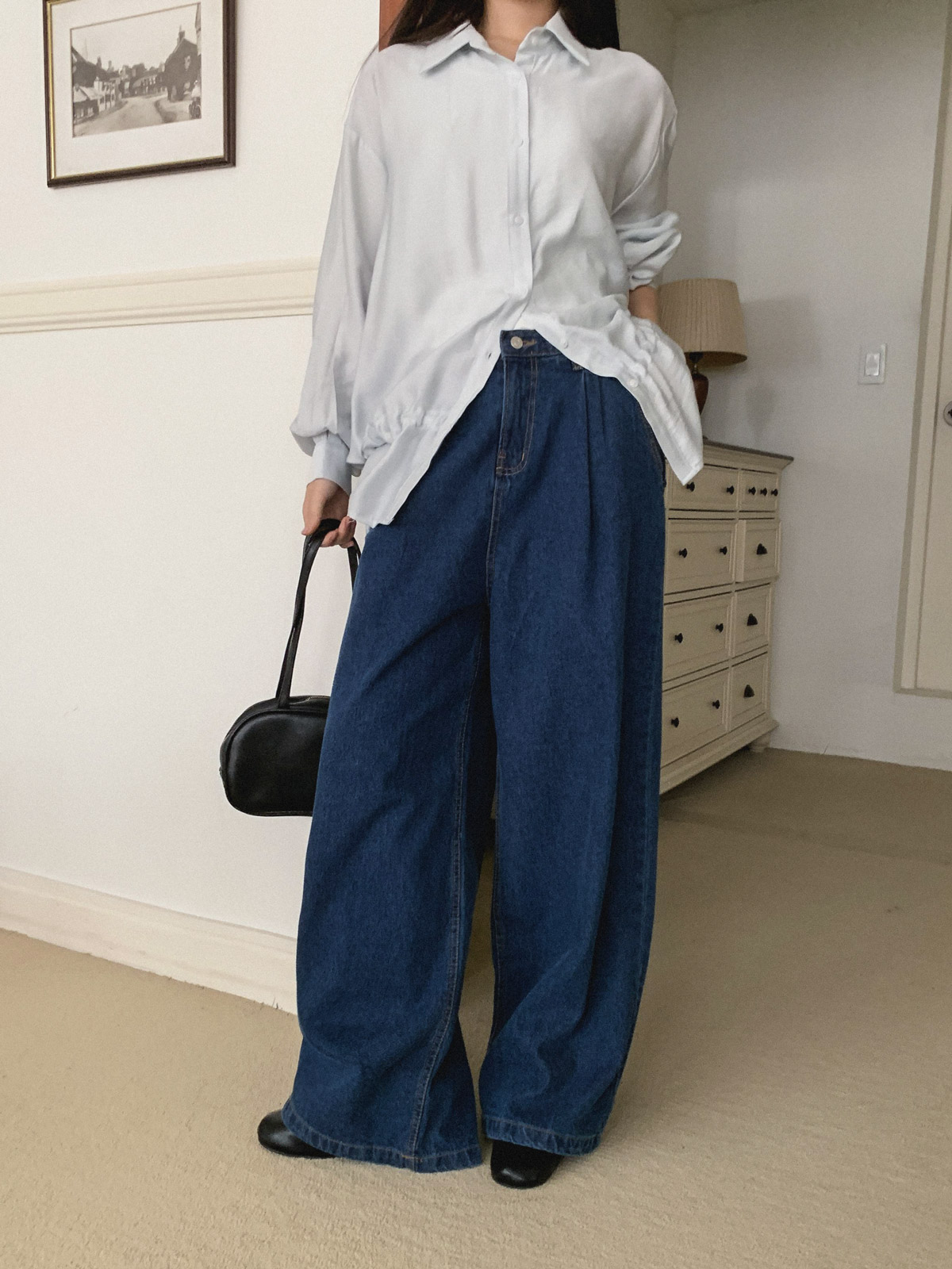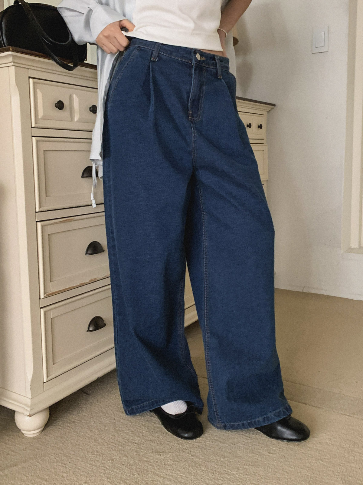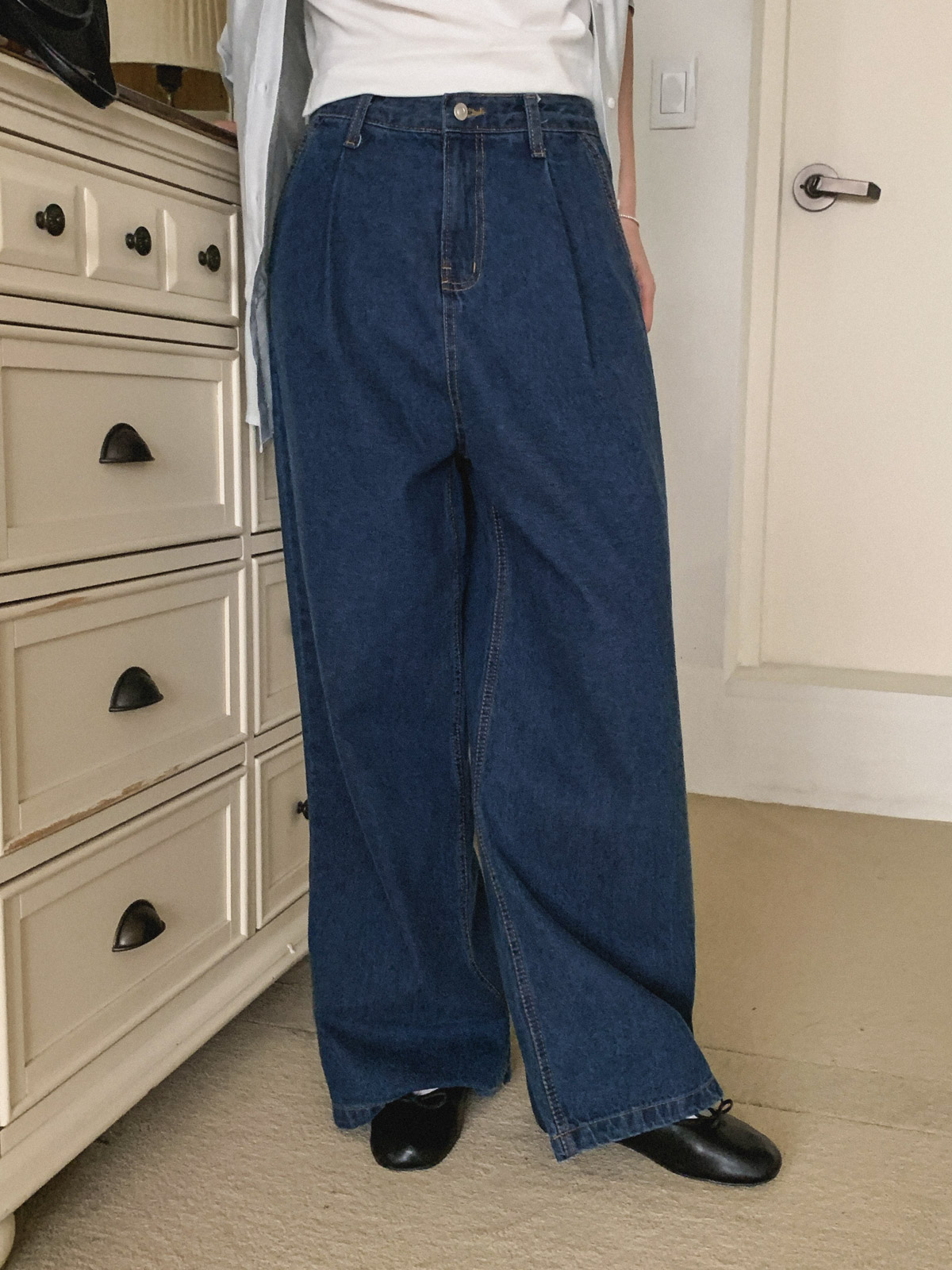 핀턱 포인트가 들어간 중청 허리밴딩 팬츠