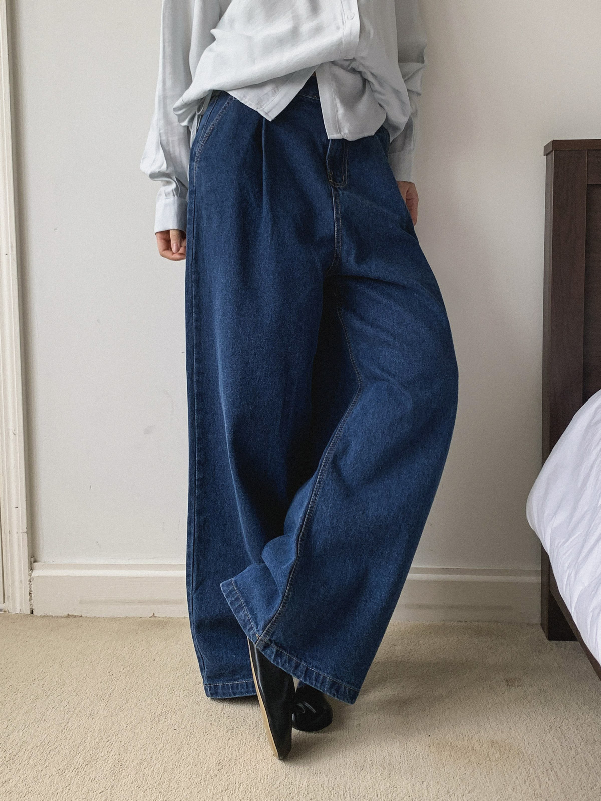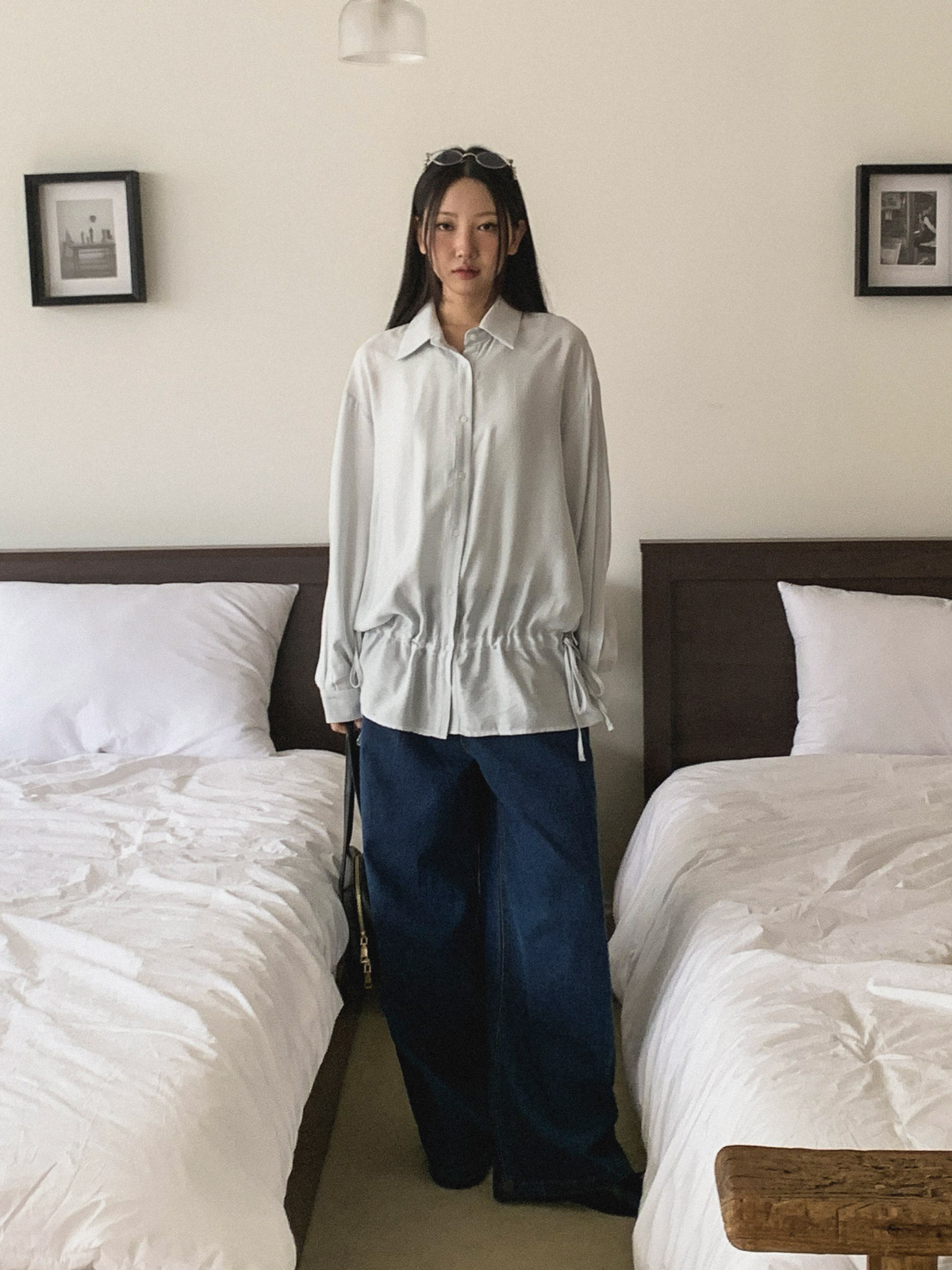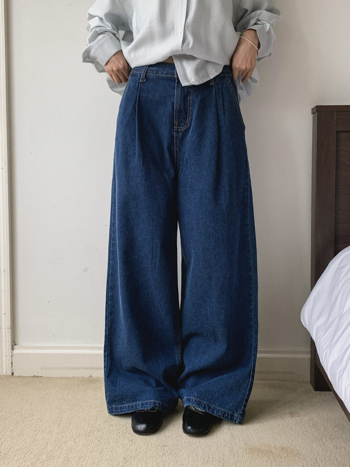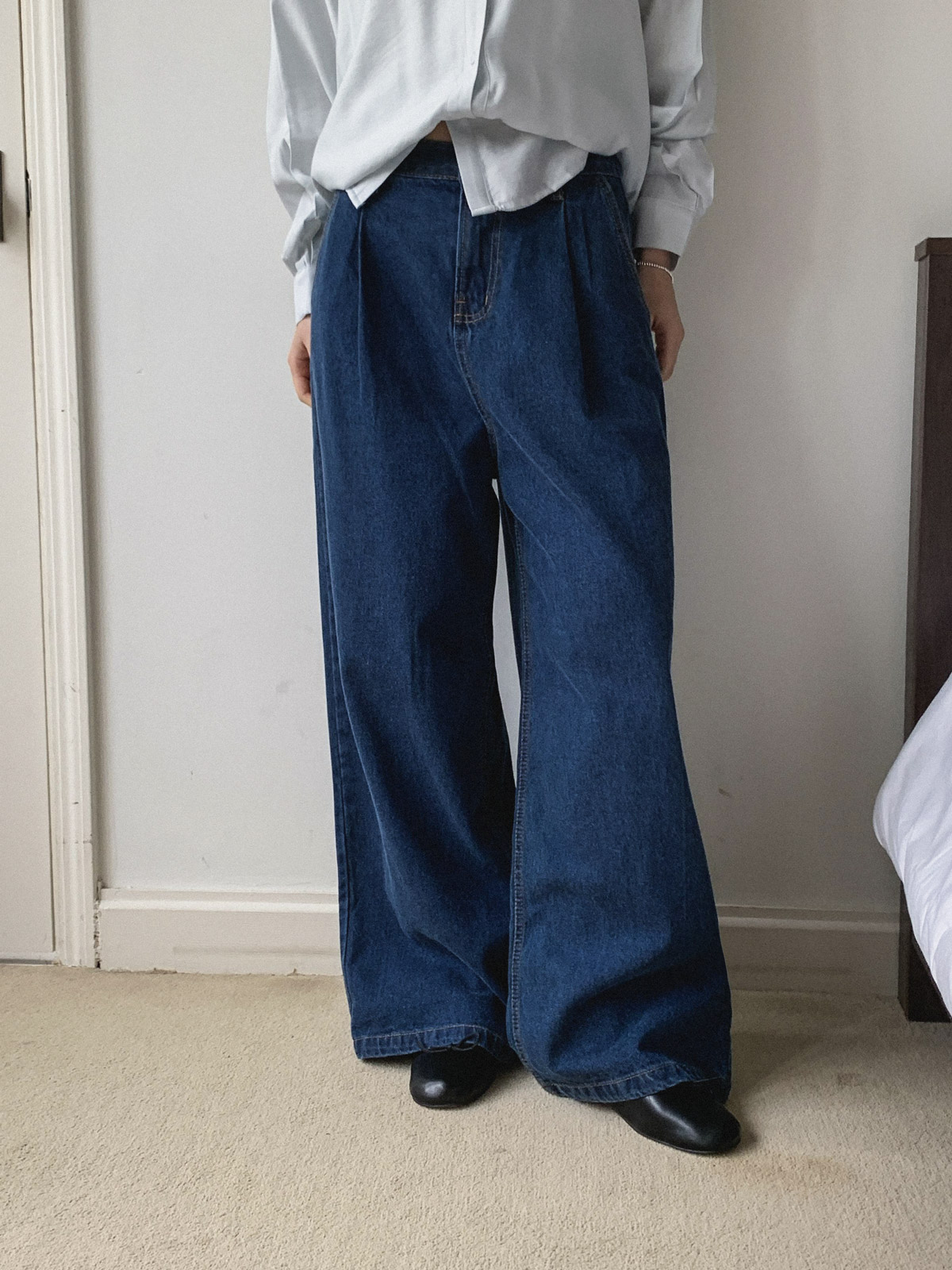 핀턱 포인트가 들어간 중청 허리밴딩 팬츠