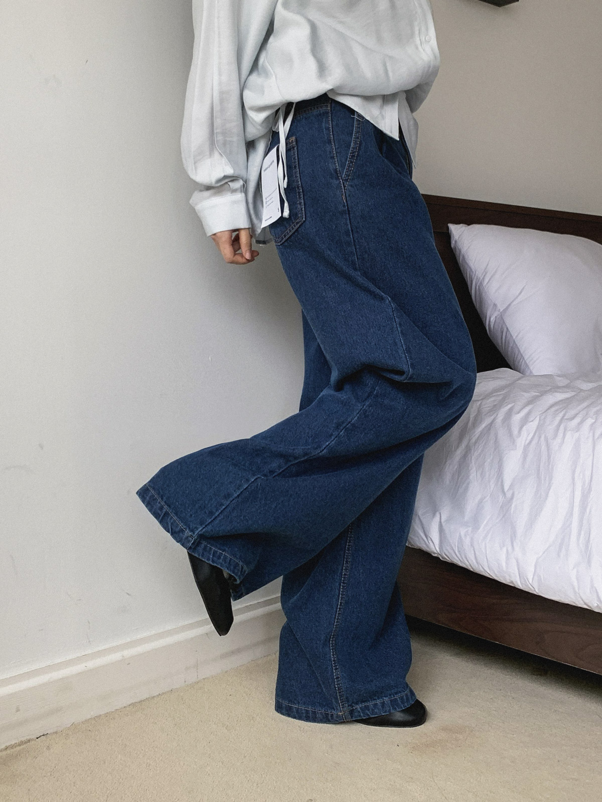 탄탄한 소재와 허리밴딩으로 편안하게 착용 가능한 데님 팬츠입니다:)
