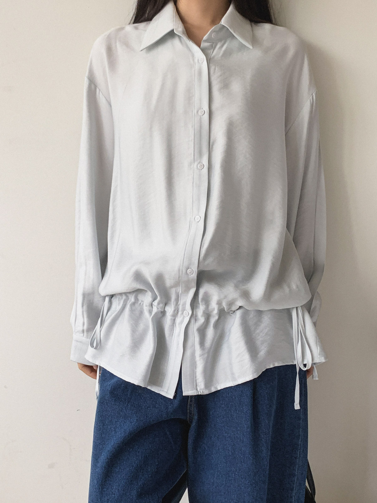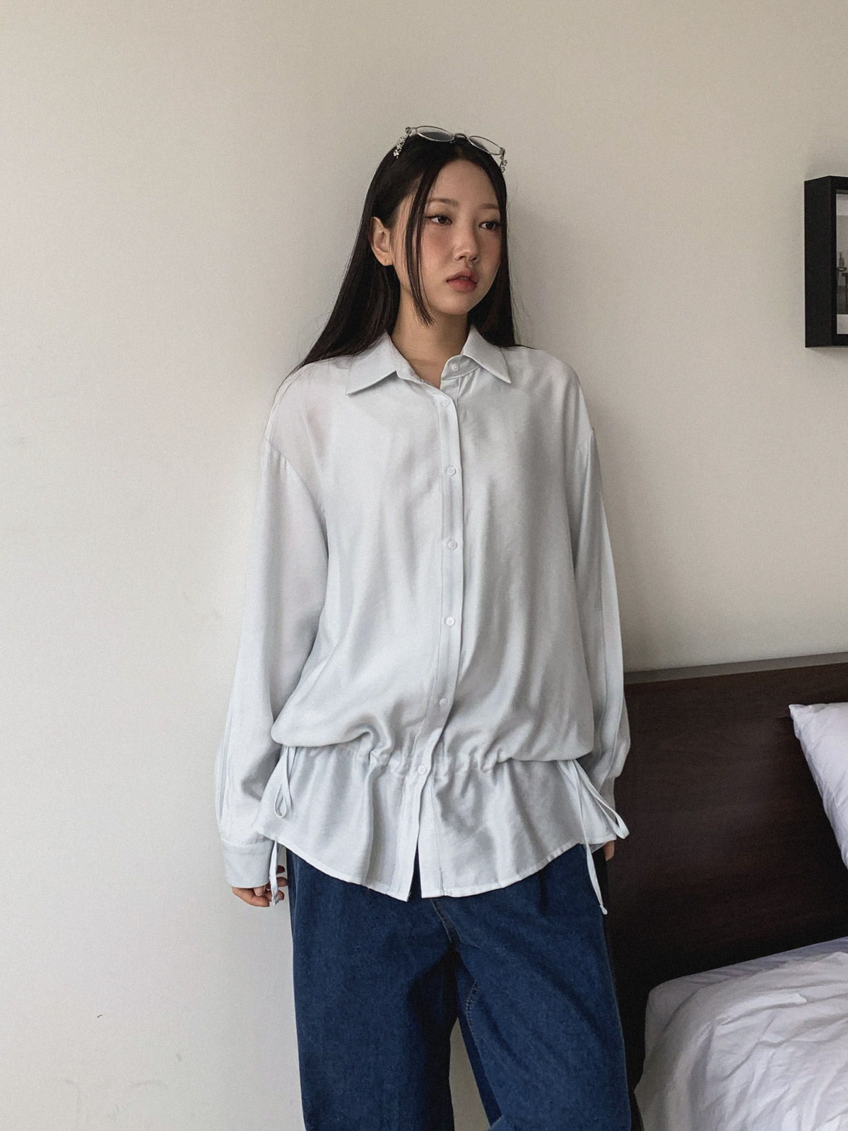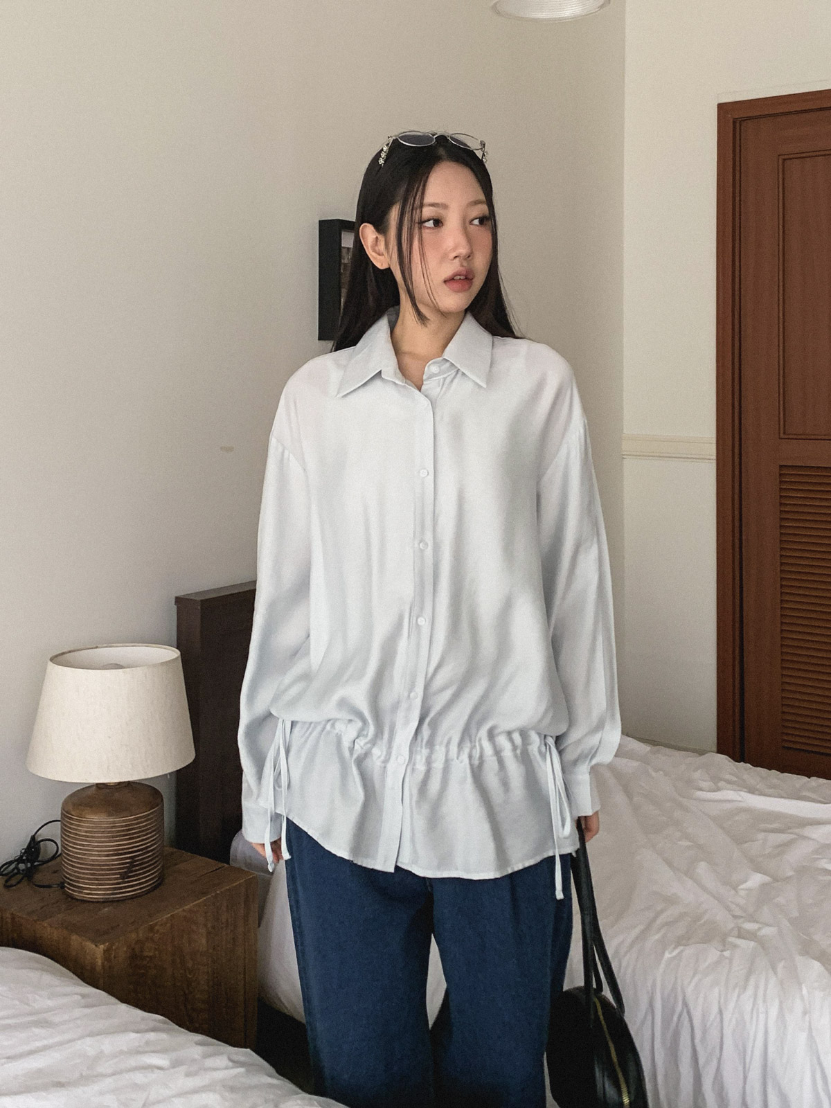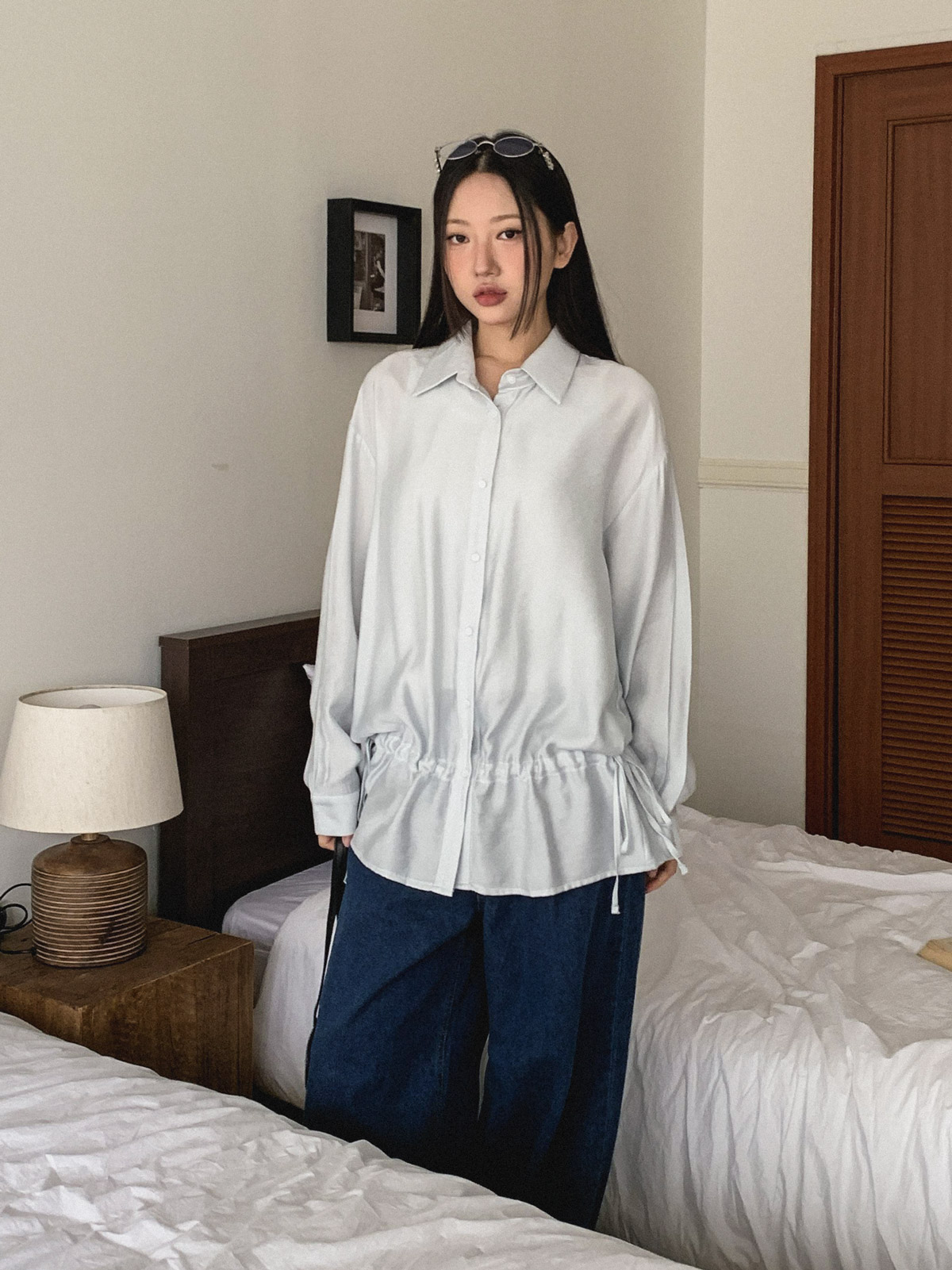 밑단 스트링이 포인트인 오버핏 카라 셔츠