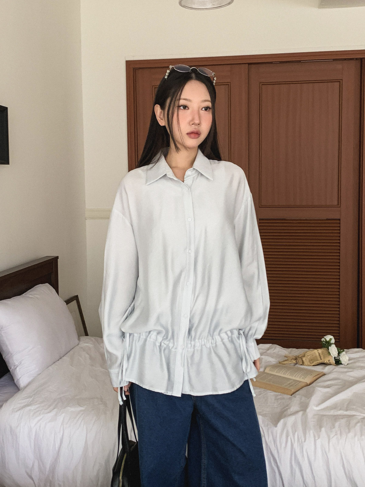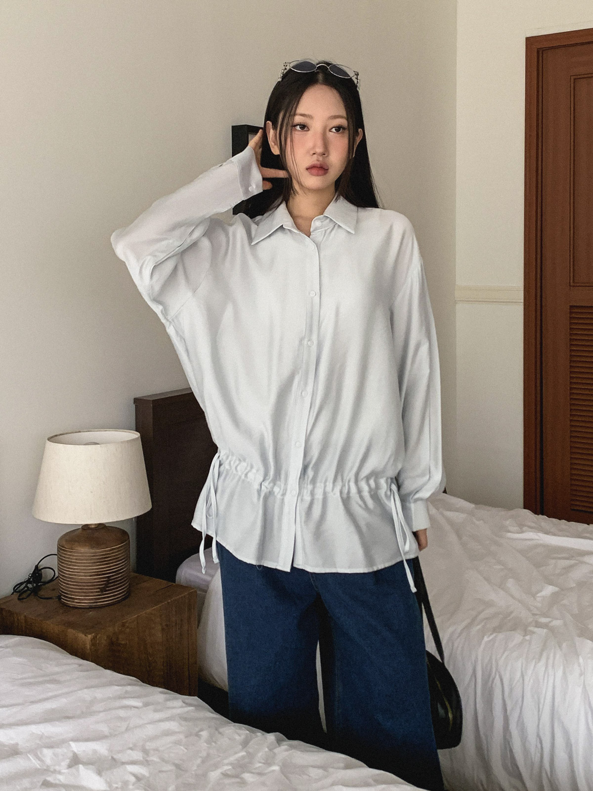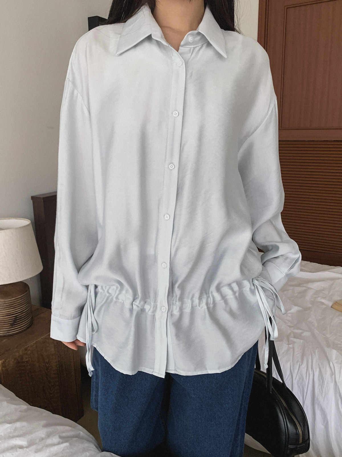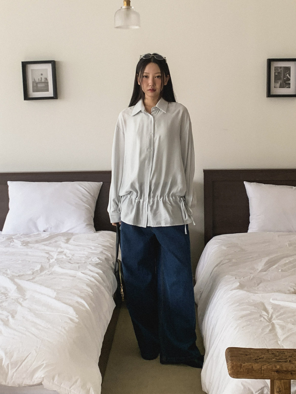 밑단 스트링이 포인트인 오버핏 카라 셔츠