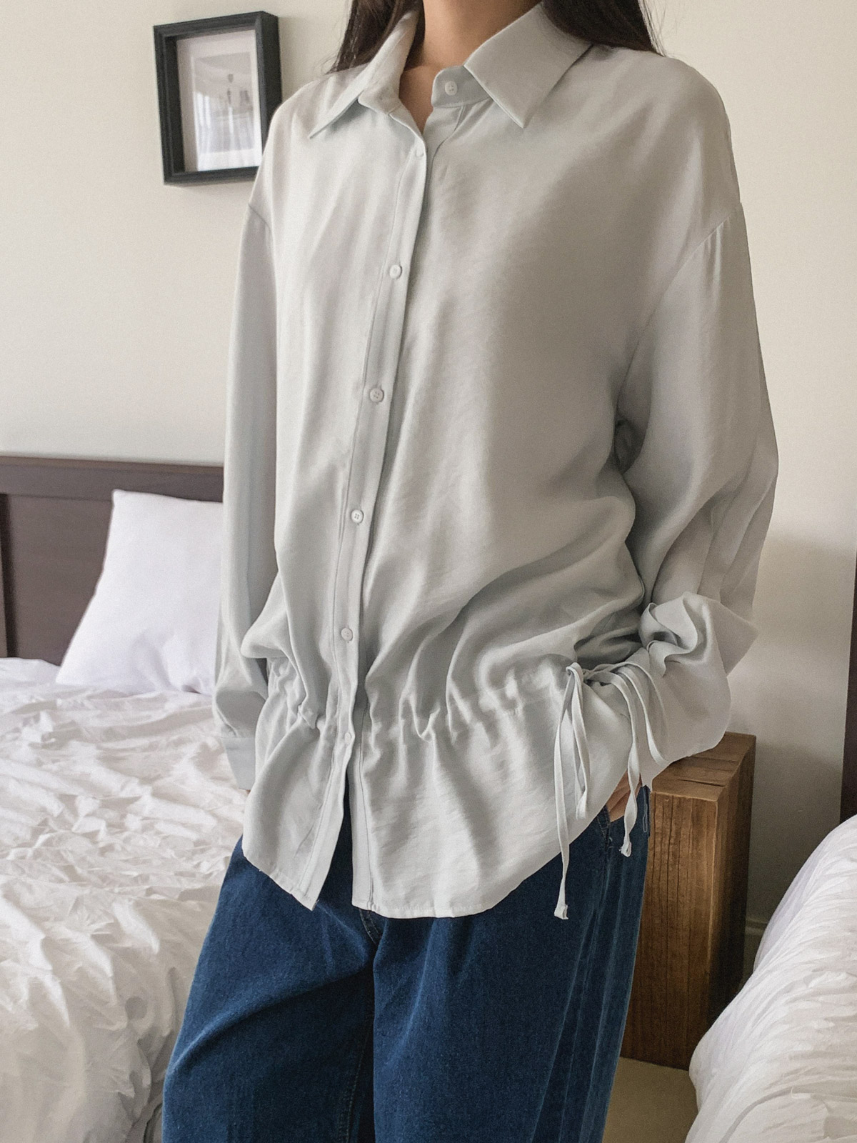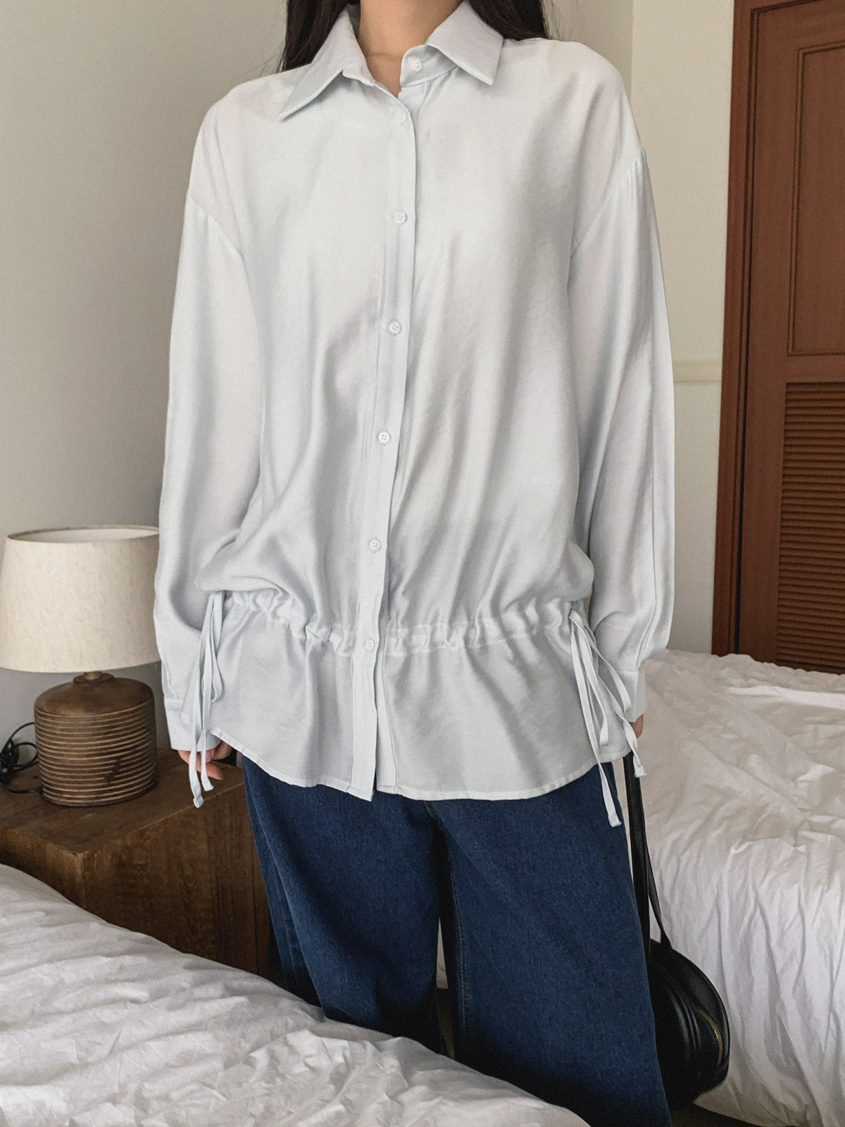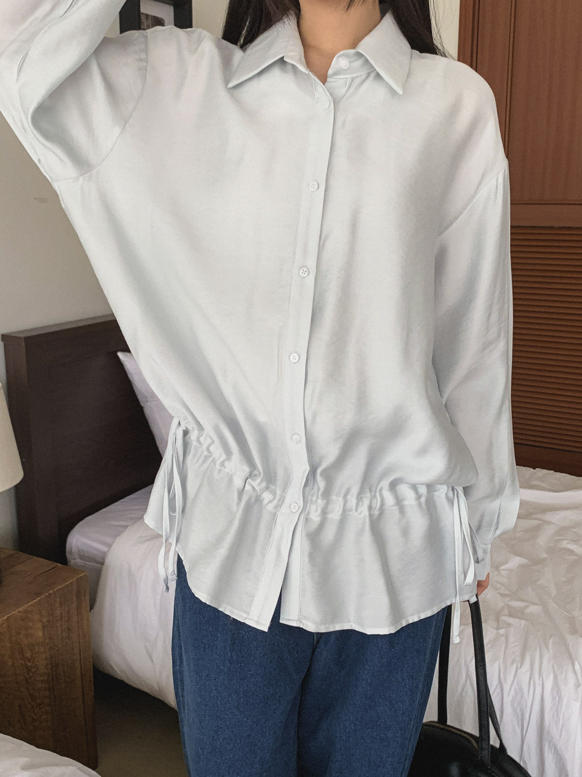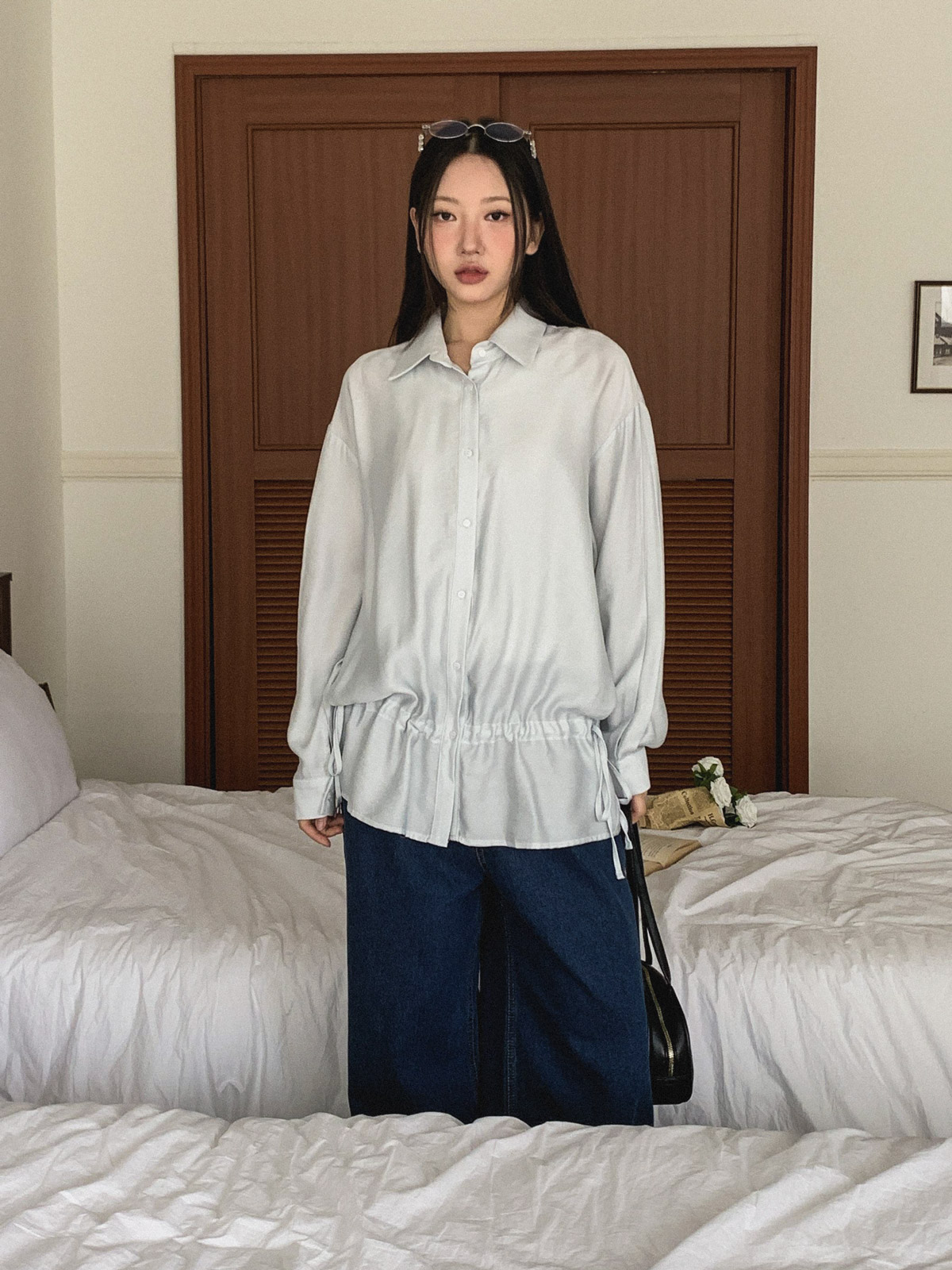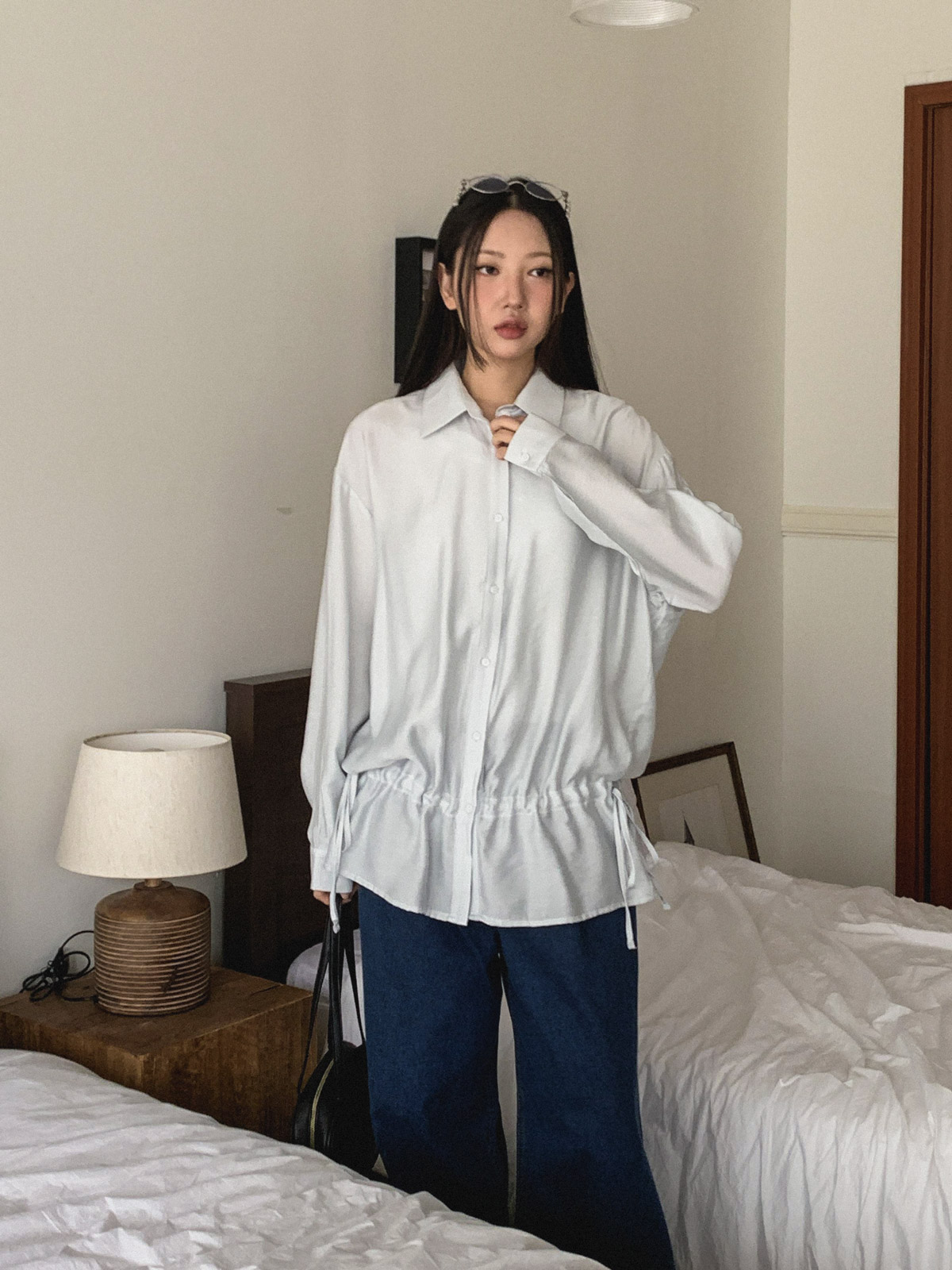 밑단 스트링이 포인트인 오버핏 카라 셔츠
