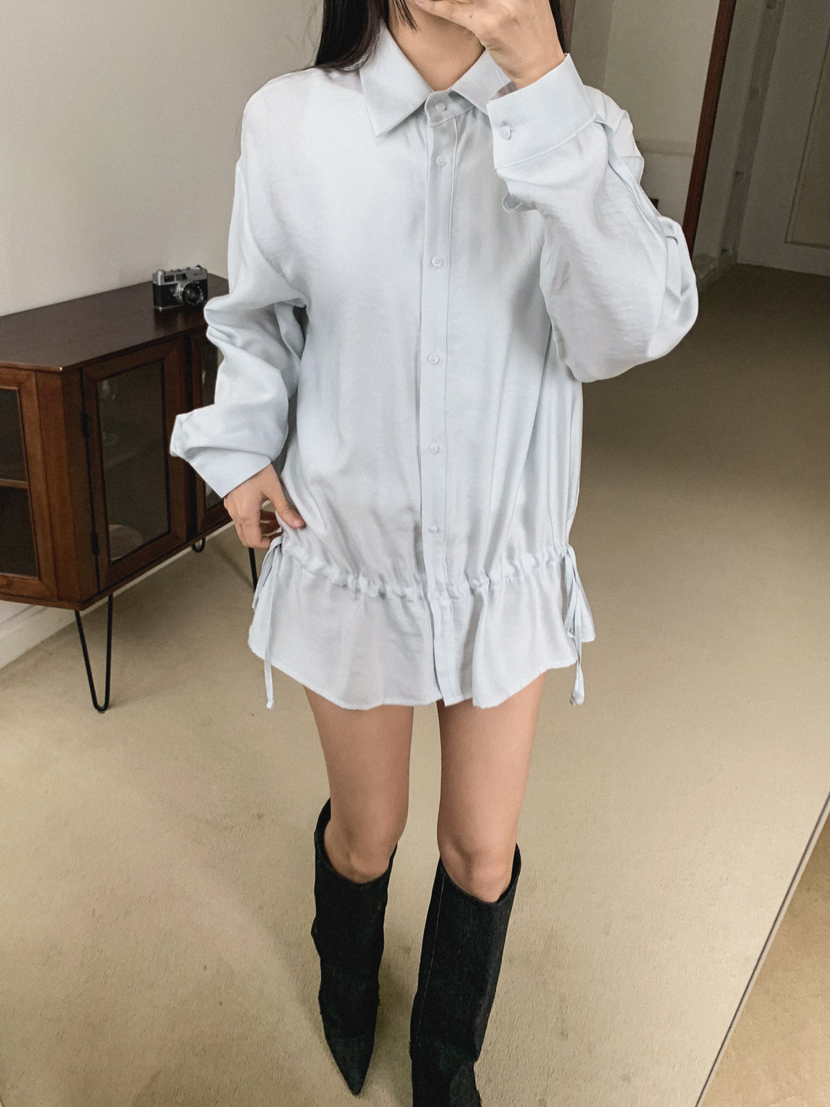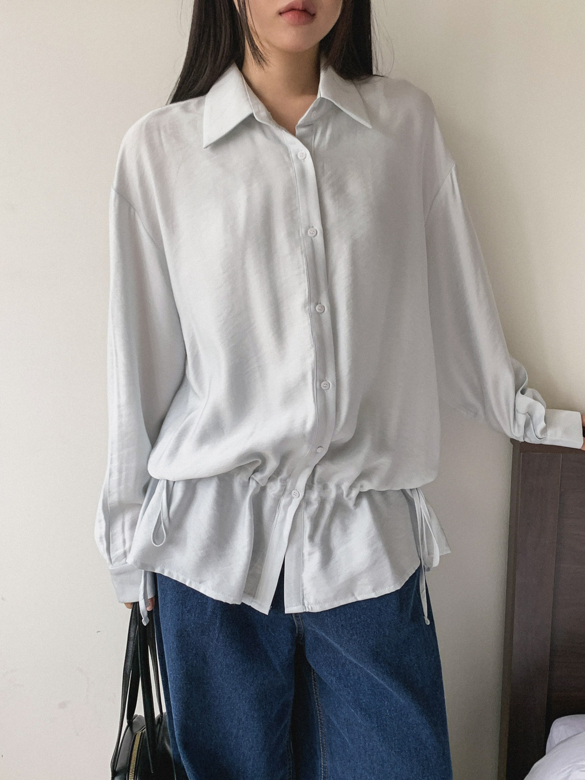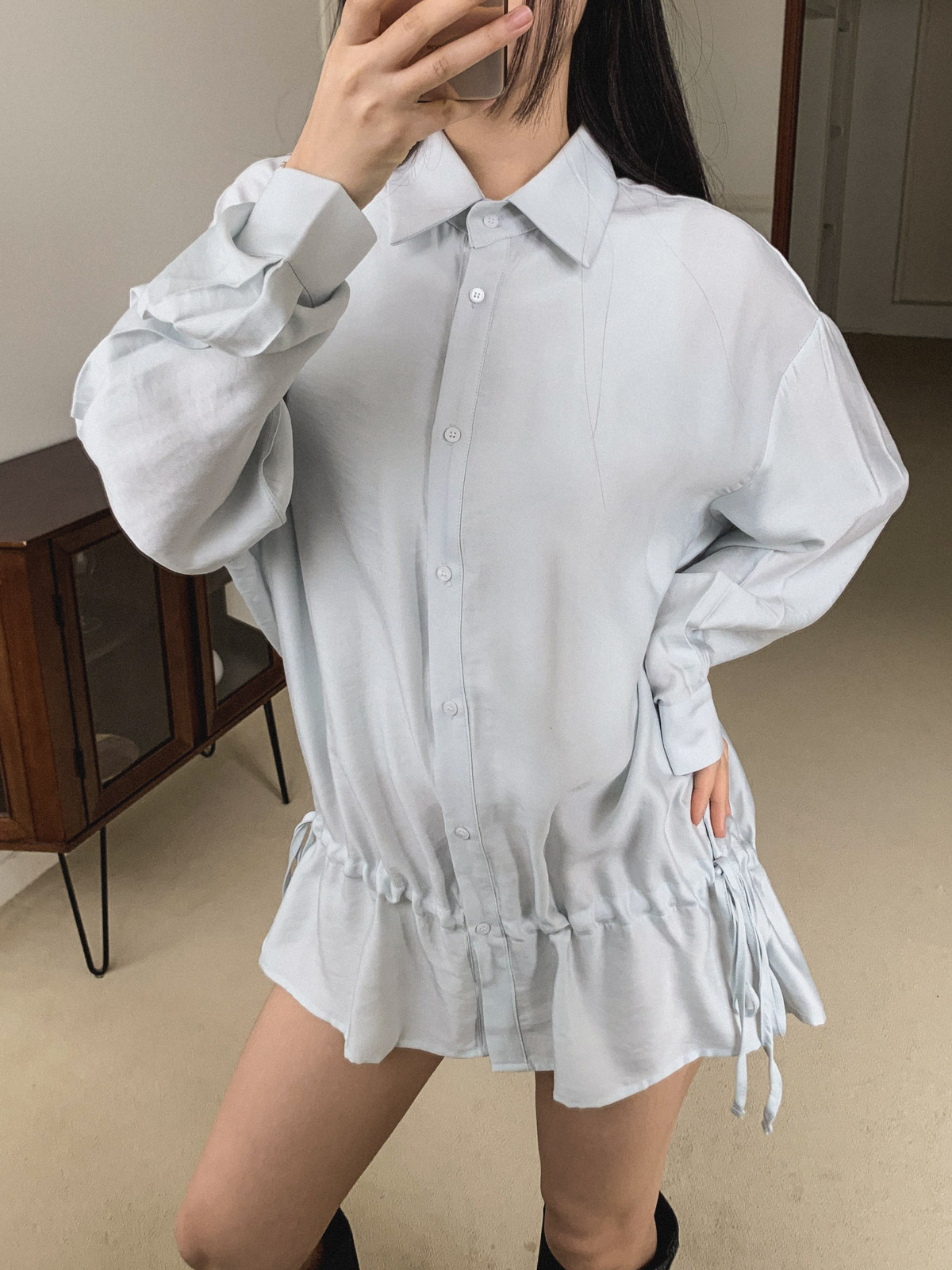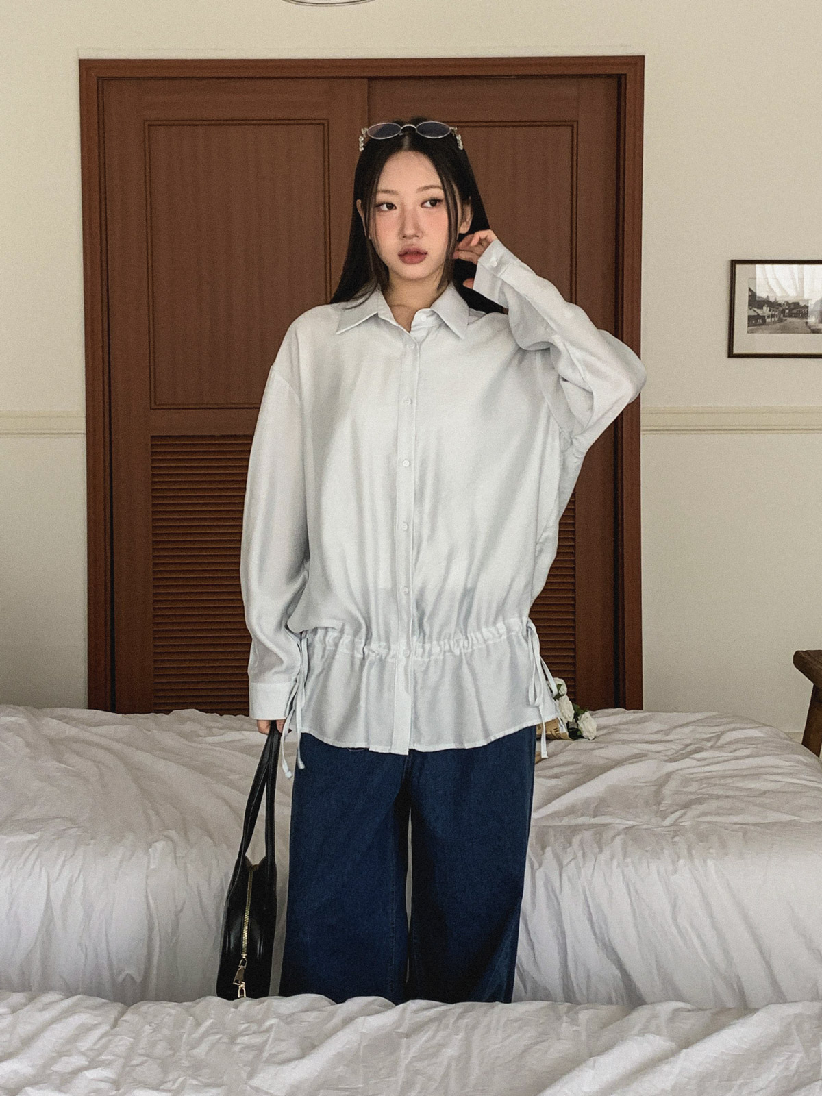 밑단 스트링이 포인트인 오버핏 카라 셔츠