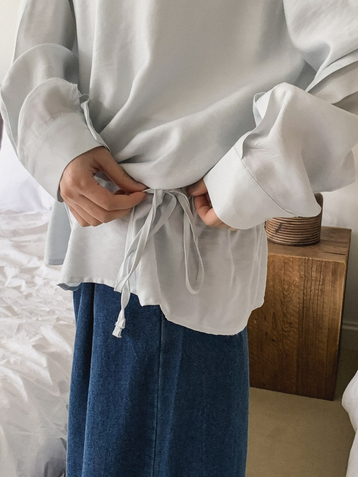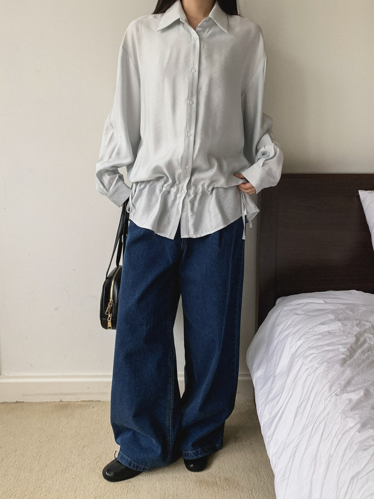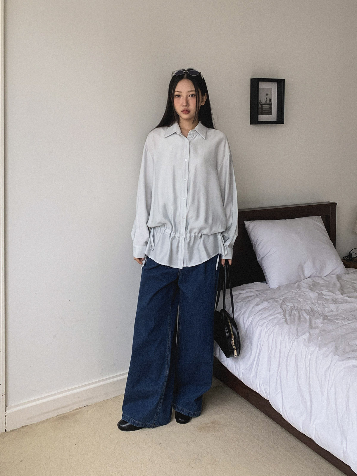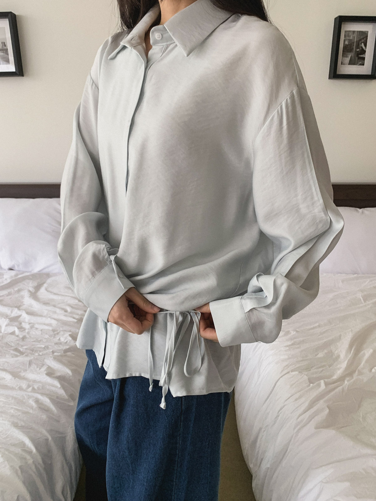 밑단 스트링이 포인트인 오버핏 카라 셔츠