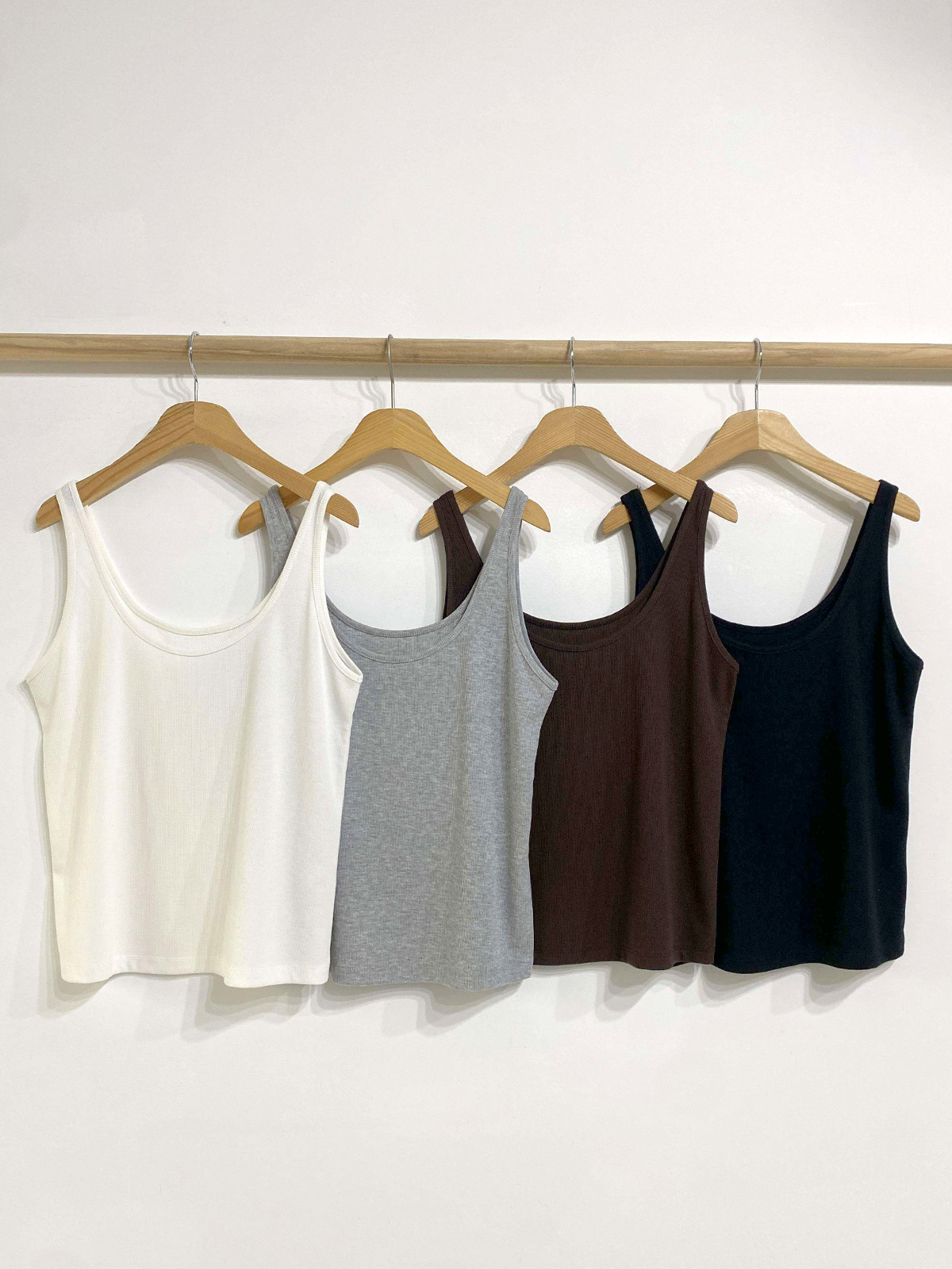 베이직한 핏으로 편안하게 착용 가능한 골지 나시