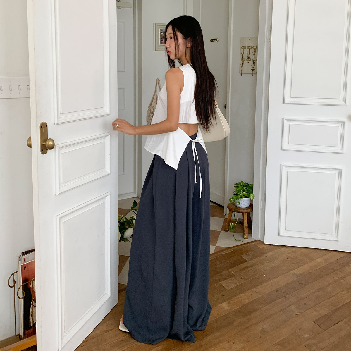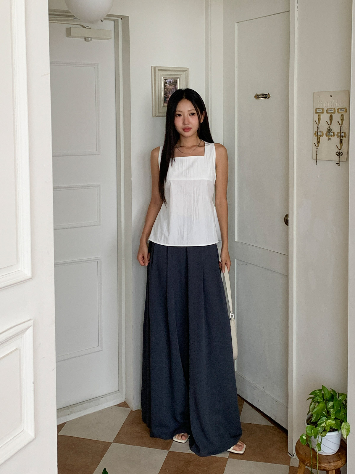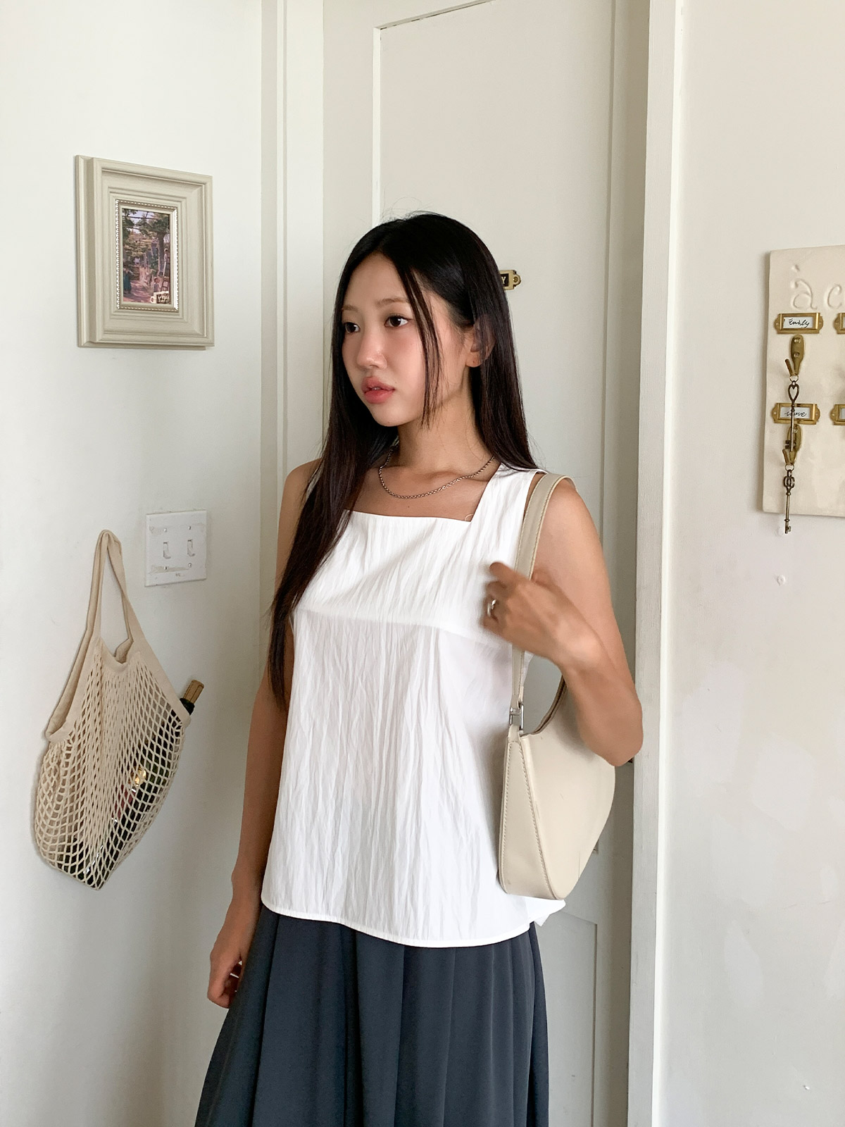 뒷트임과 스트랩이 포인트인 나시 블라우스