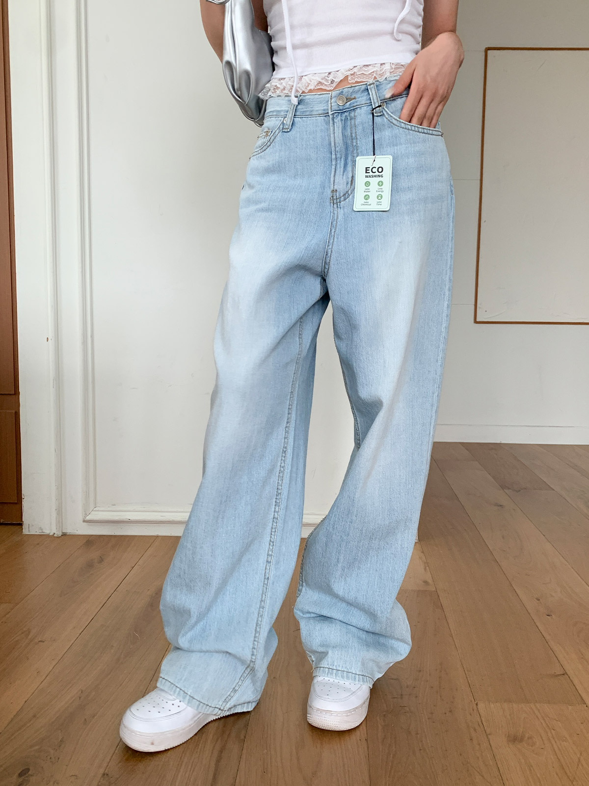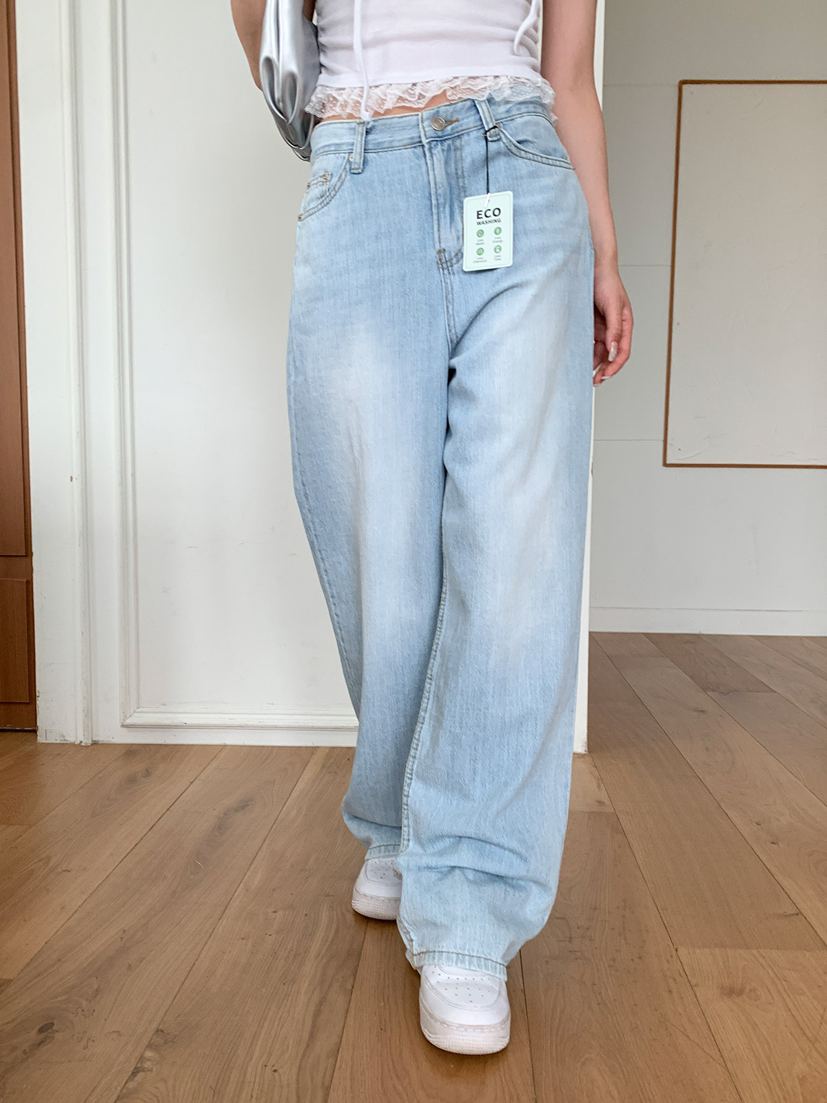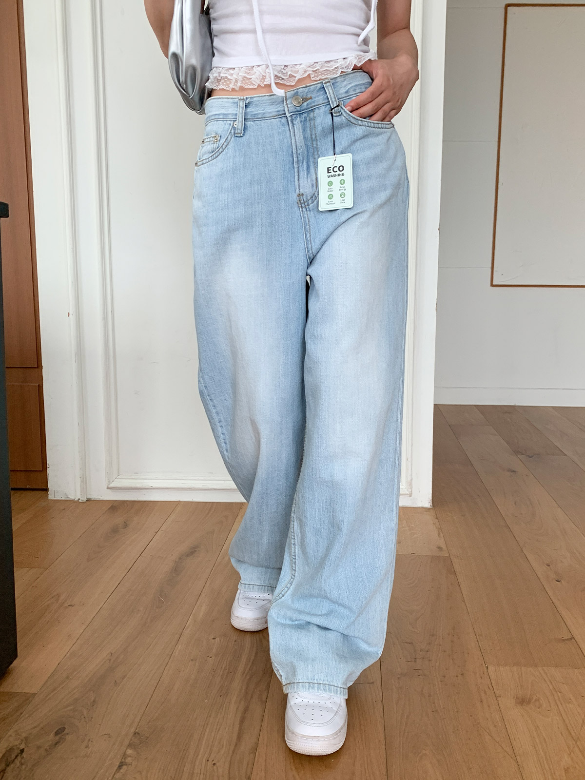 후들후들한 소재감으로 여름 시즌 입기 딱 좋은 와이드 연청 데님팬츠