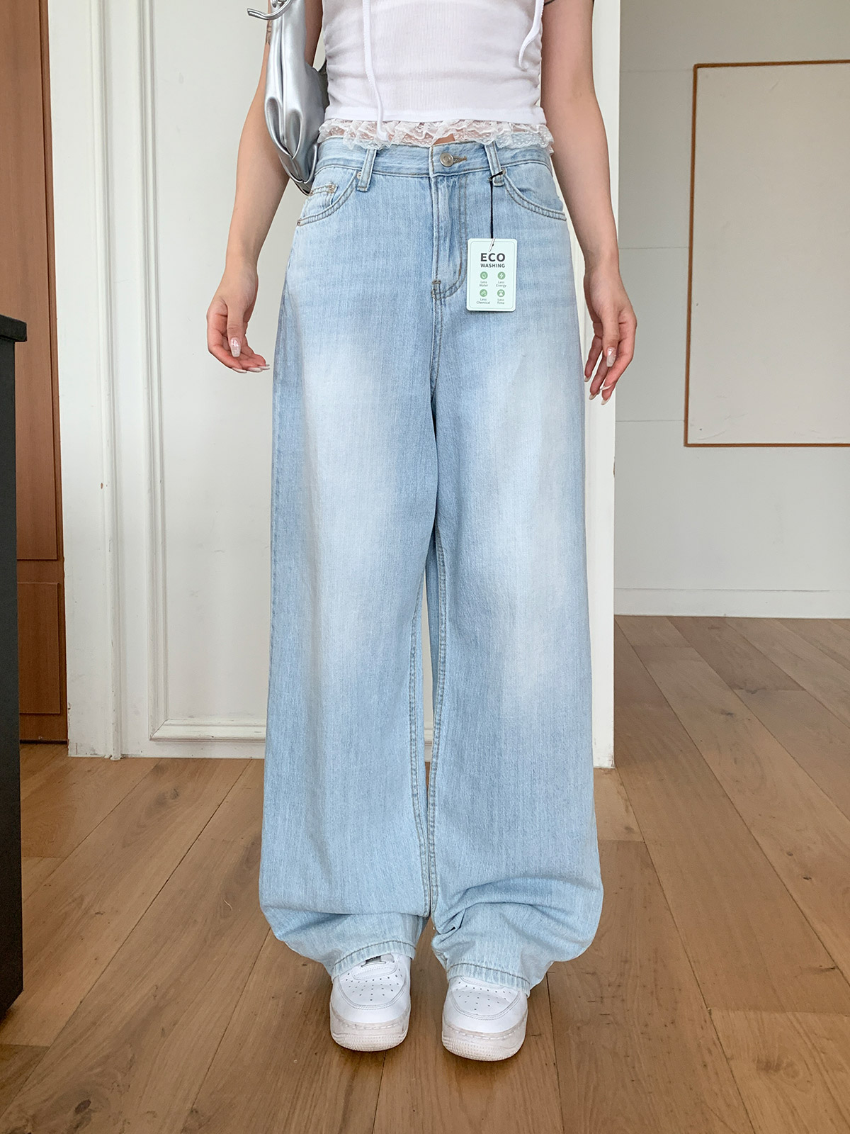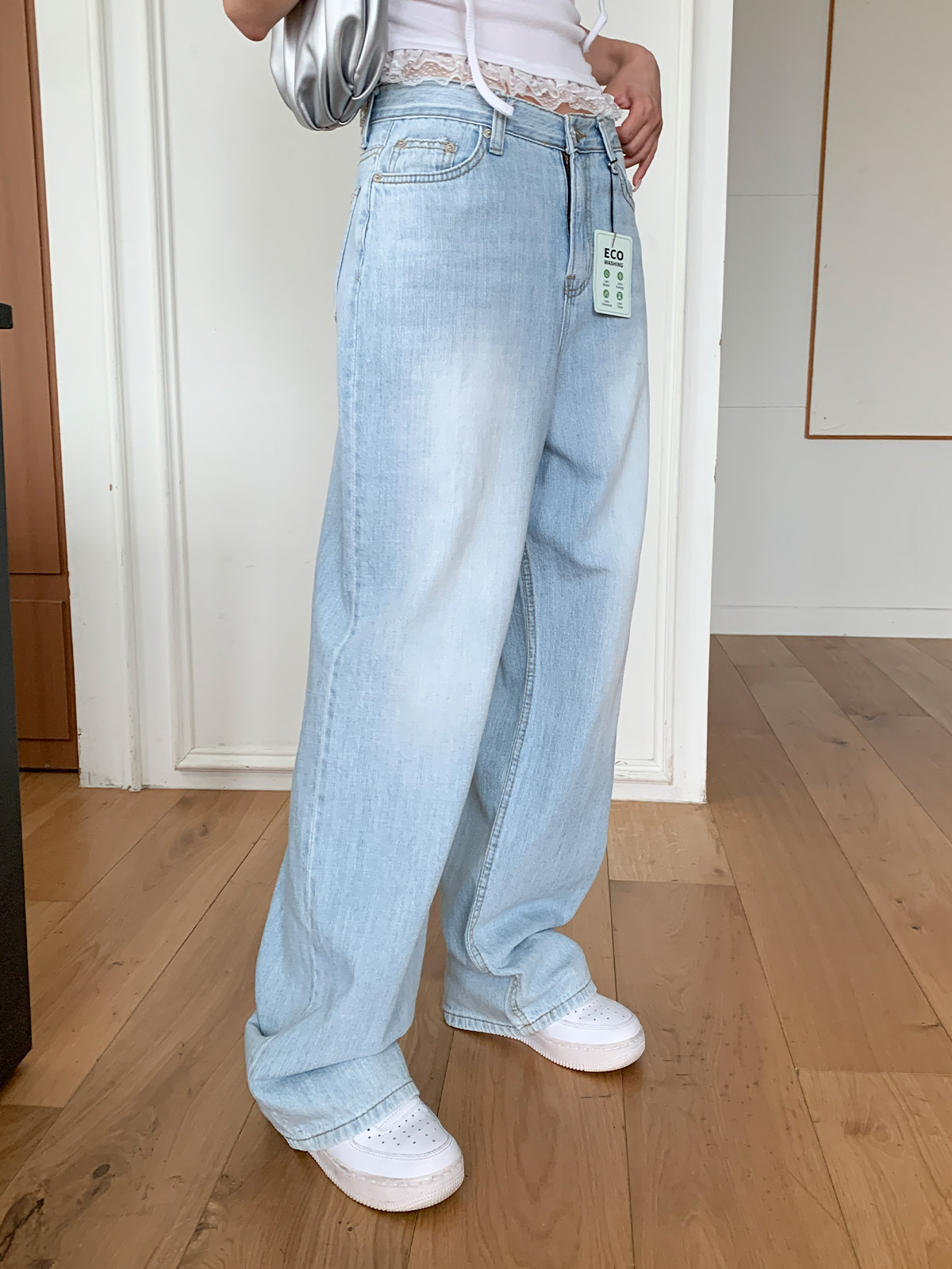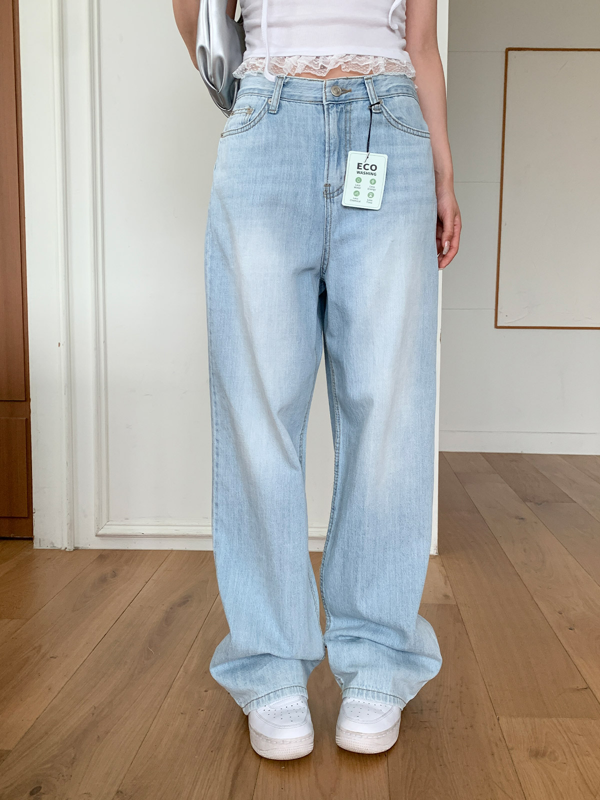 후들후들한 소재감으로 여름 시즌 입기 딱 좋은 와이드 연청 데님팬츠