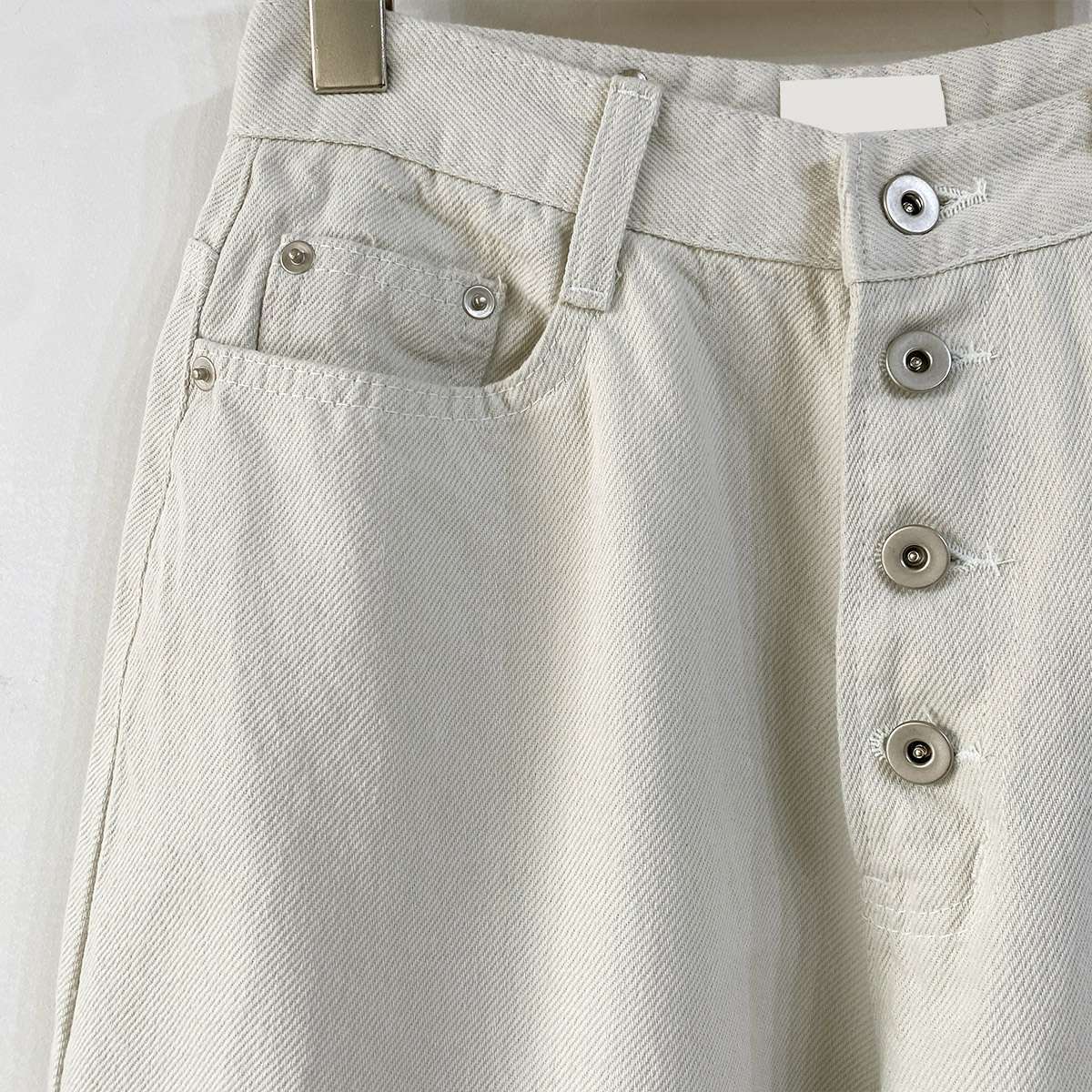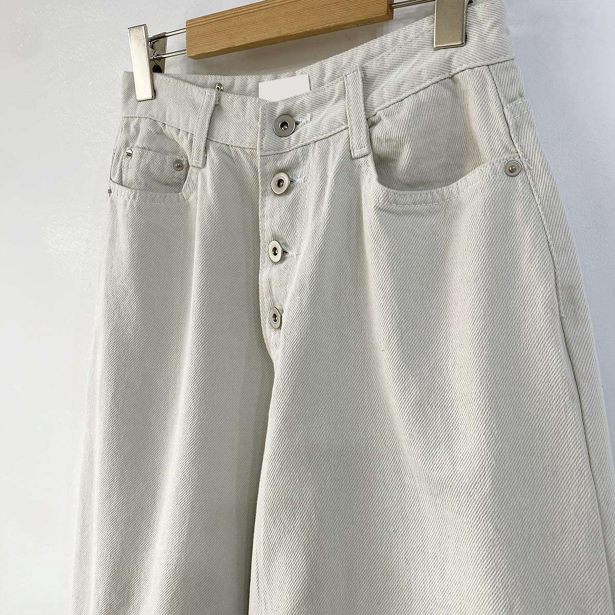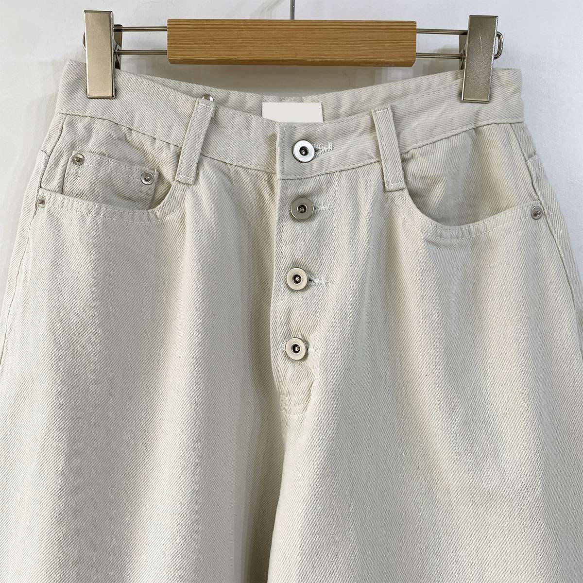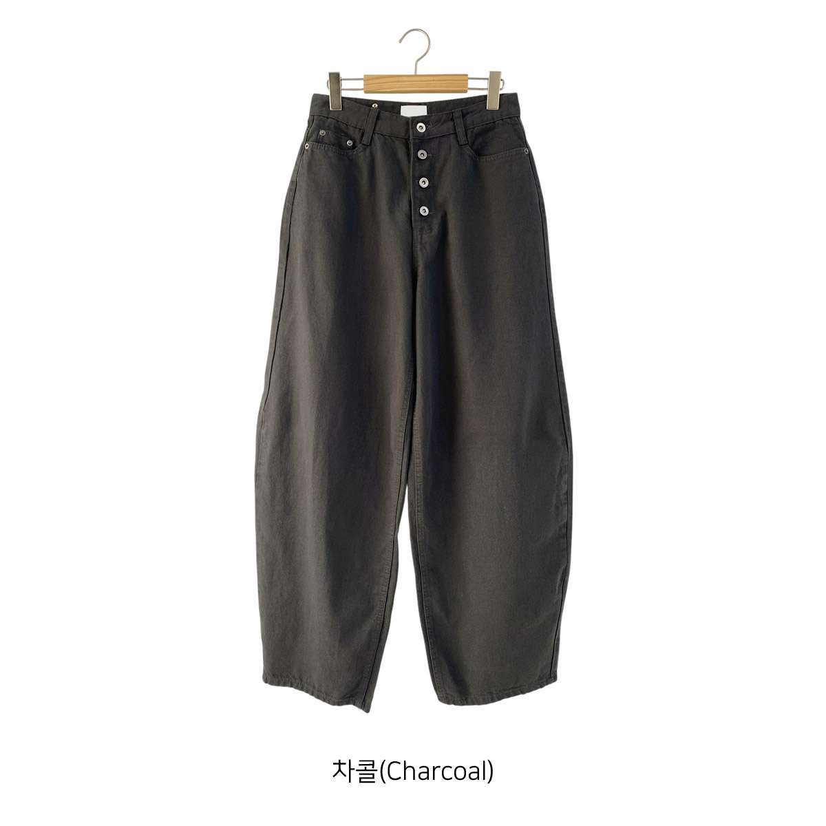 와이드 벌룬핏 실루엣과 유니크한 포 버튼 디테일의 코튼 팬츠