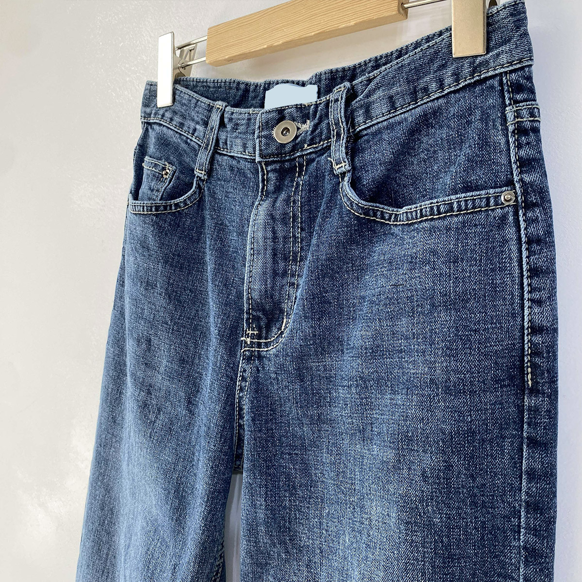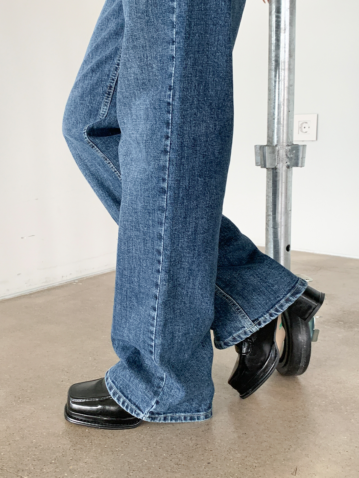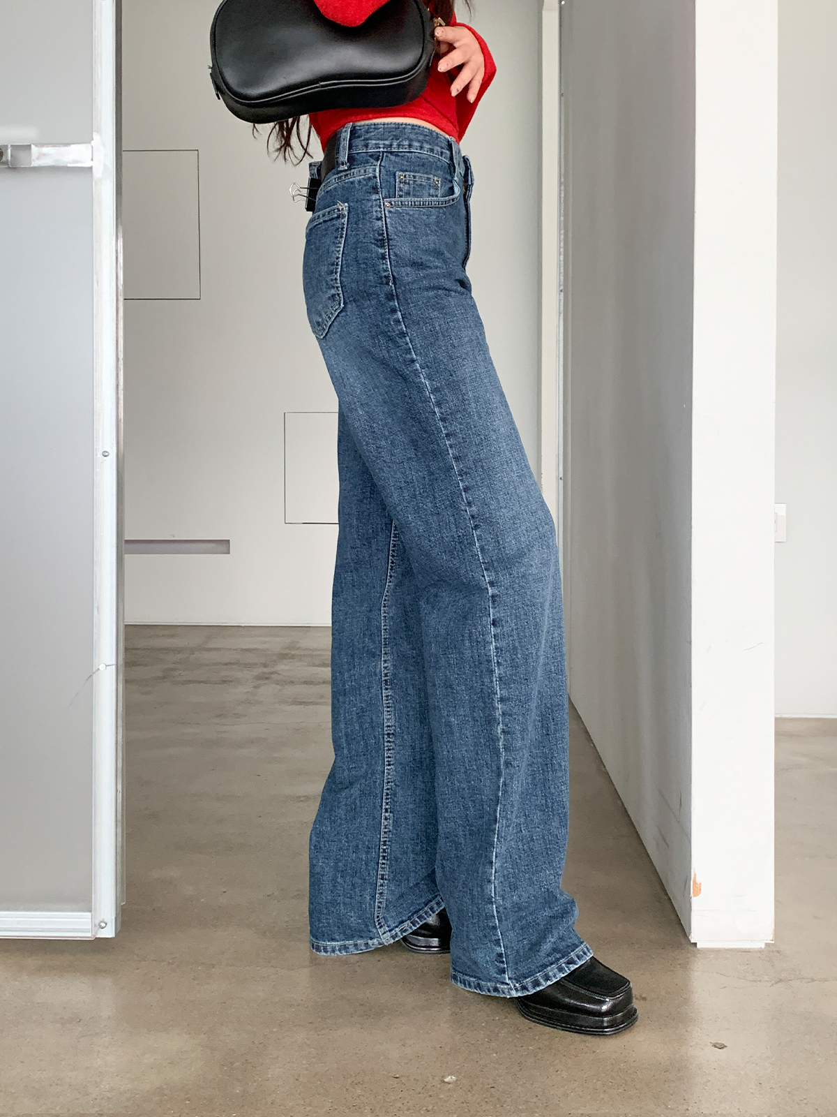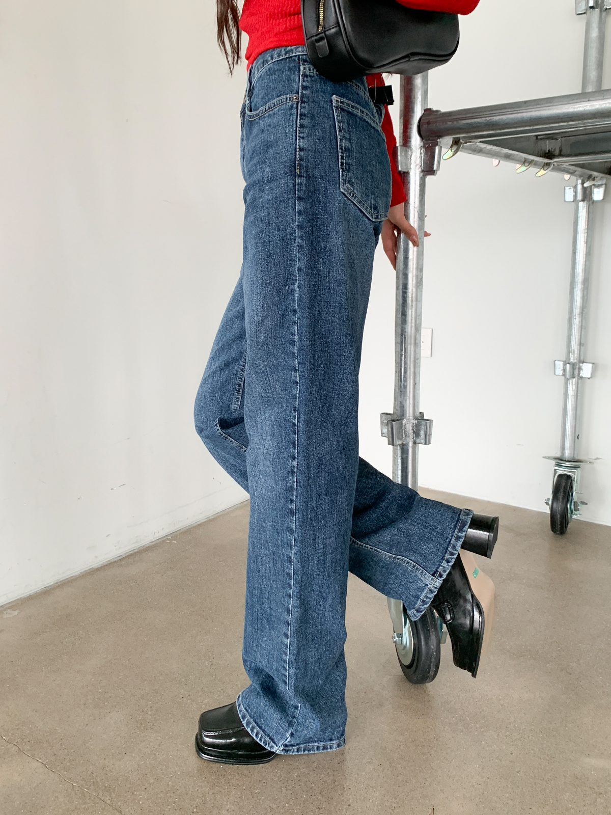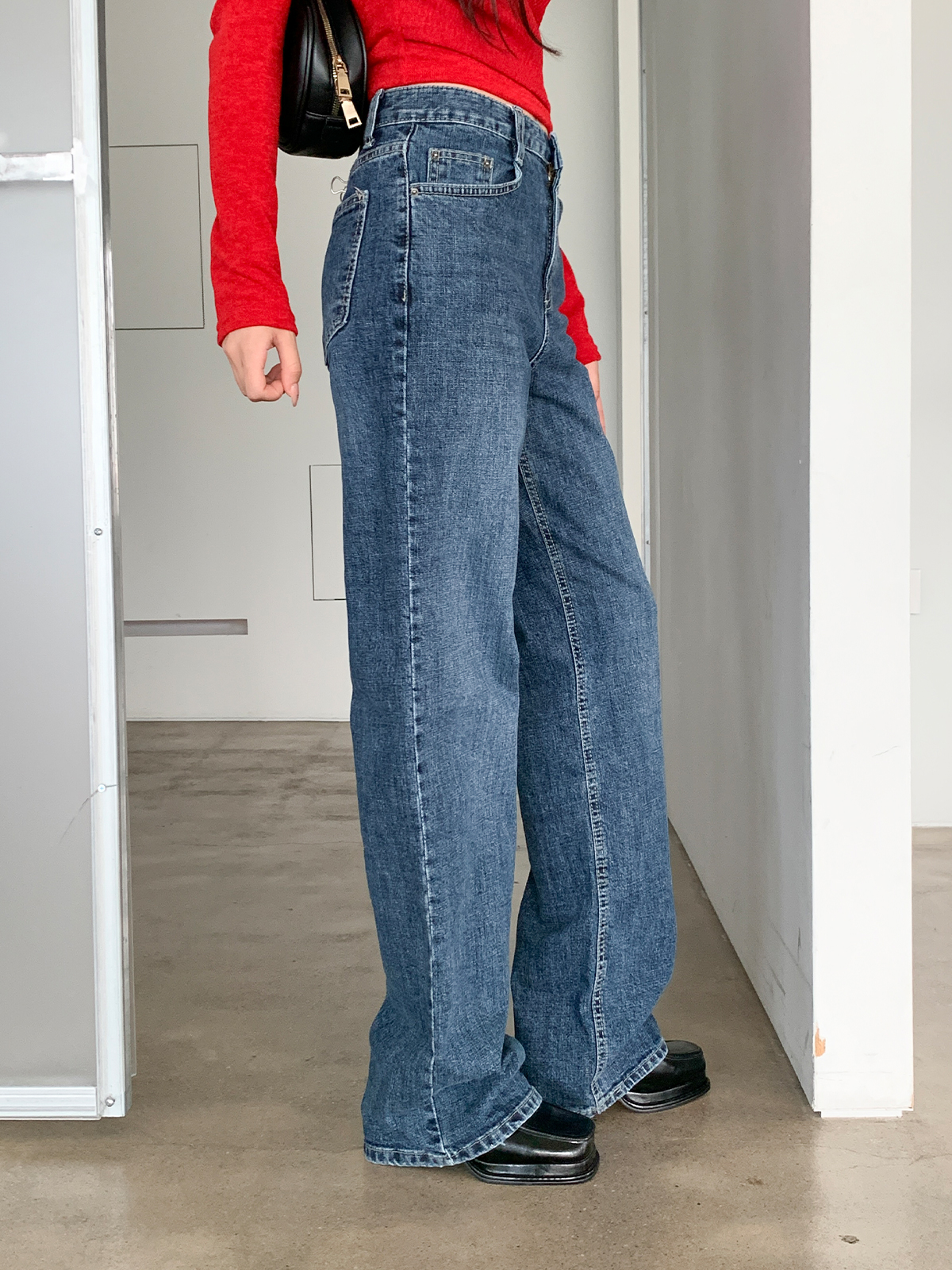와이드 핏에 빈티지한 중청 컬러가 포인트인 데님 팬츠