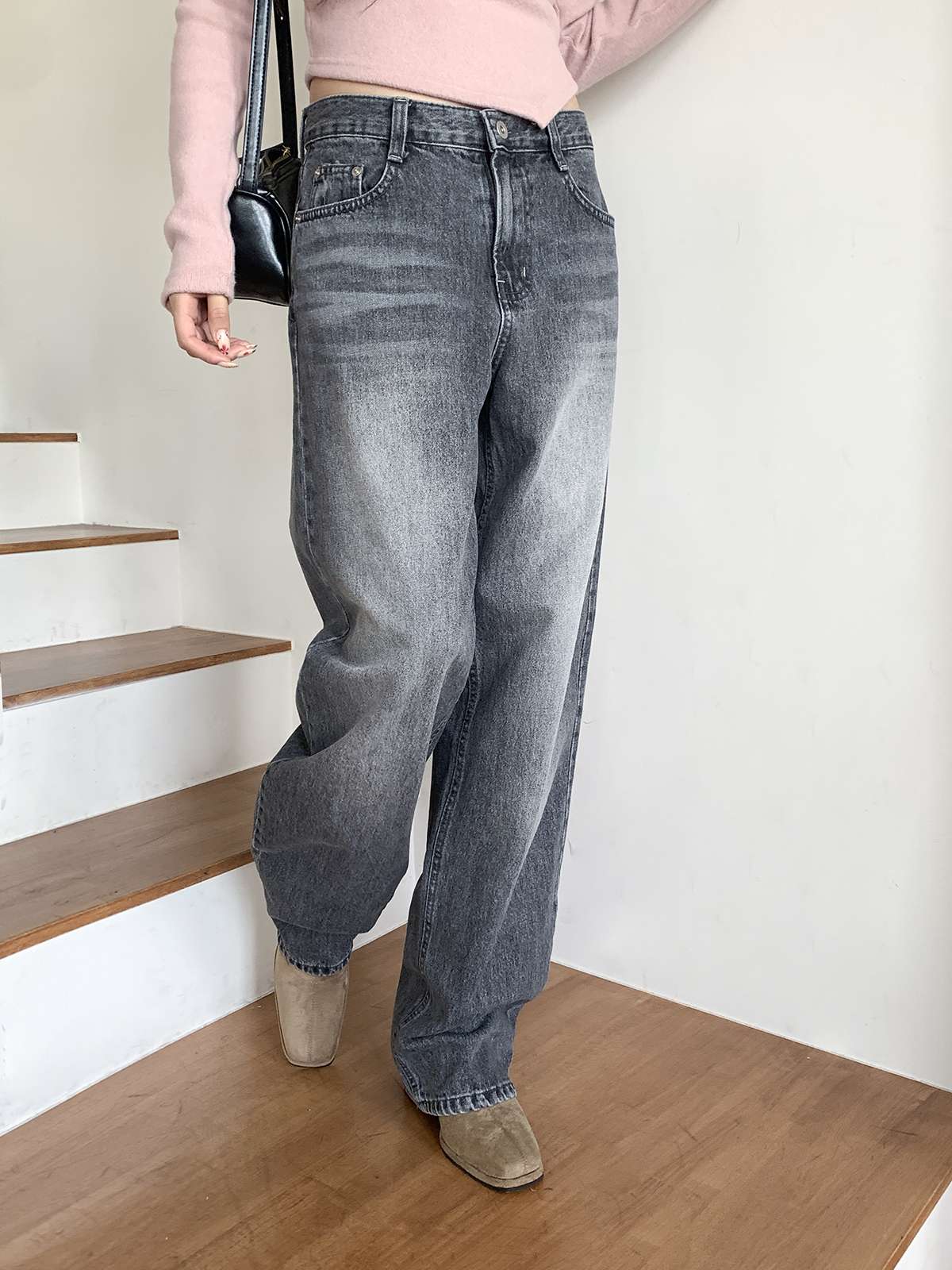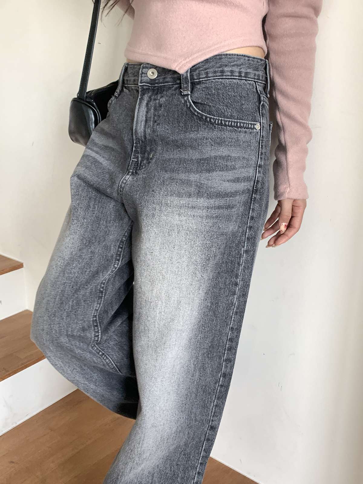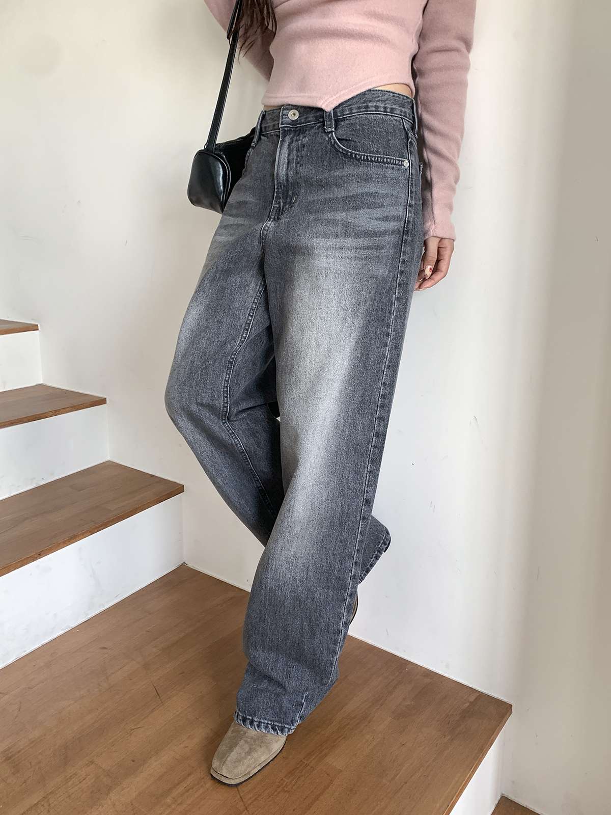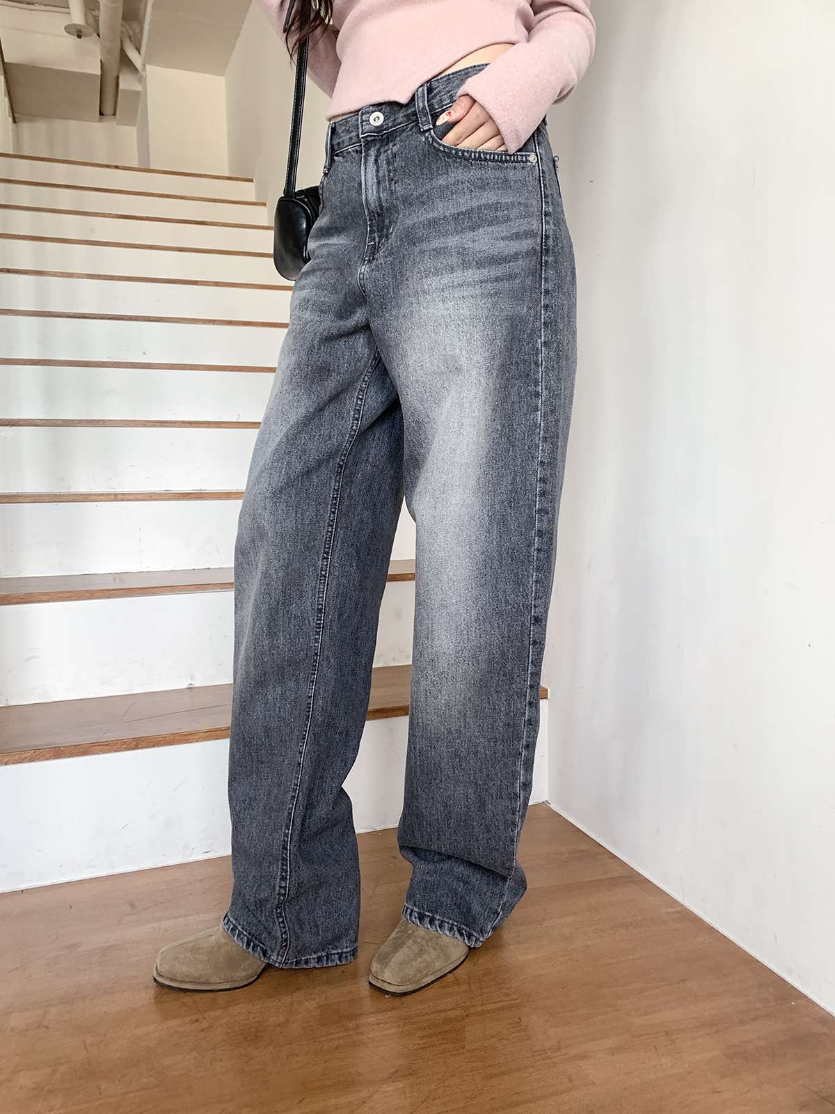 사계절 착용 가능한 은은한 워싱이 포인트인 와이드 데님 팬츠
